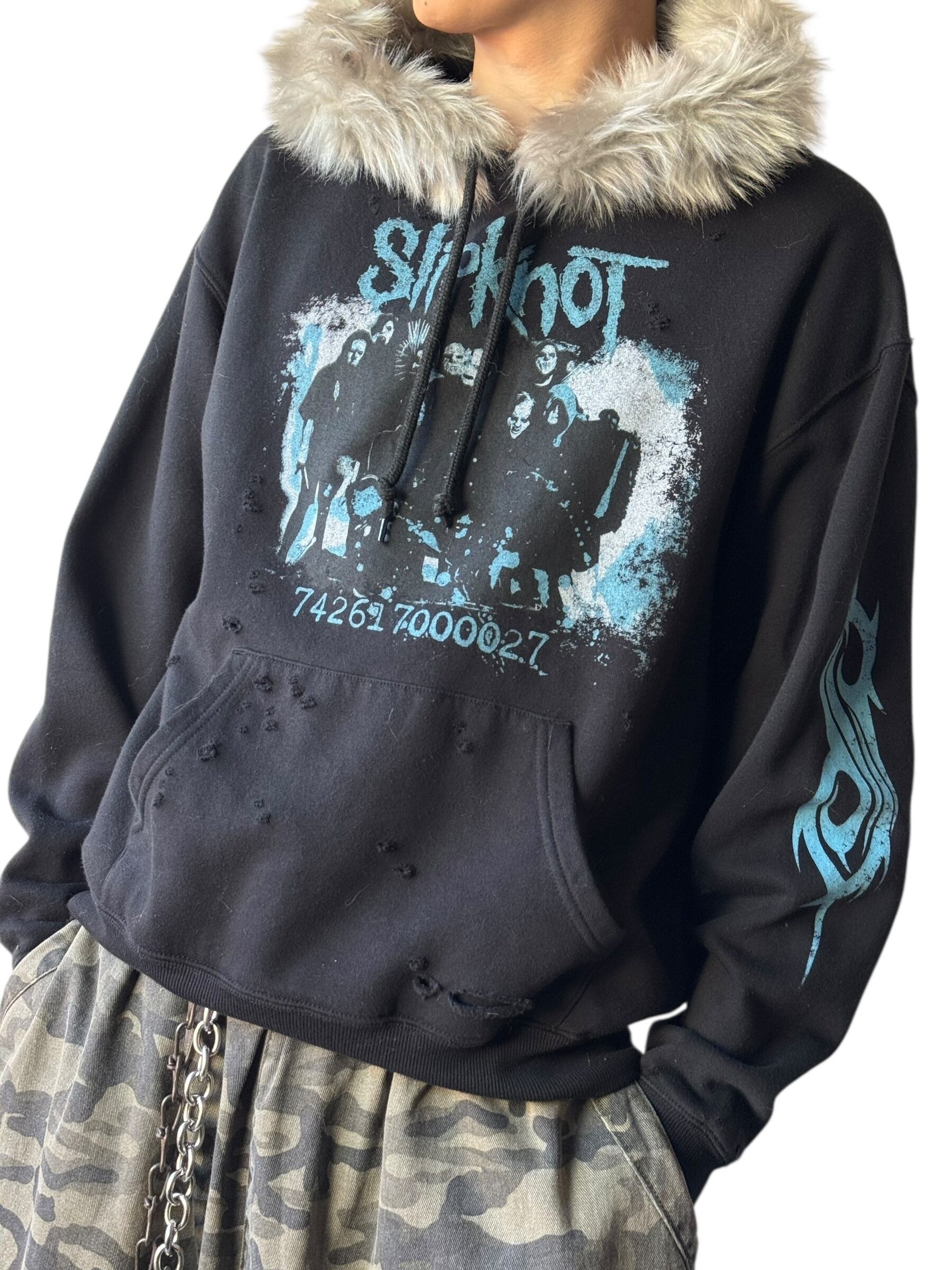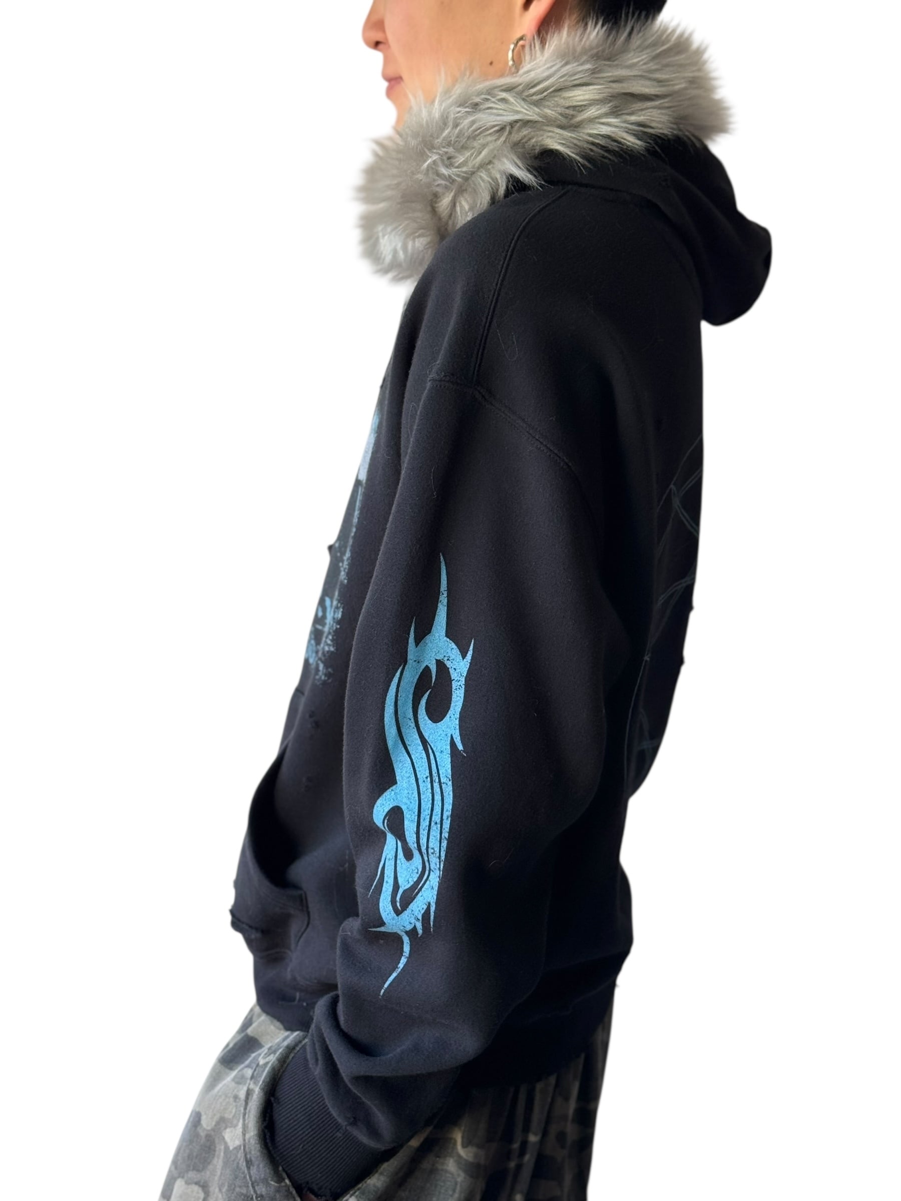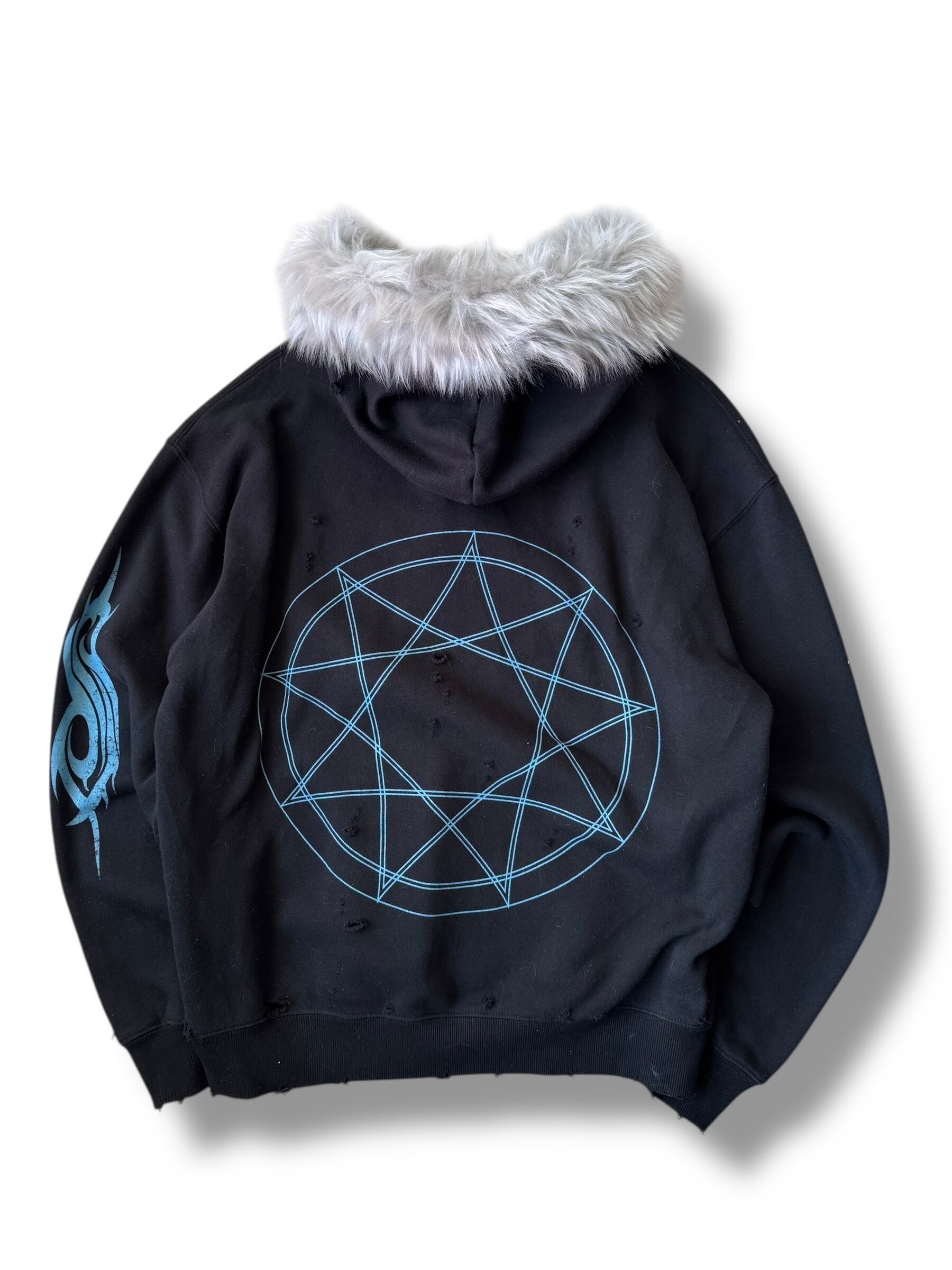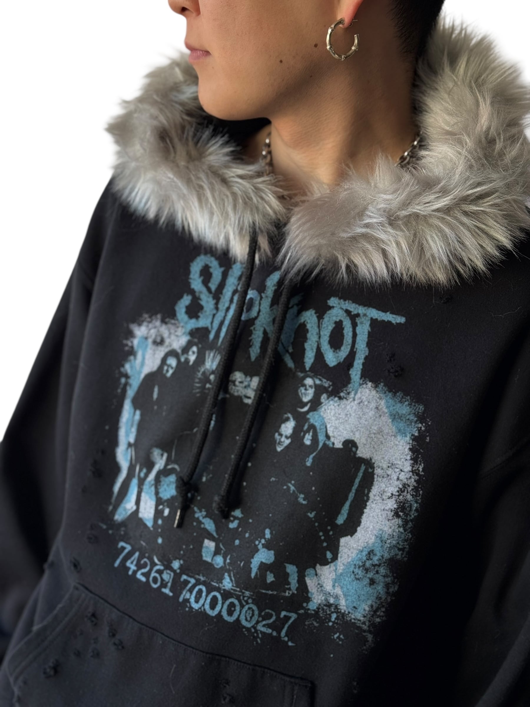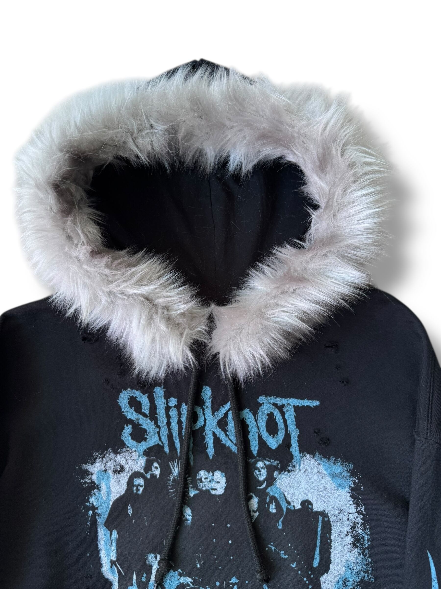 ♾SlipKnoT♾ design crushed fur pull over hoodie sizeM