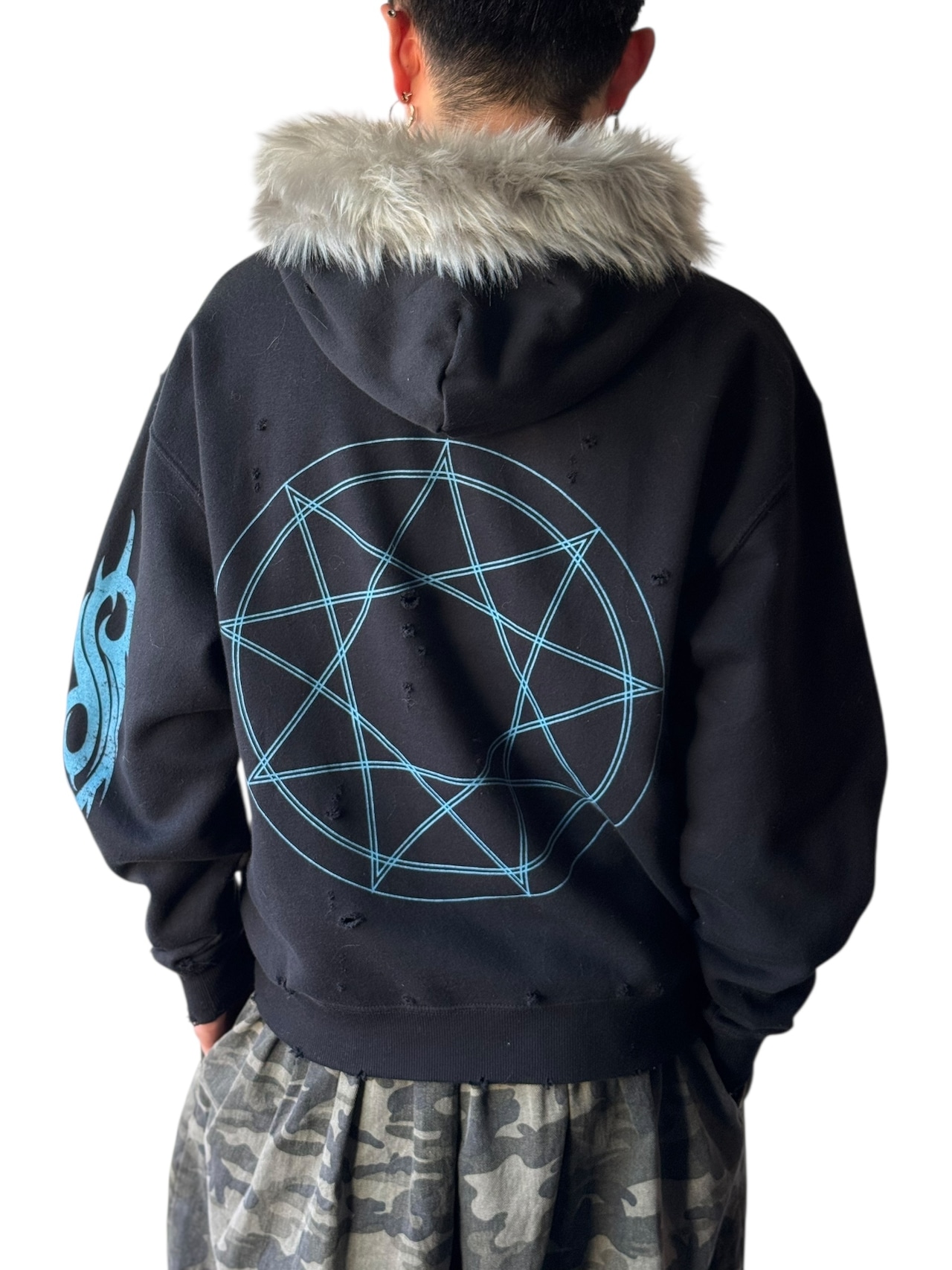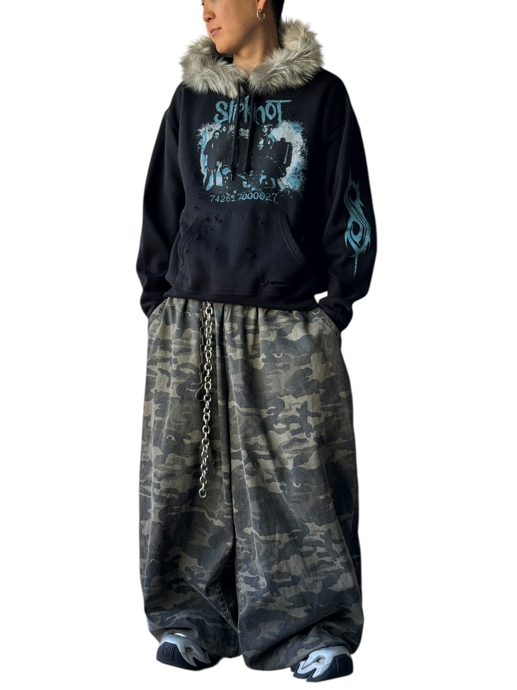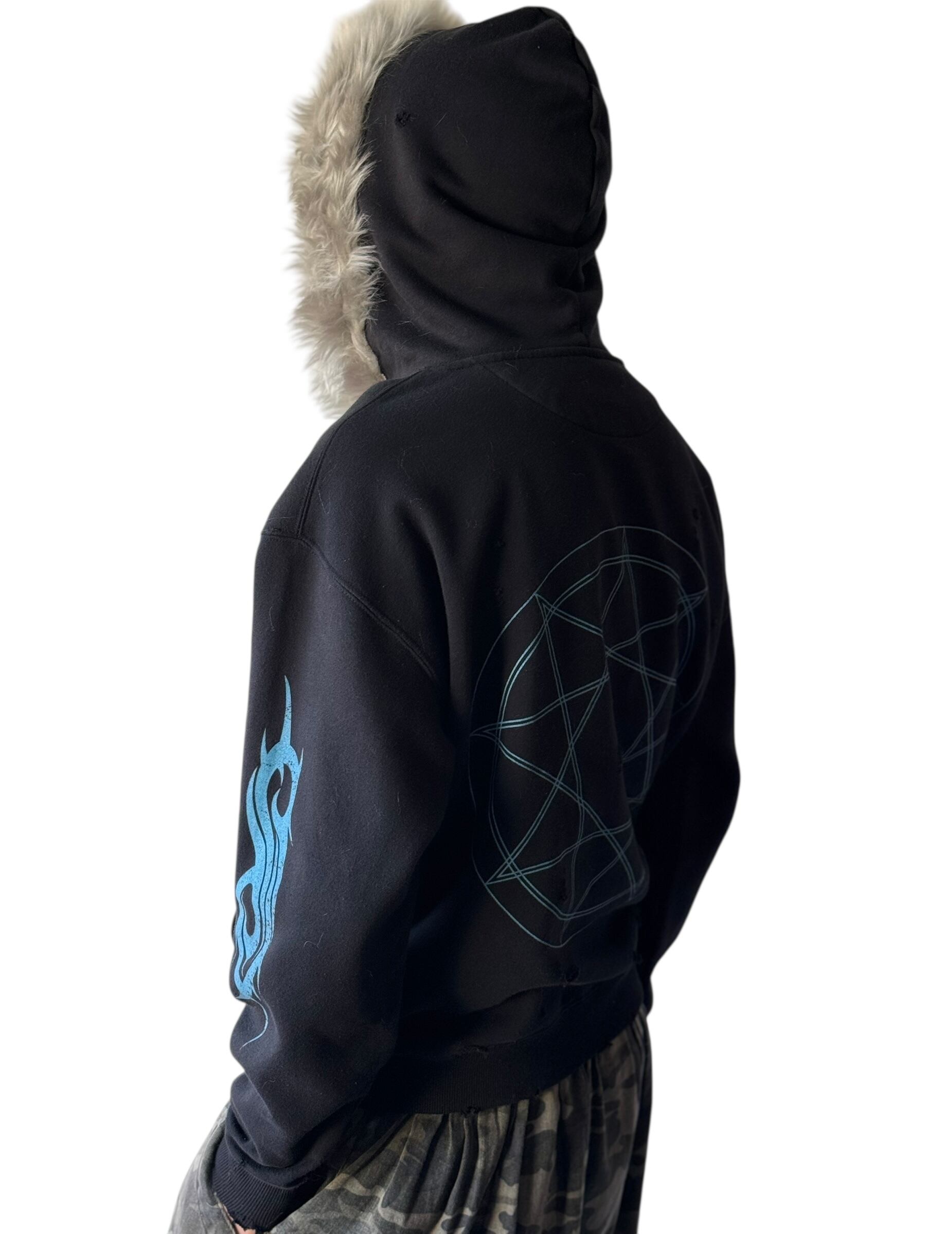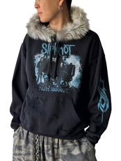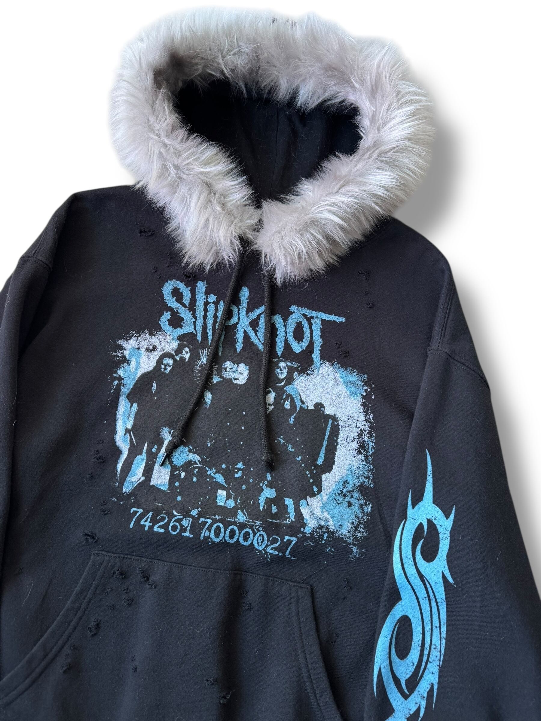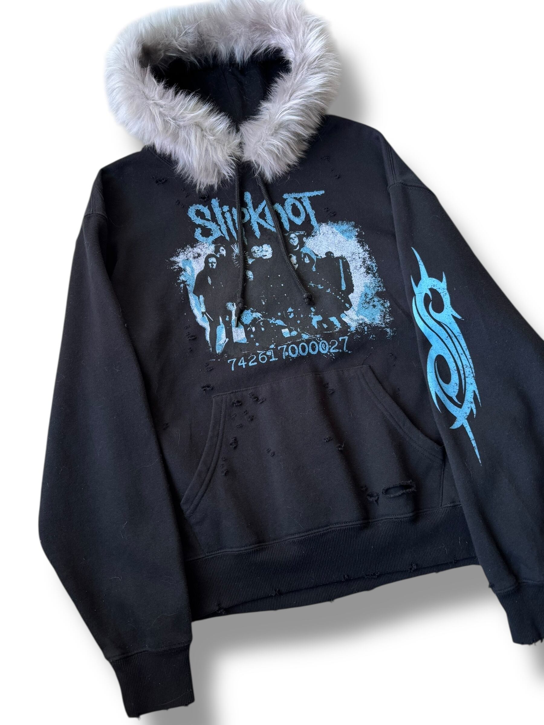 ♾SlipKnoT♾ design crushed fur pull over hoodie sizeM