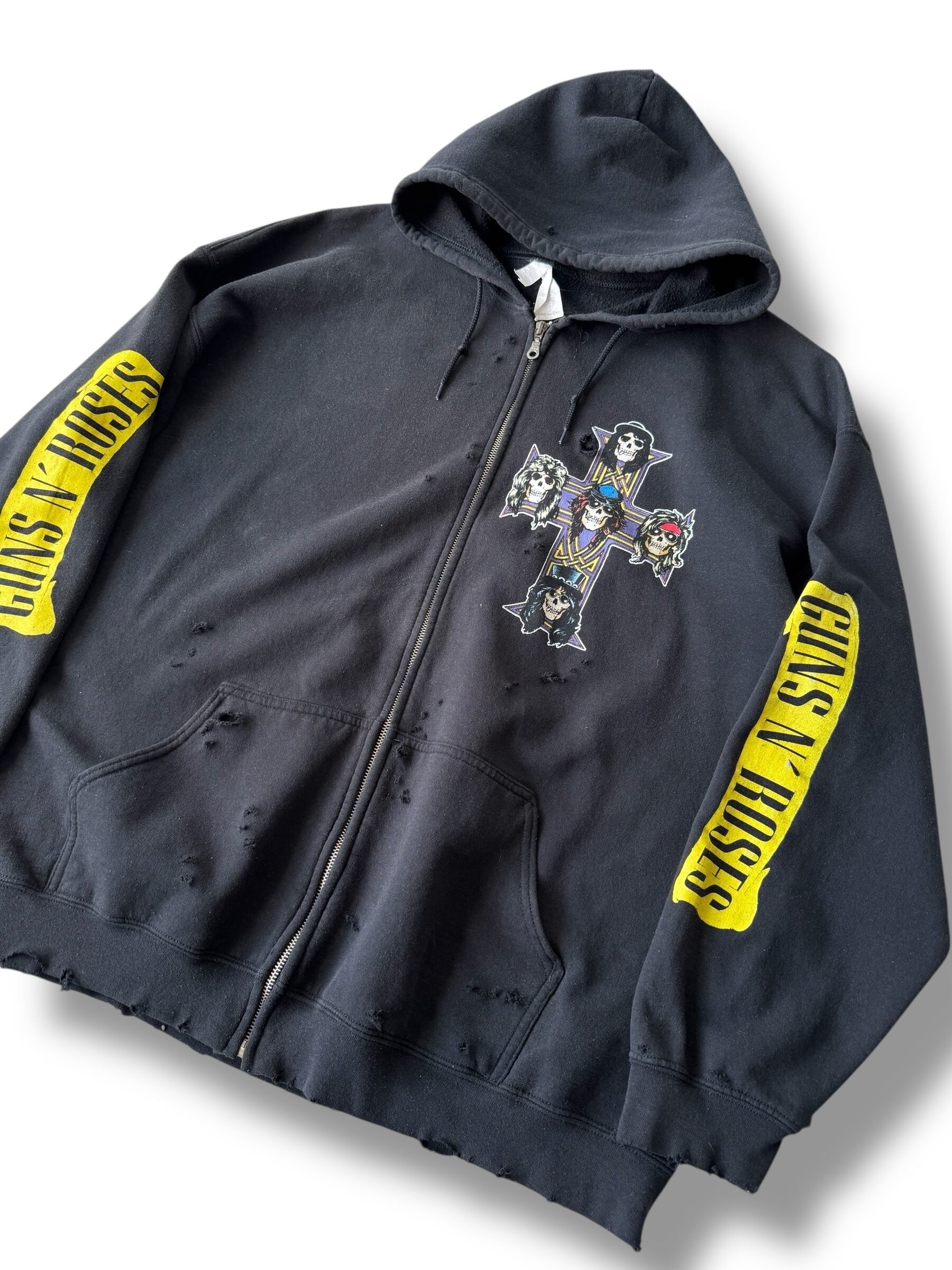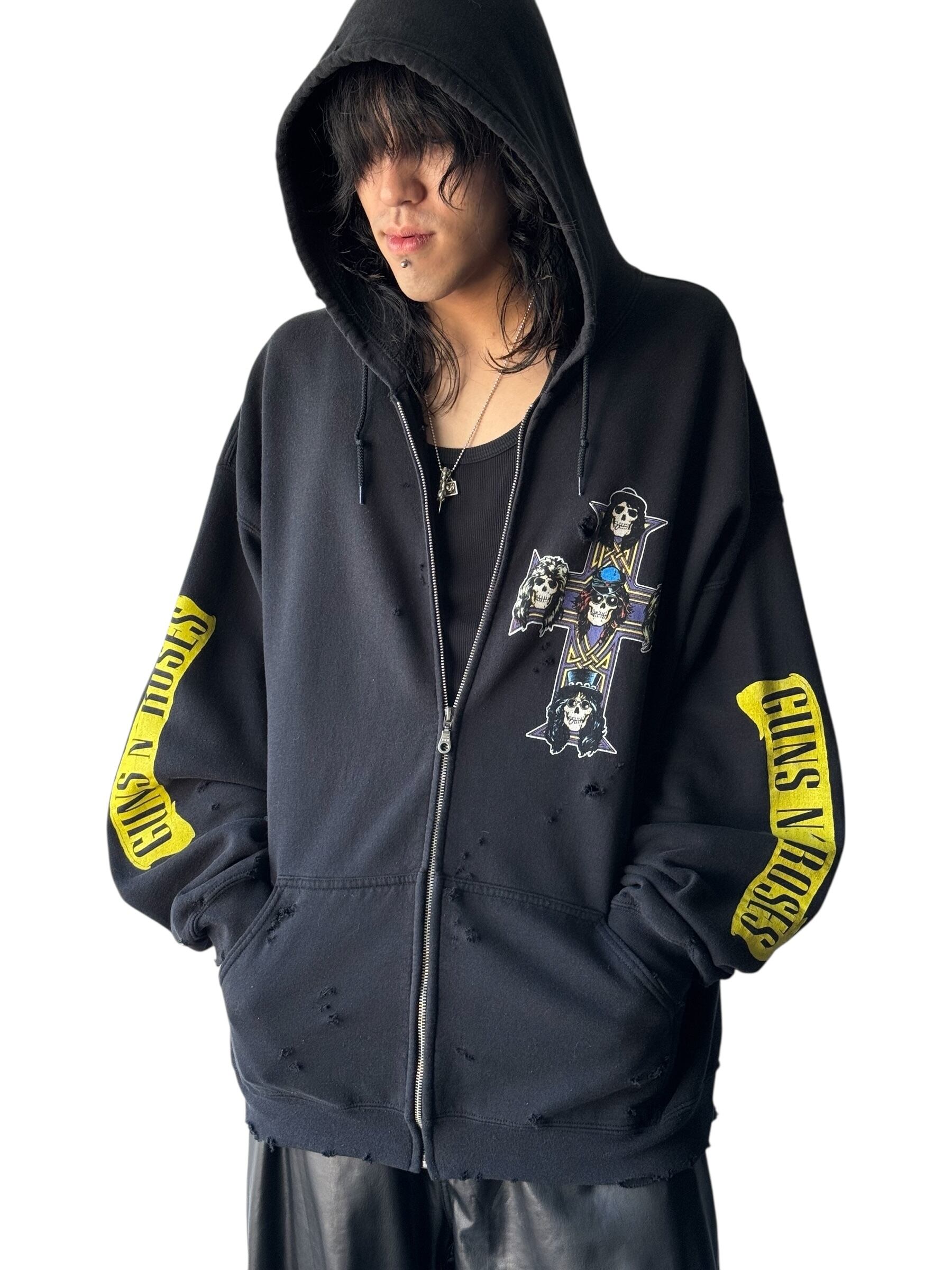 ♾GUNS N' ROSES♾ design graphics crushed zip up hoodie size 2XL