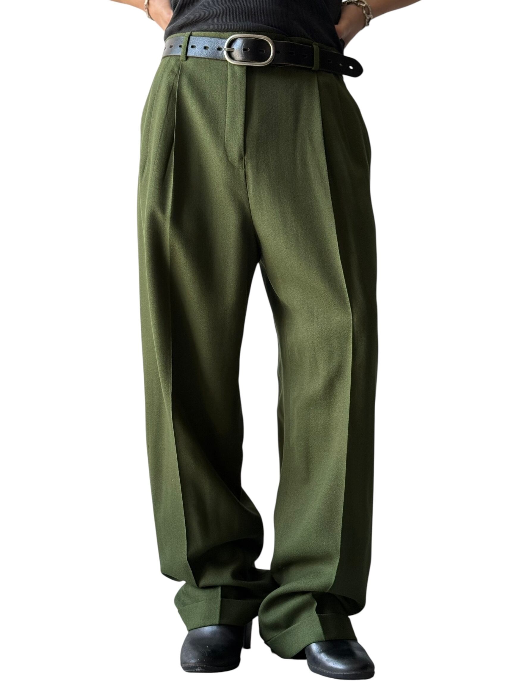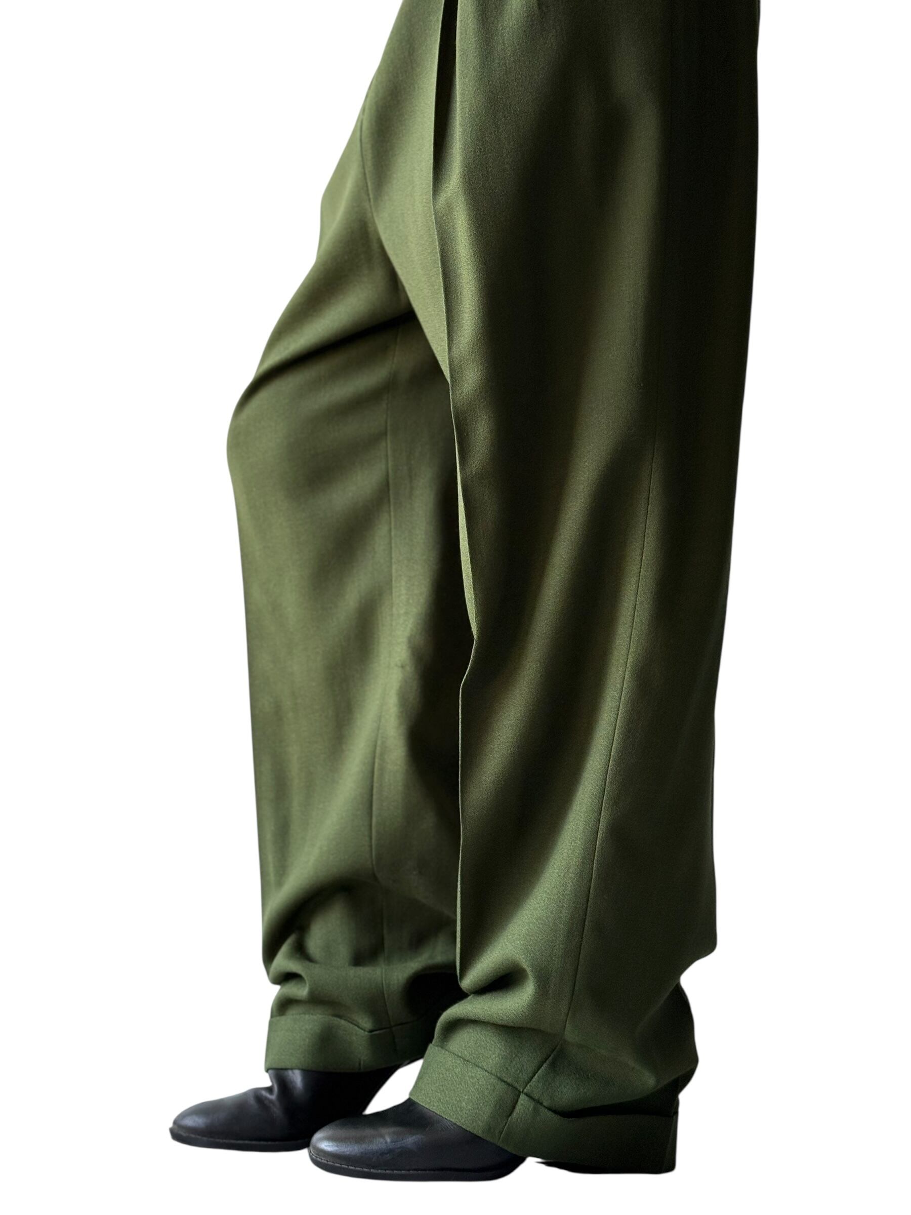NEW WOOL 使用のテロテロ揺れるワイドスラックス❗️深みのあるモスグリーンカラー‼️マジで良い色☺️❣️