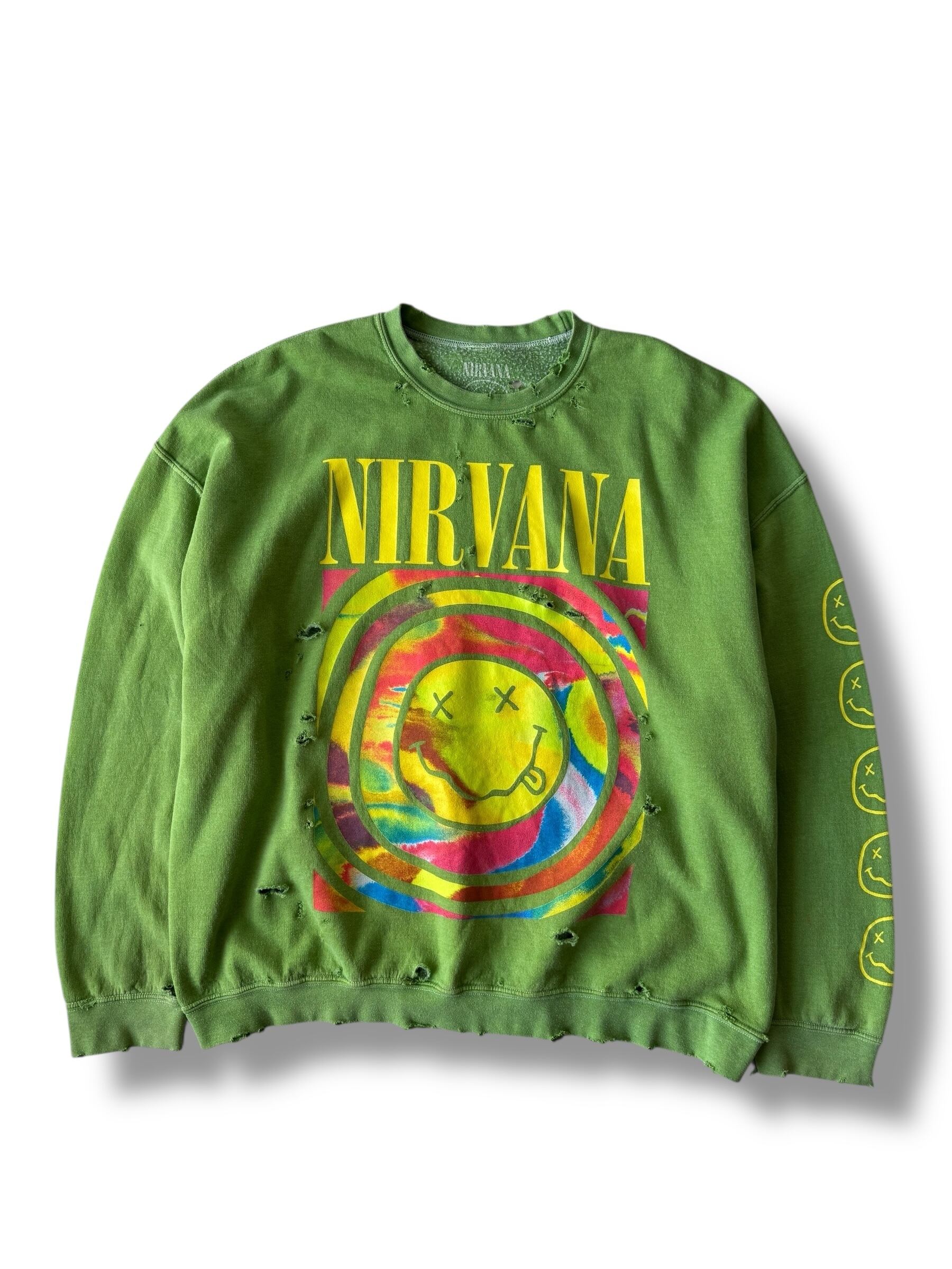 ️️フロントにぐったりとしたスマイリーが描かれたNIRVANAといえばのモチーフが映えるデサインクラッシュスウェット‼️