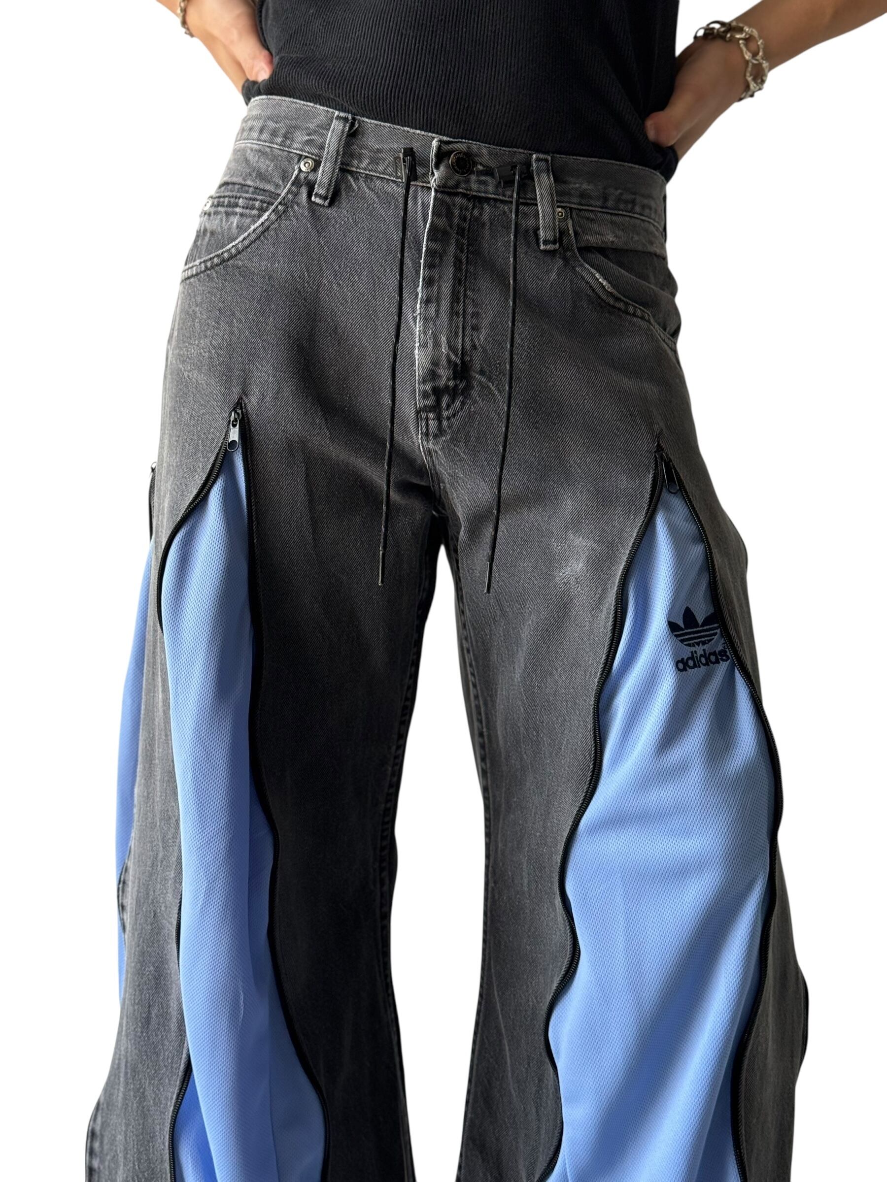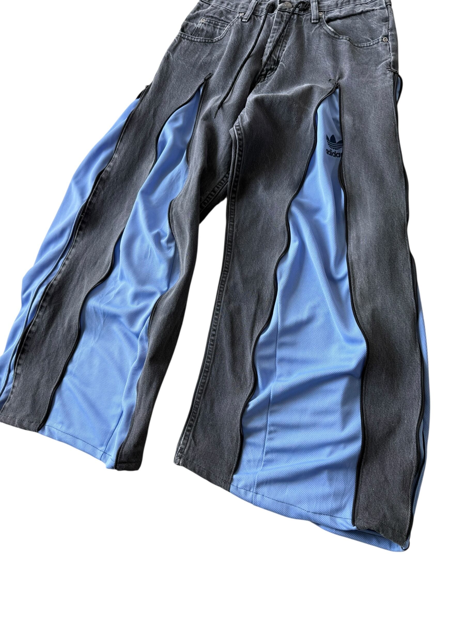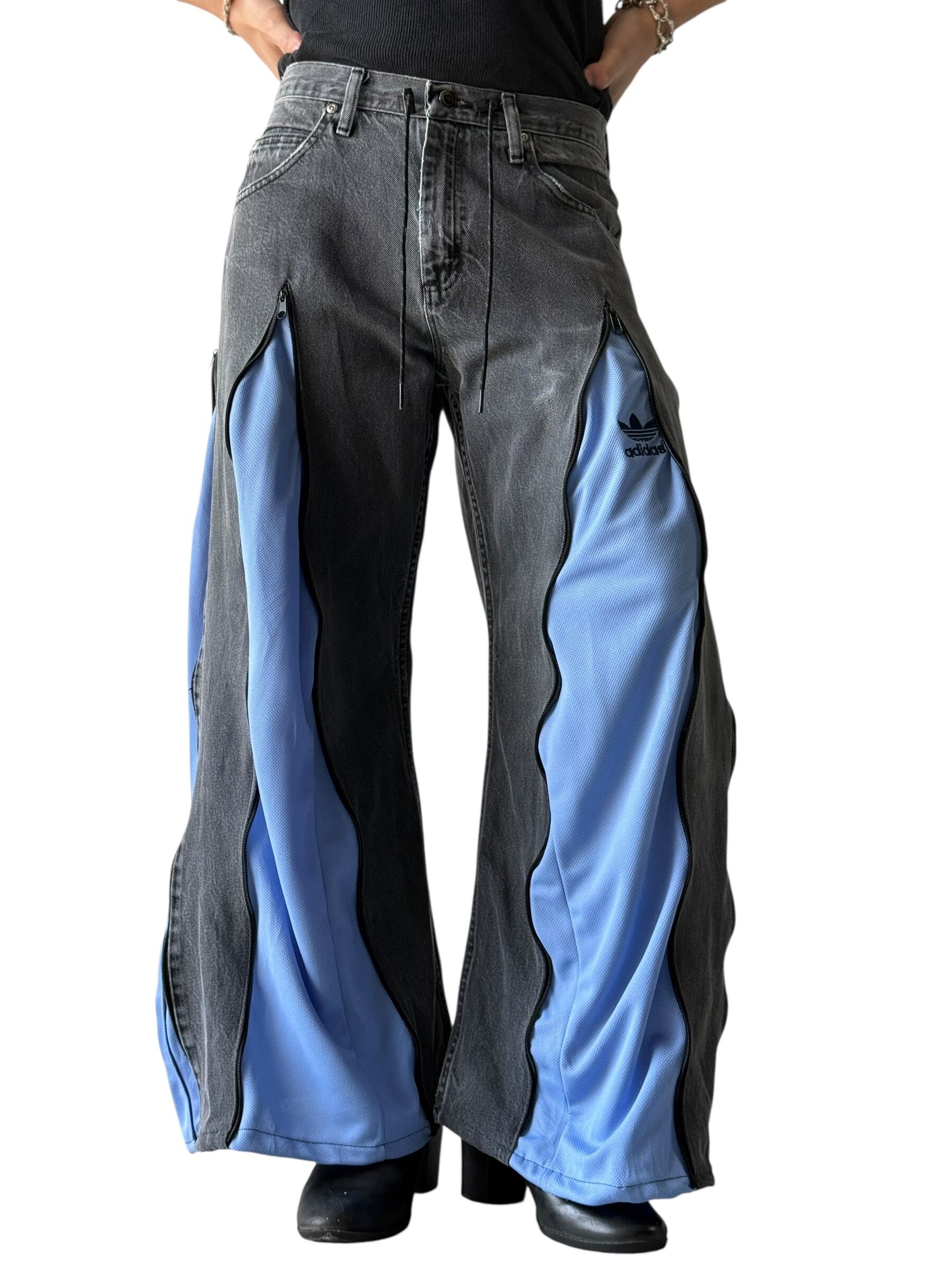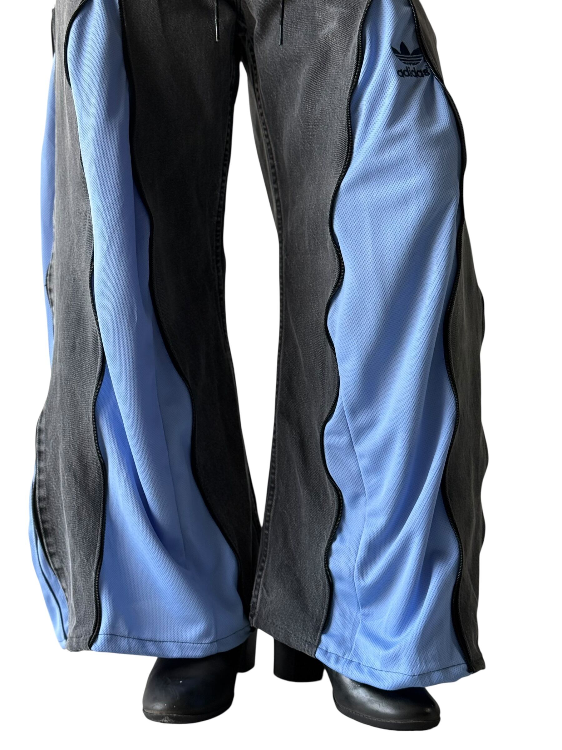 トラックパンツをドッキングさせたような極上ワイドフレアシルエットに変貌を遂げたとてつもないカスタムデザインがめちゃくちゃ映える1本‼️