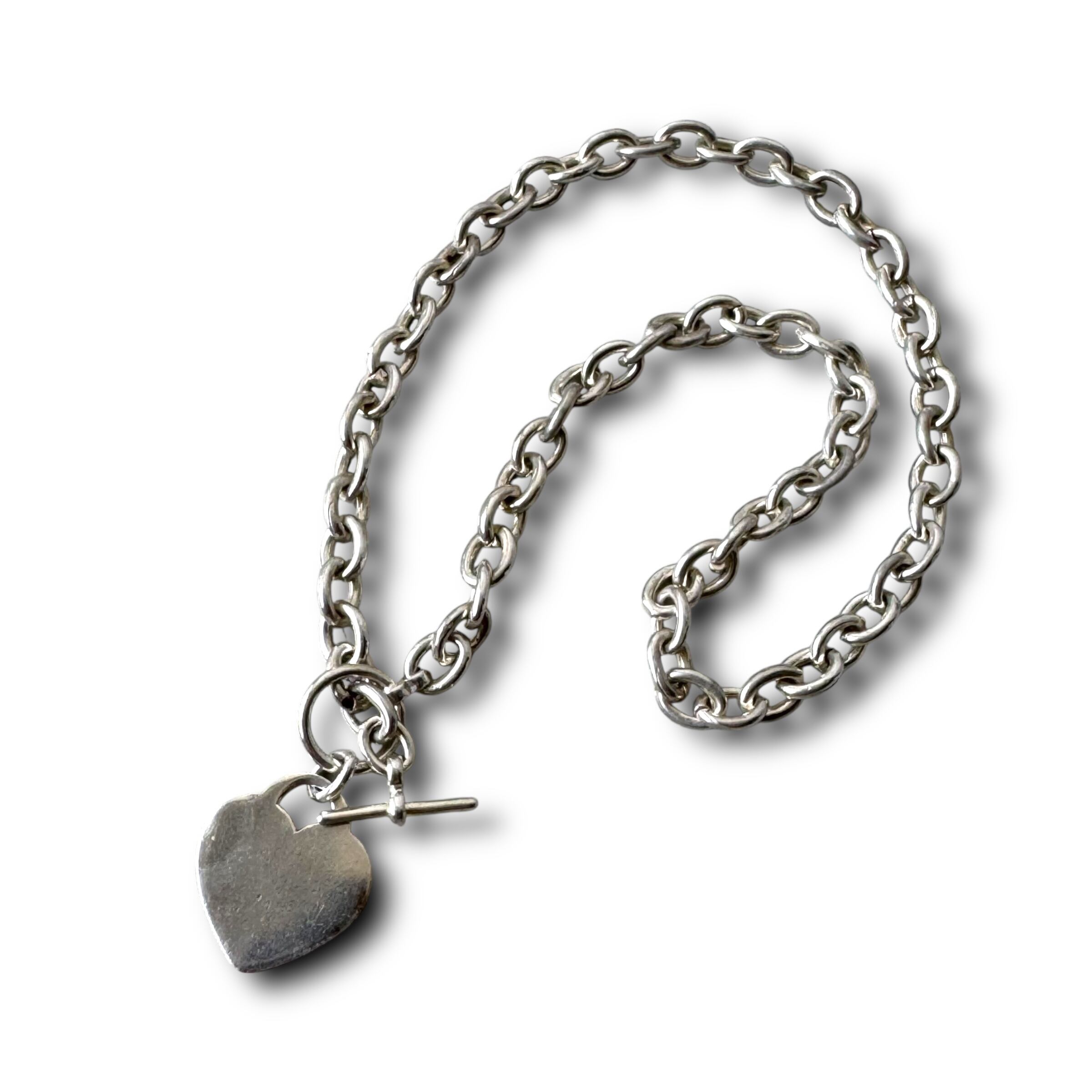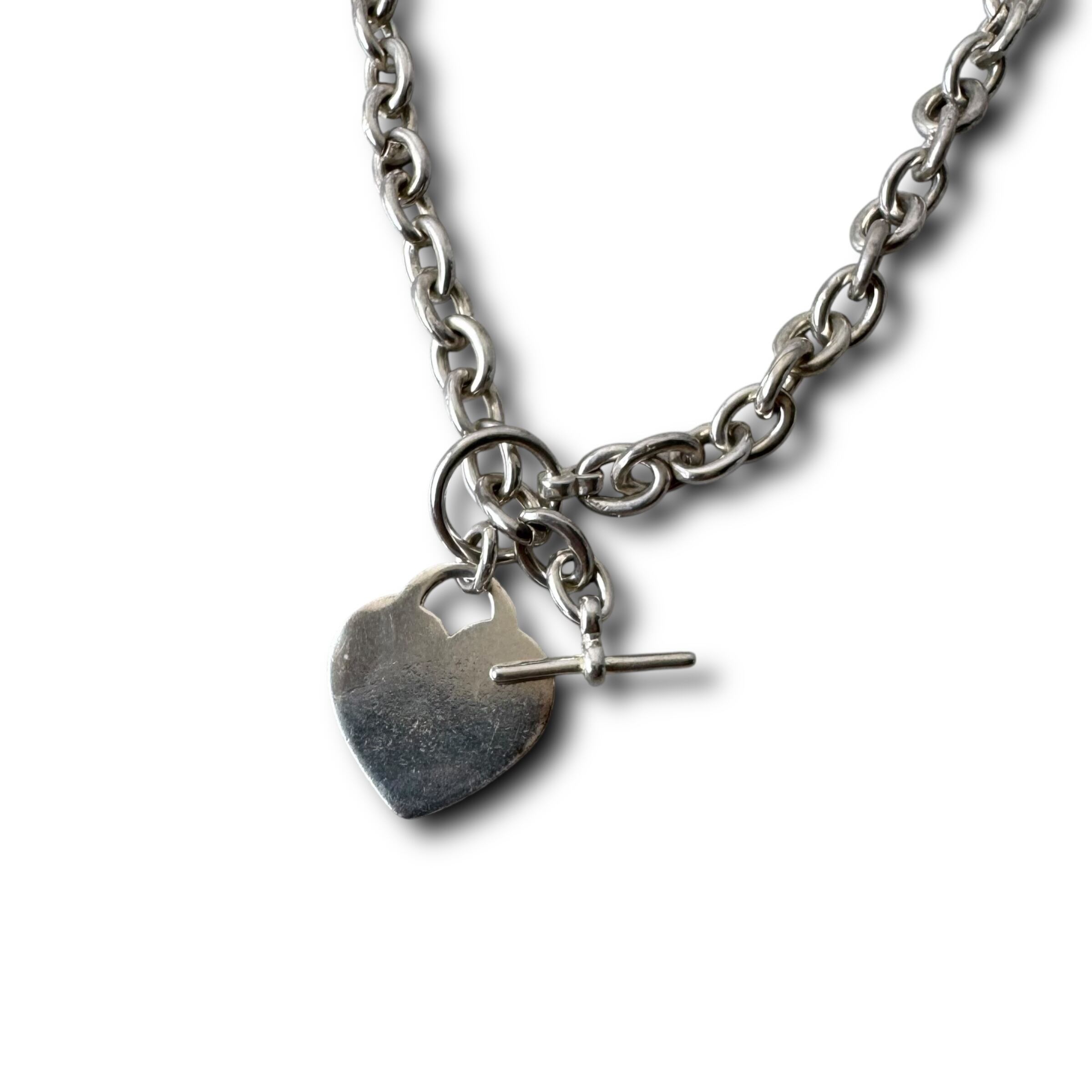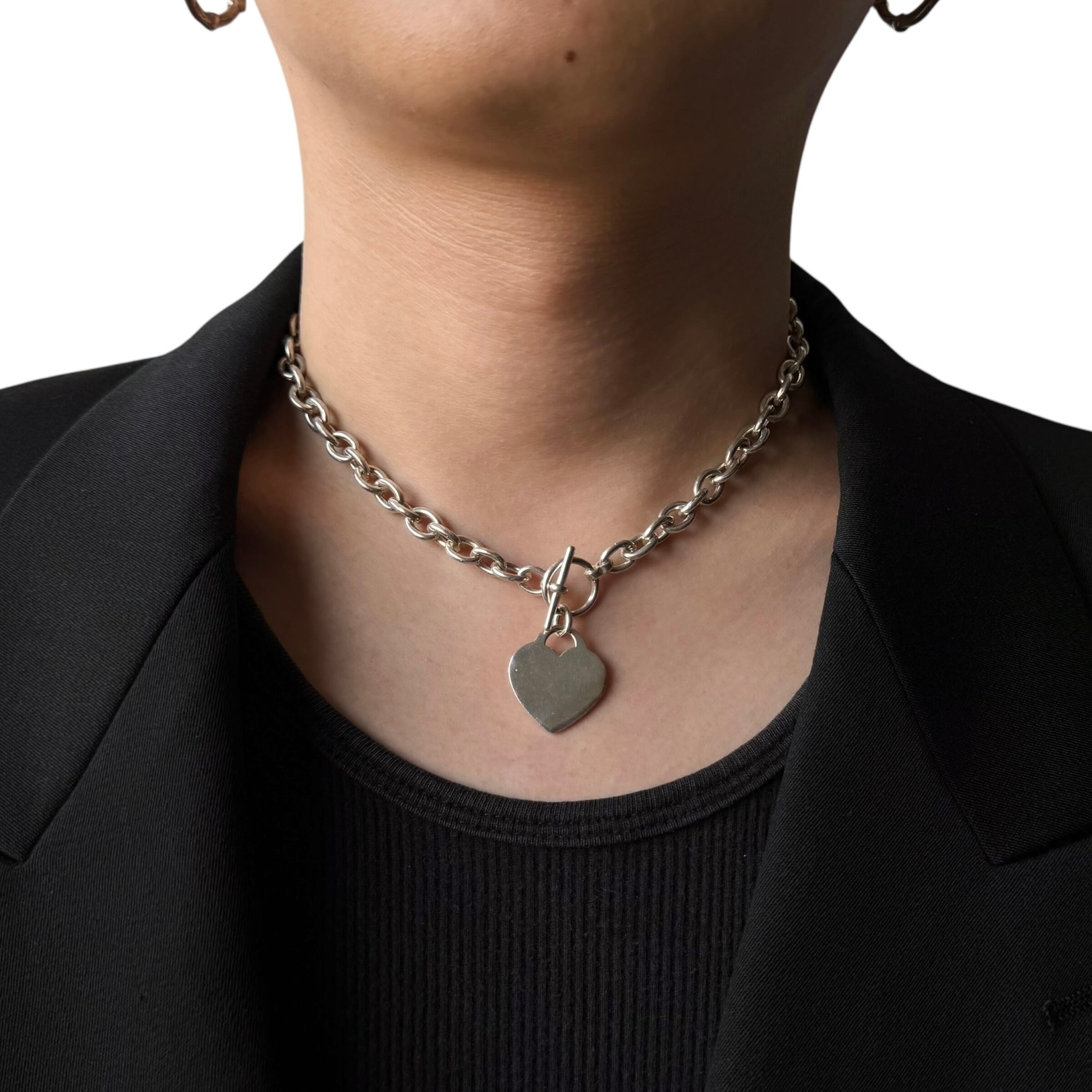 ♾️vintage silver jewelry♾️ "Return to motif" Heart Tag T-bar necklace-sv925-