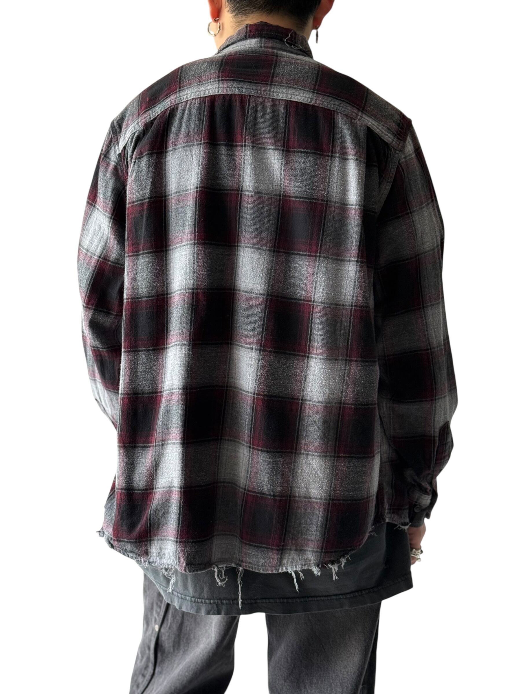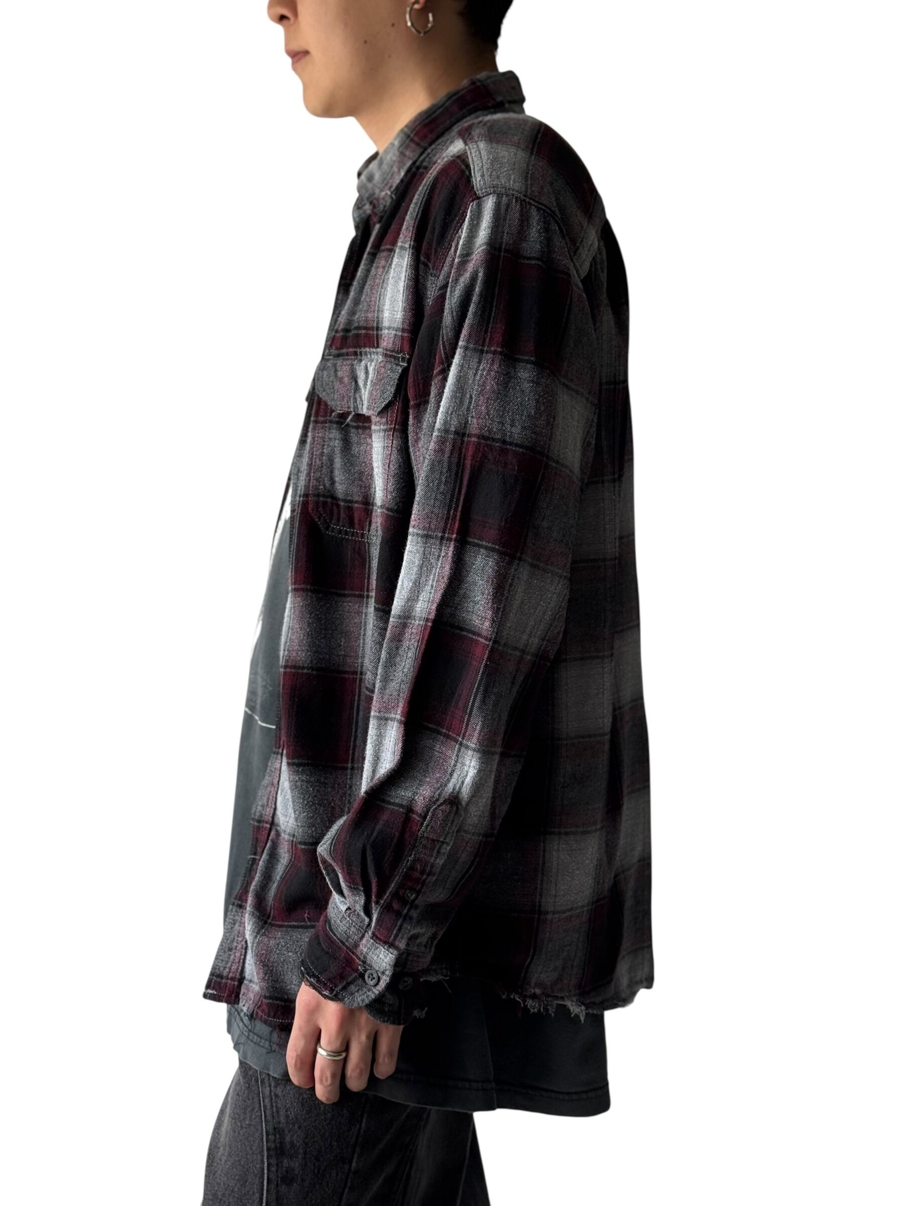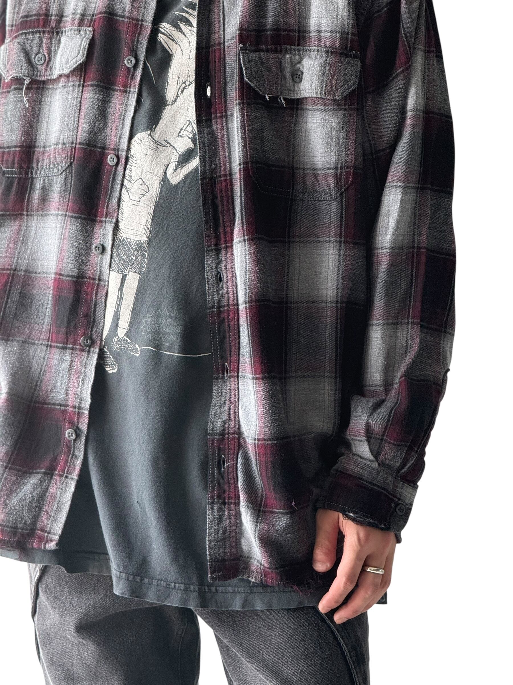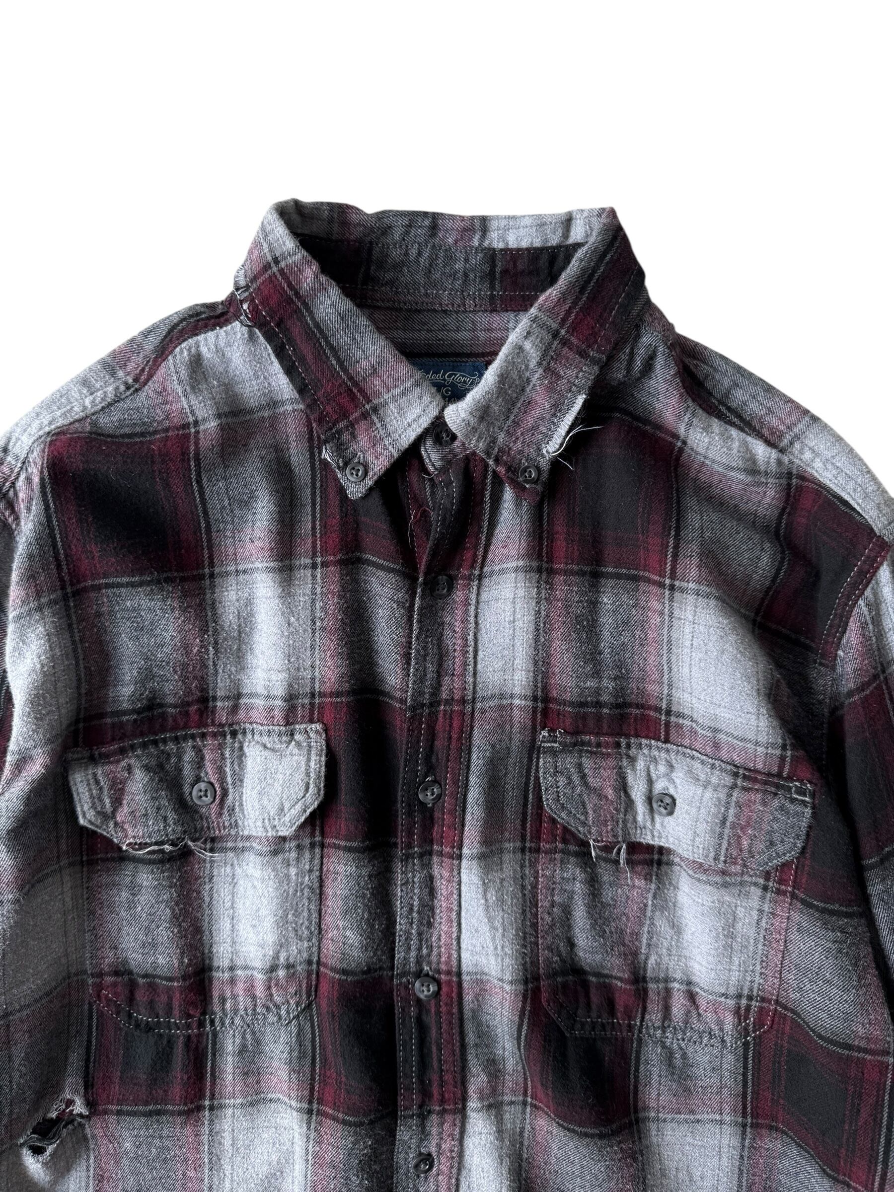 【Faded Glory】Distressed Light Flannel Shadow Check Work Pocket Shirt
