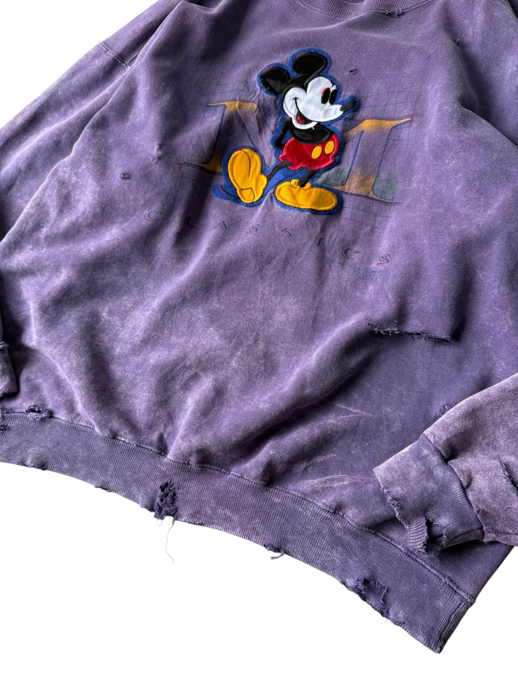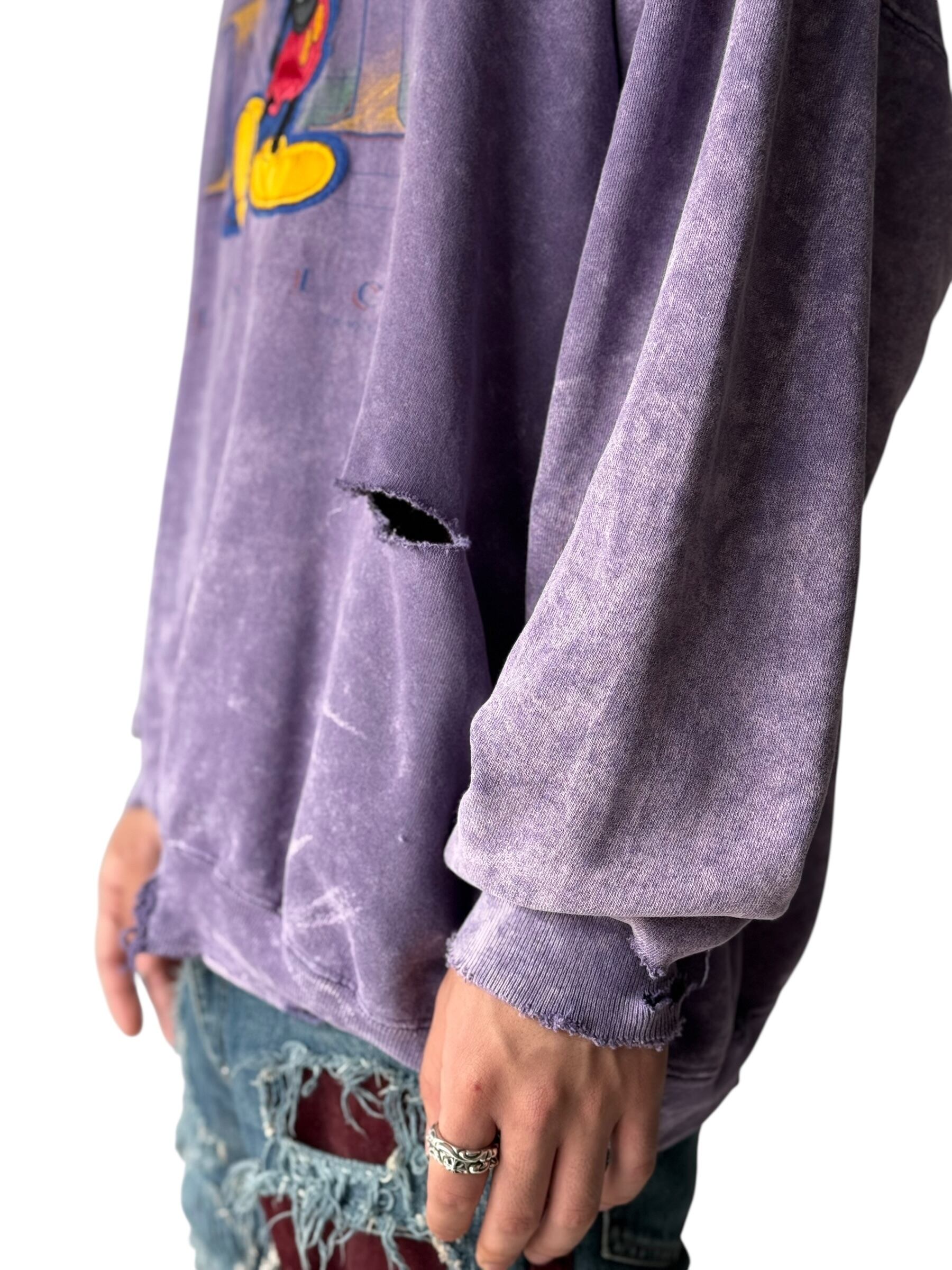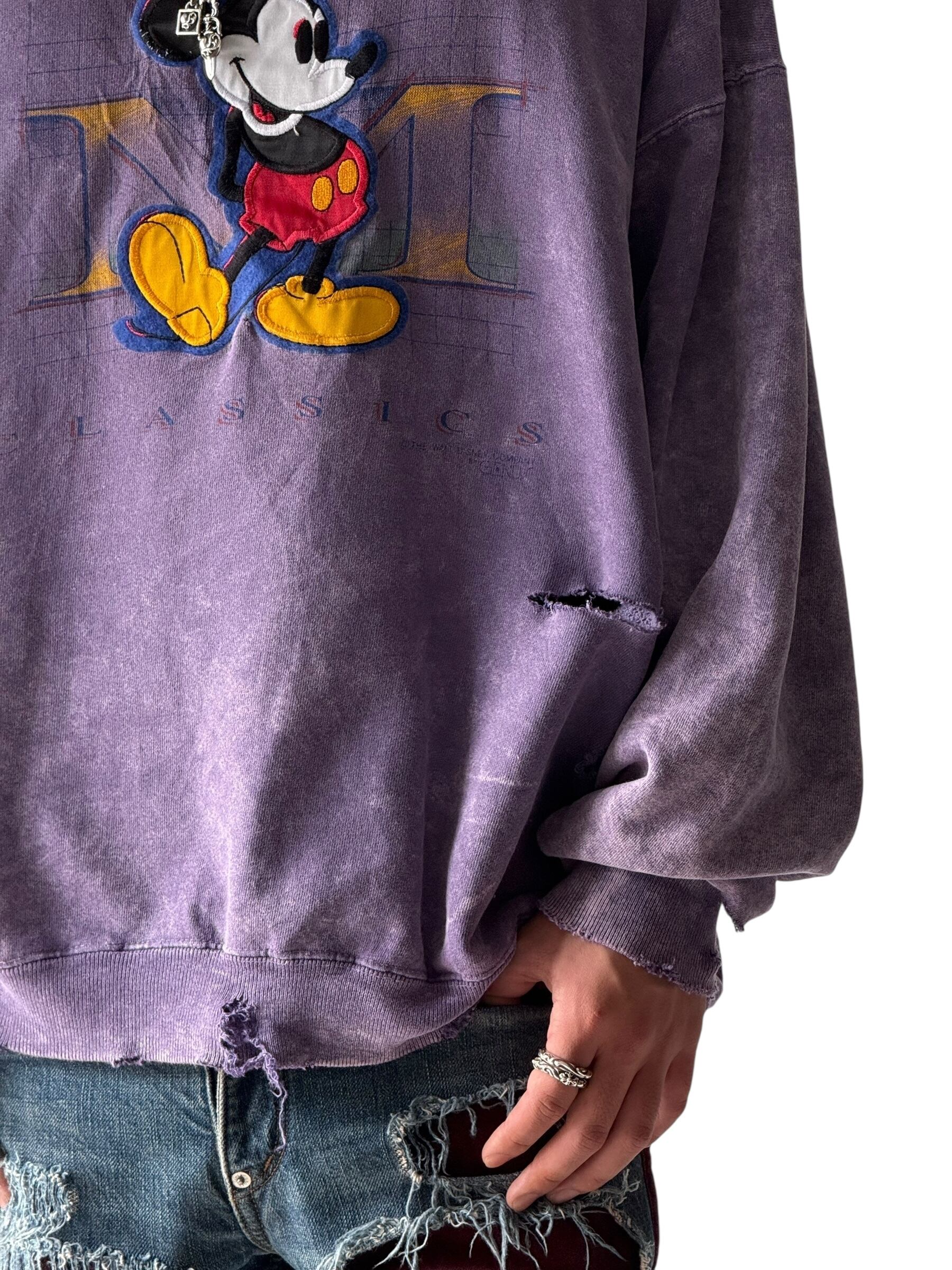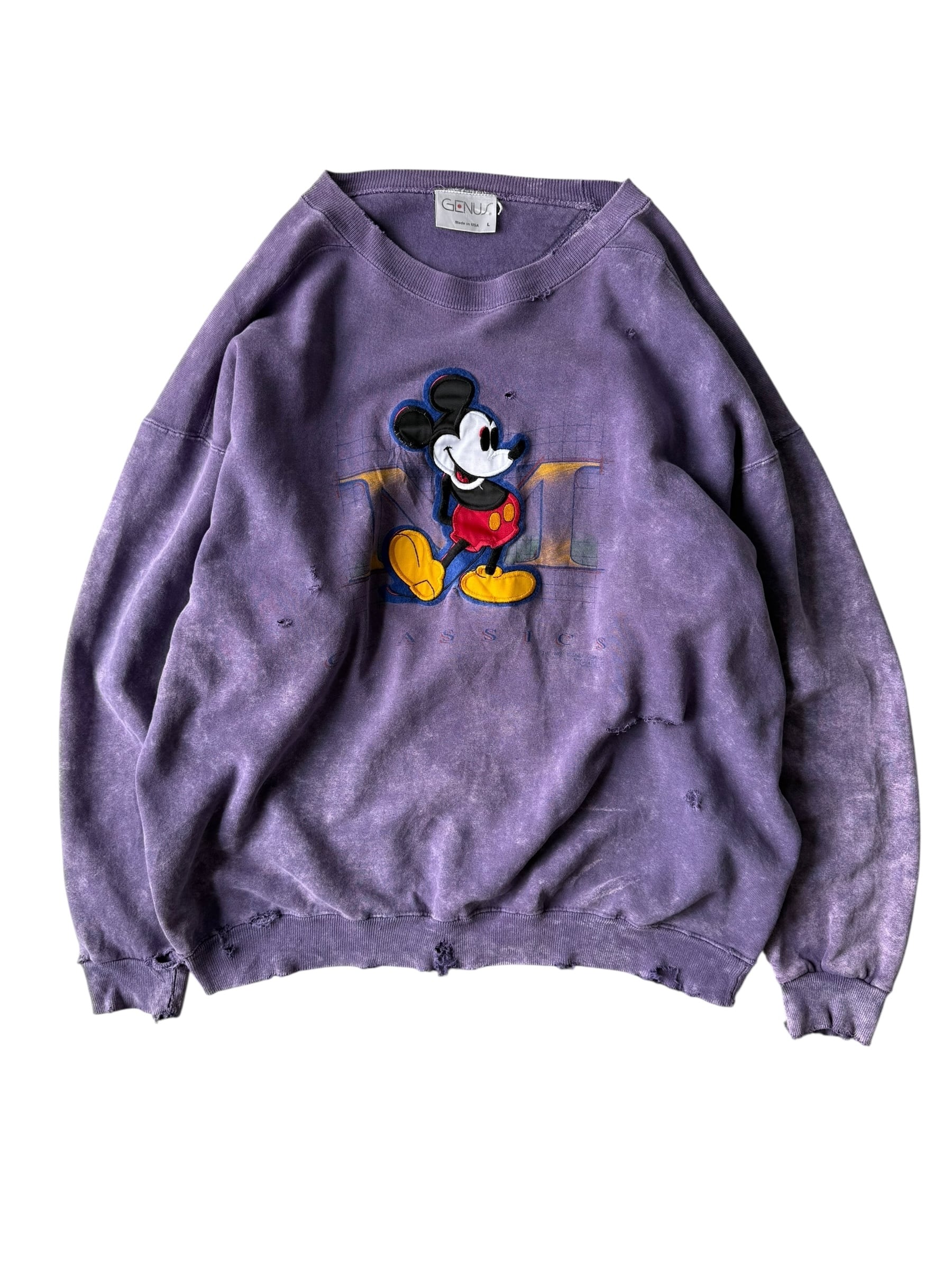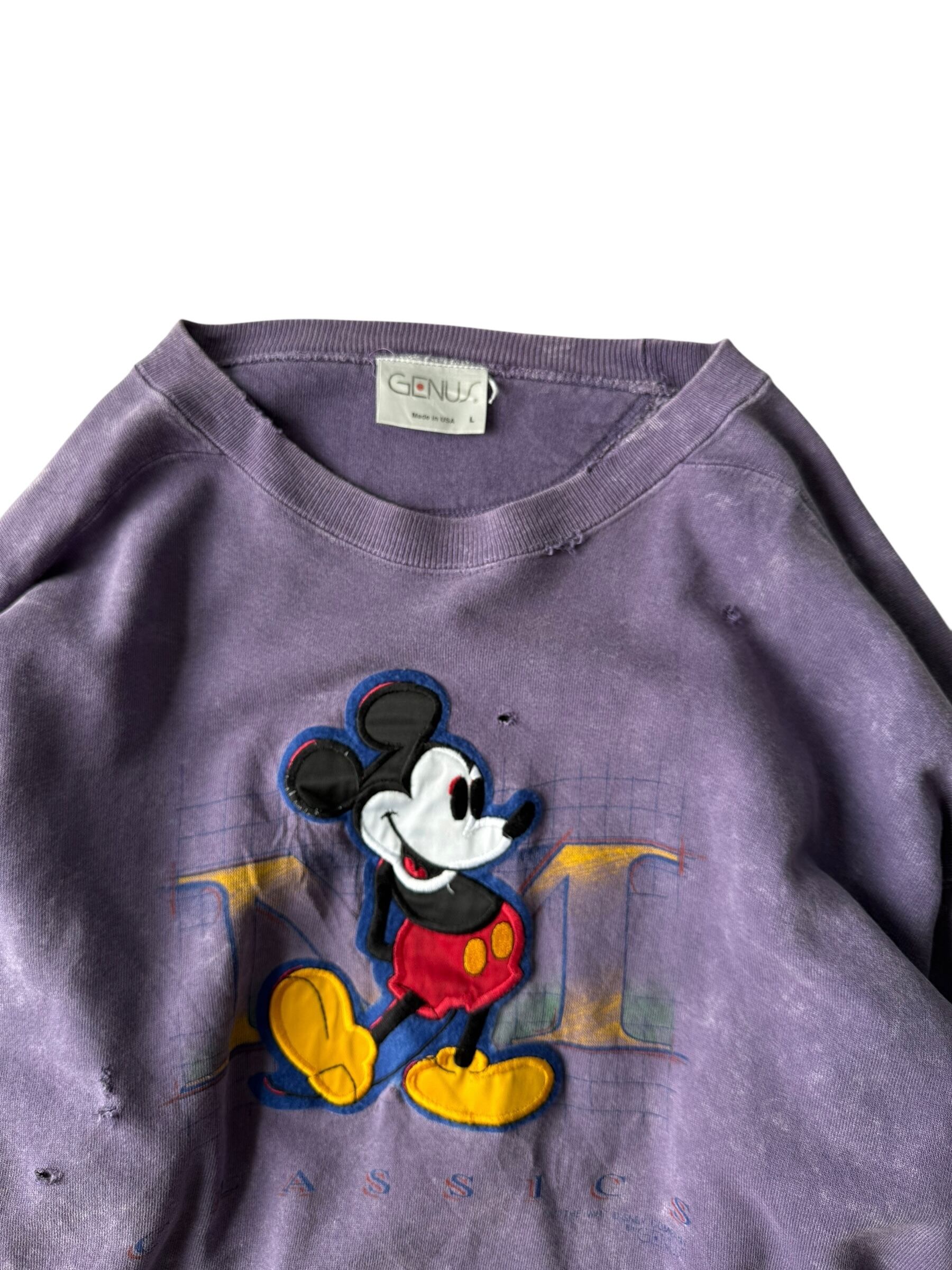 【GENUS】"MADE IN U.S.A." Dyed and ragged Mickey Mouse patch embroidered sweatshirt