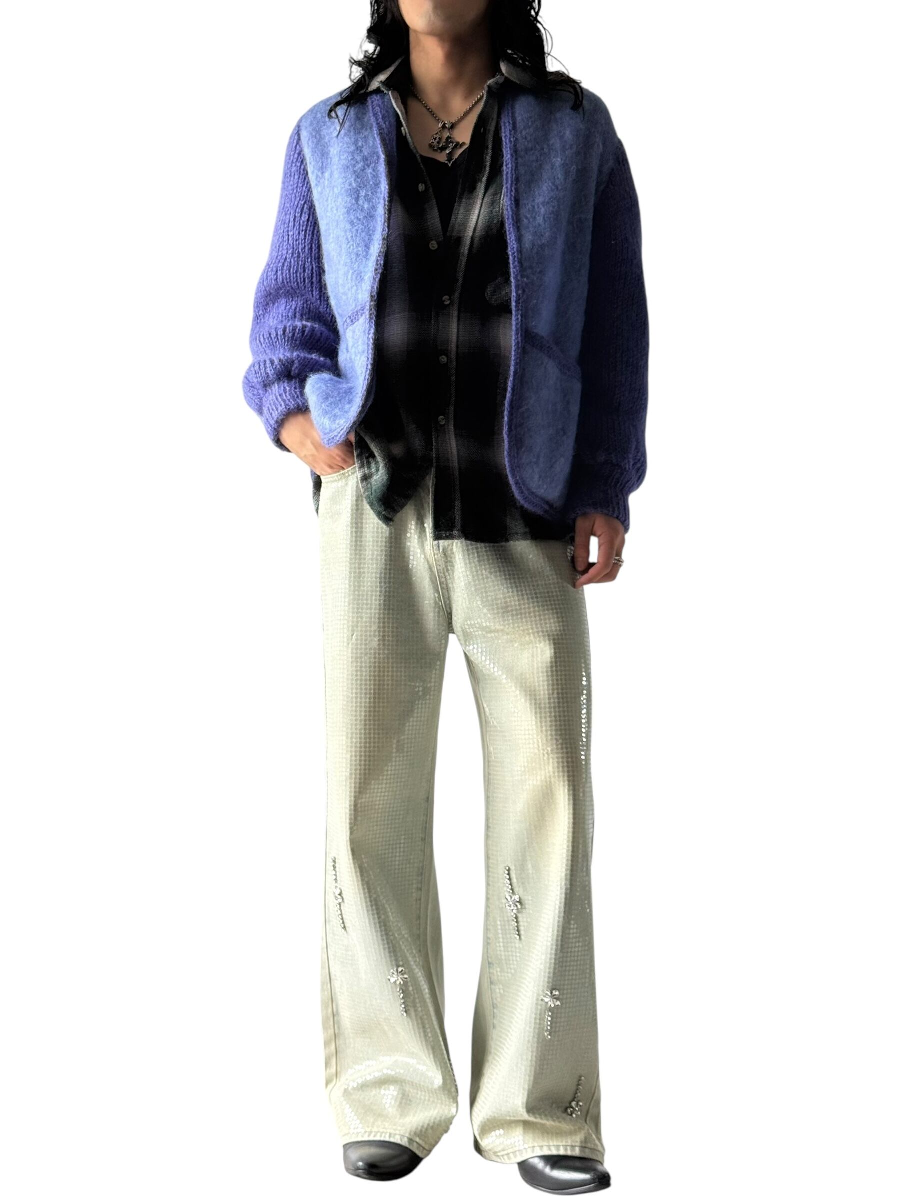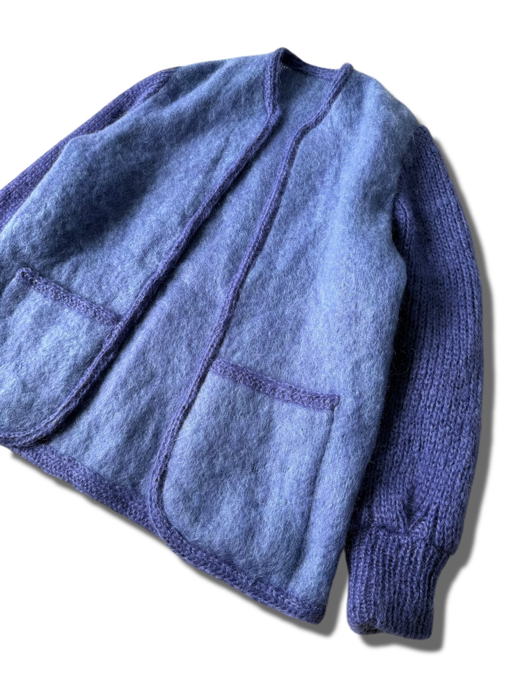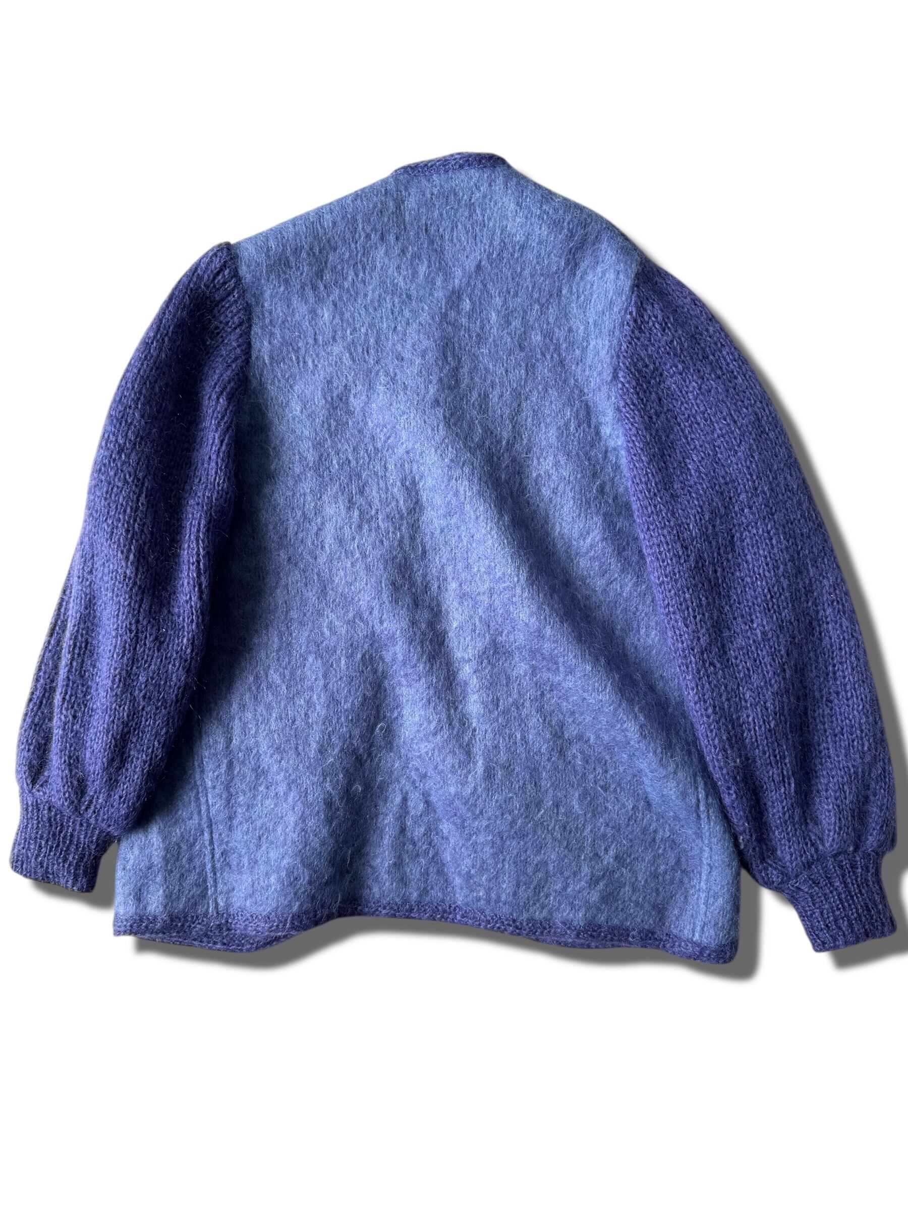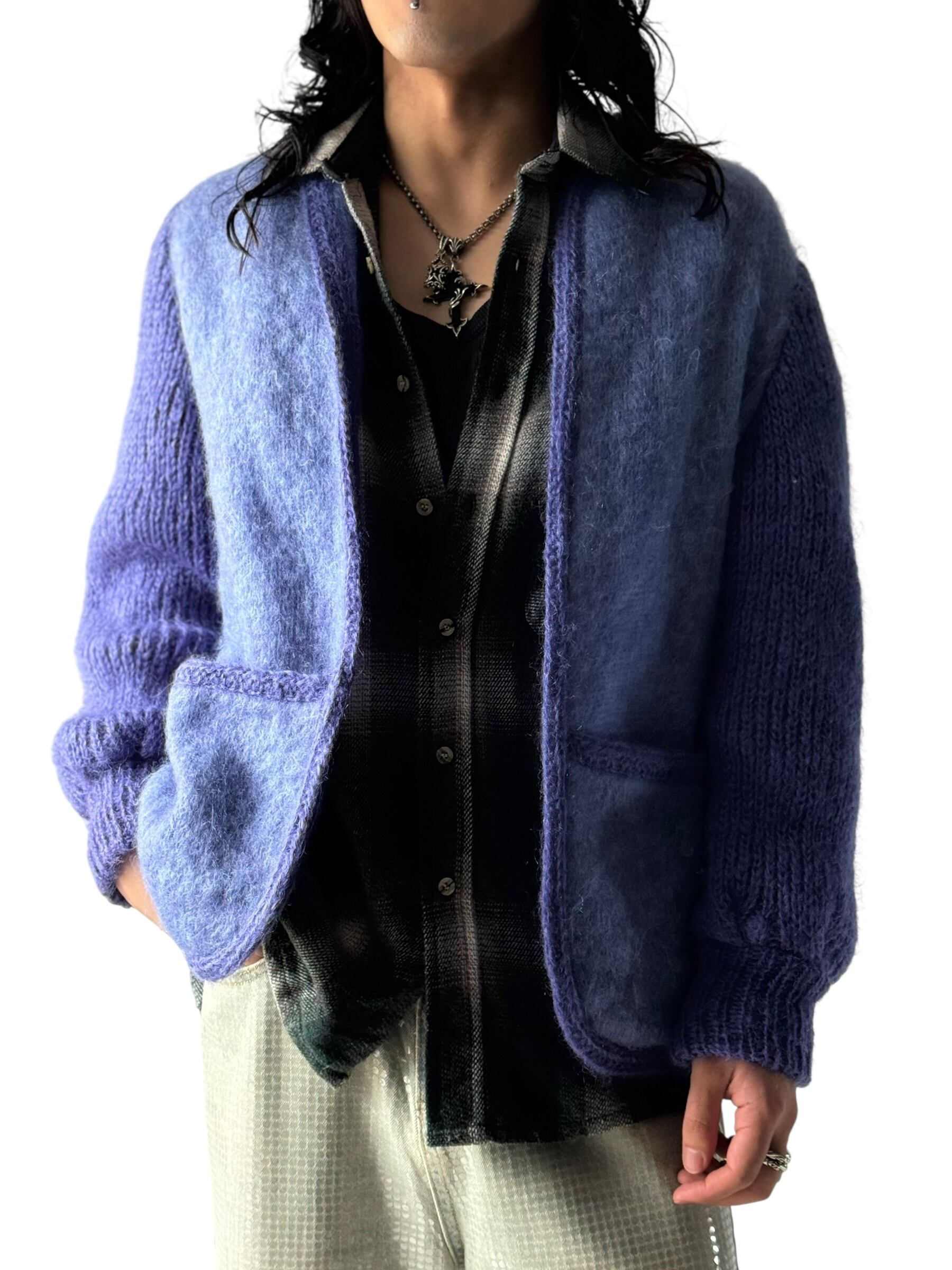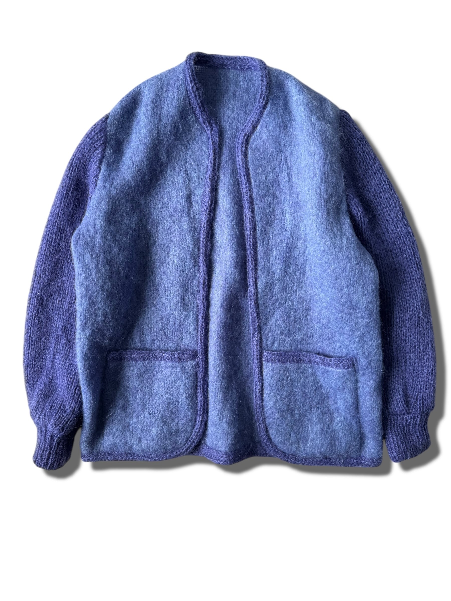 【MADE IN IRELAND】"Euro vintage" HANDWOVEN vintage Two-tone mohair cardigan