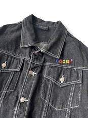 シンプルなブラックデニムに気の利いたホワイトステッチを完備、ロゴにカラフルな刺繍が採用された洒落た配色◎