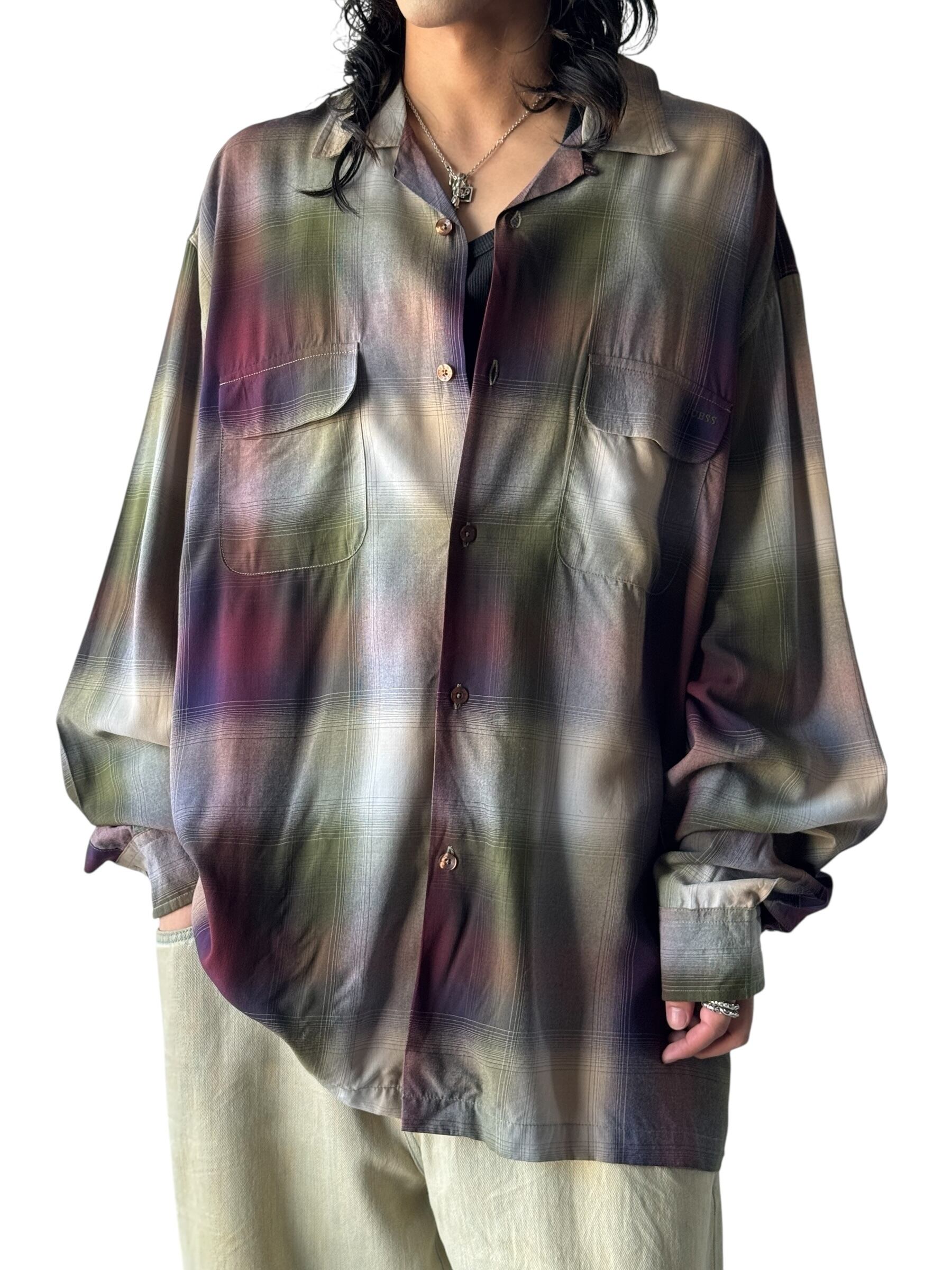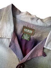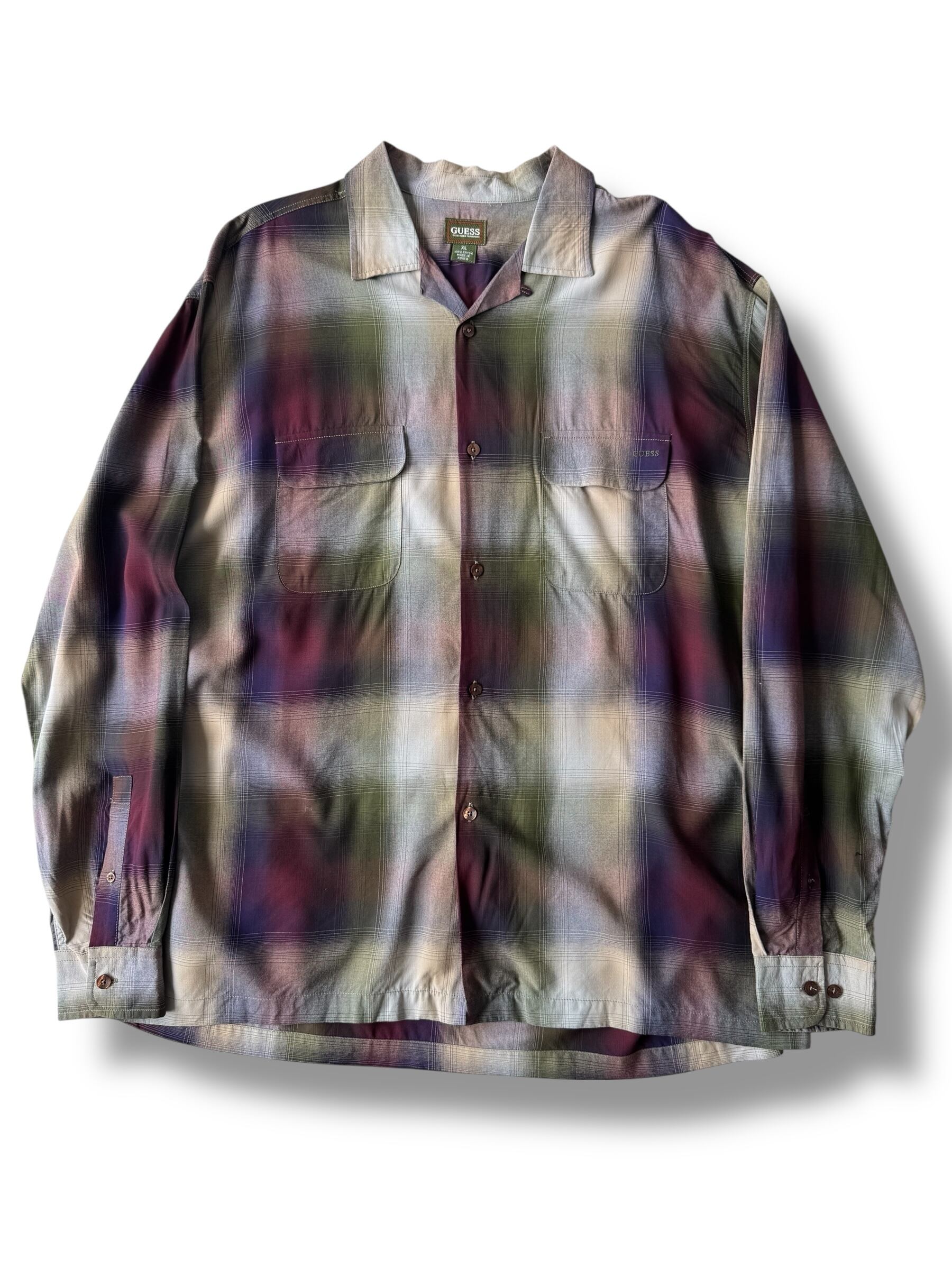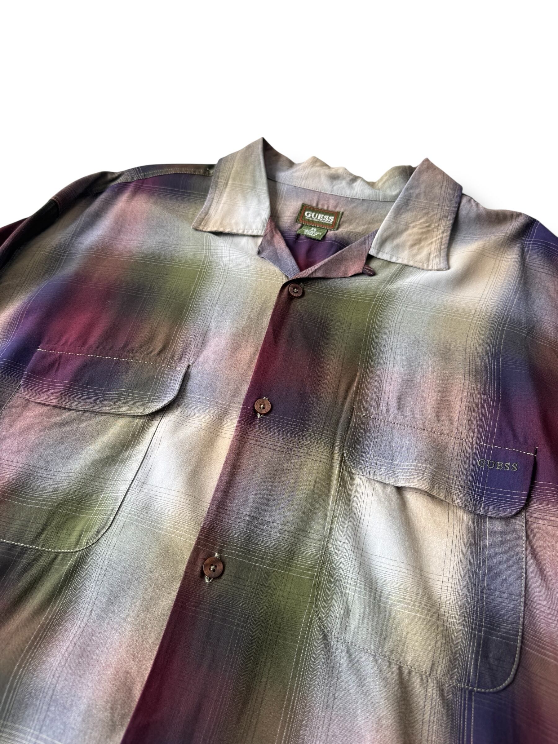 ♾90‘s GUESS♾ ombré check patterned design over sized L/S rayon shirt sizeXL