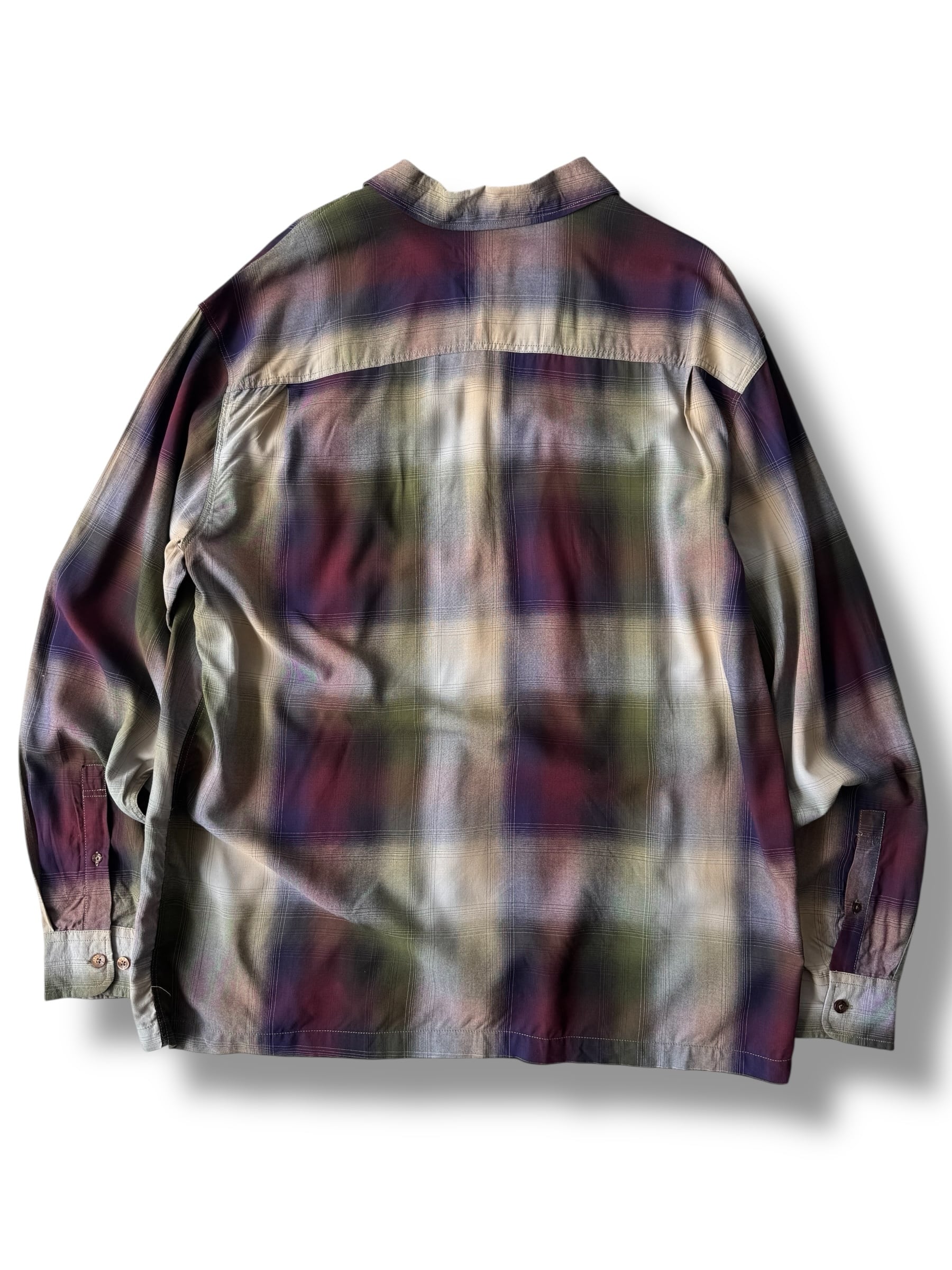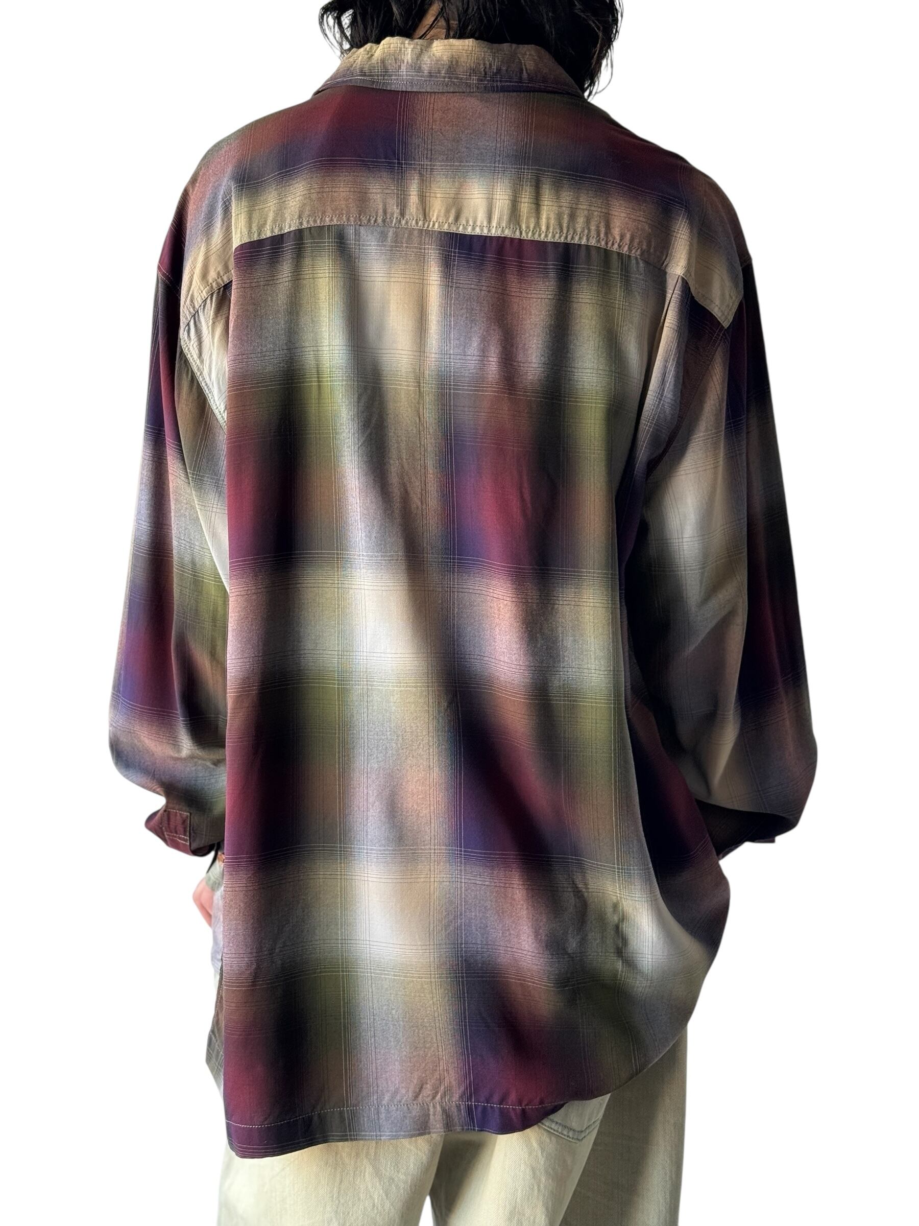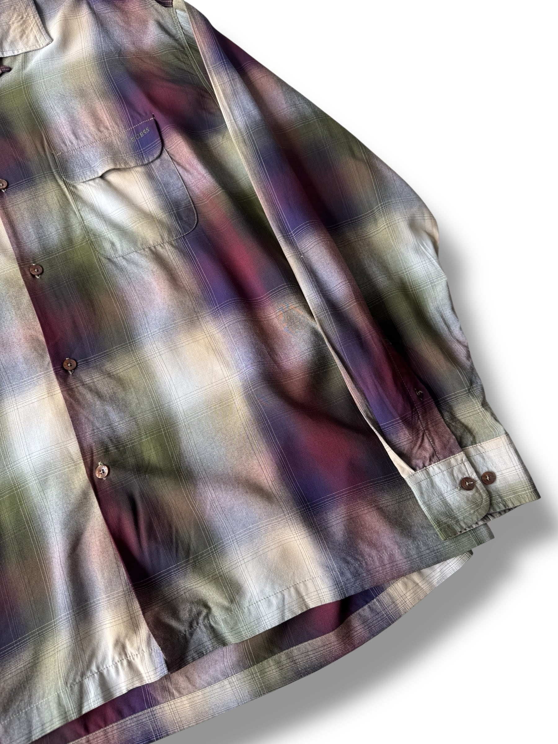 ♾90‘s GUESS♾ ombré check patterned design over sized L/S rayon shirt sizeXL