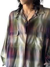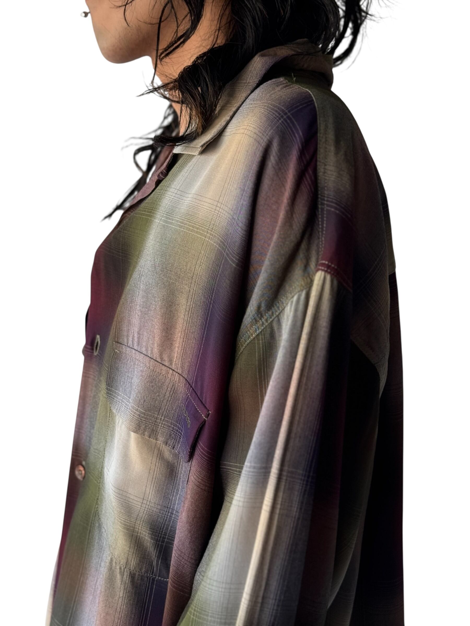 ombré check patterned design over sized L/S rayon shirt