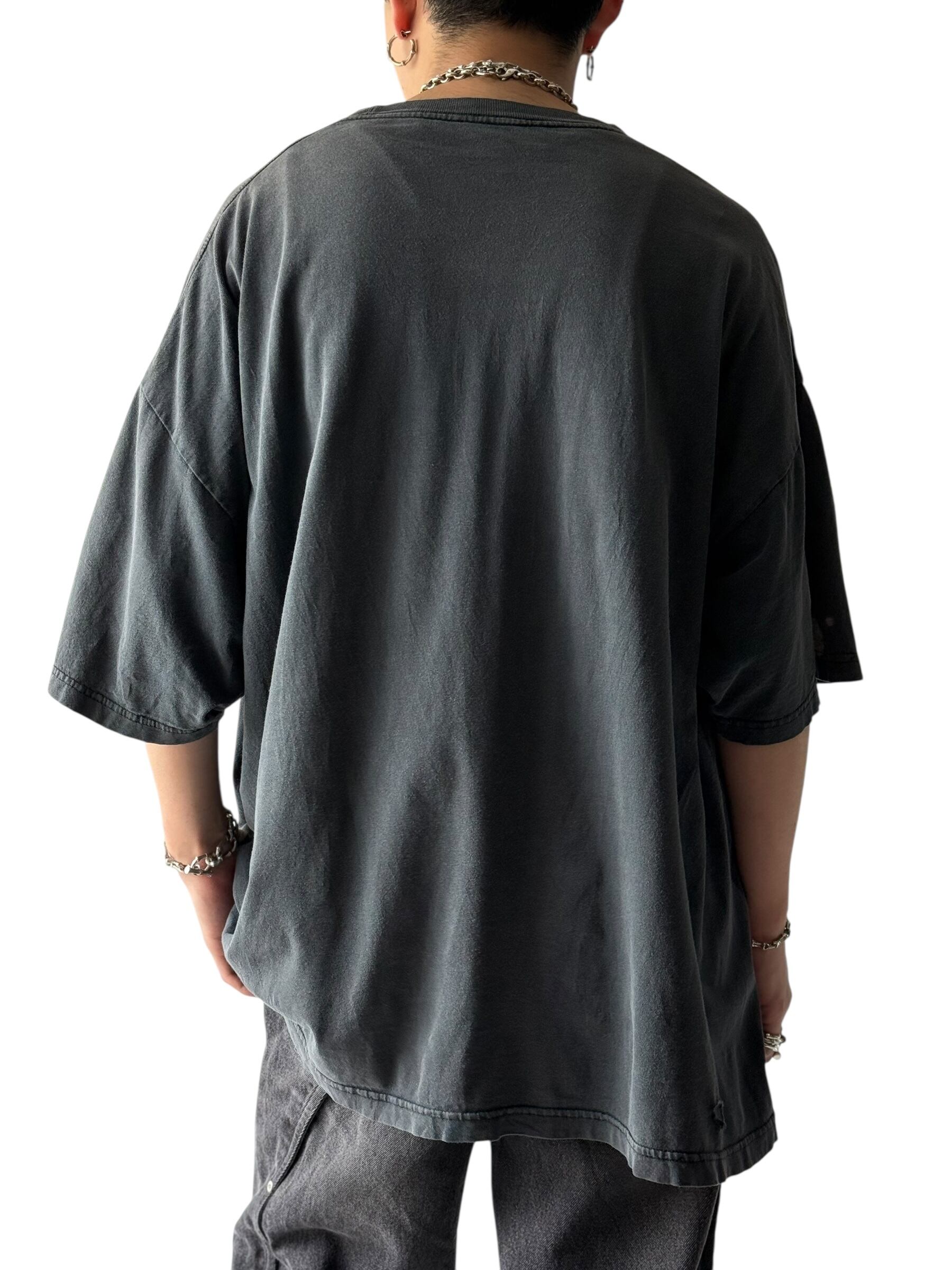 着用感あり、ボディのフェードや袖の色抜け、後ろ側裾付近の穴など味のある雰囲気となっております。