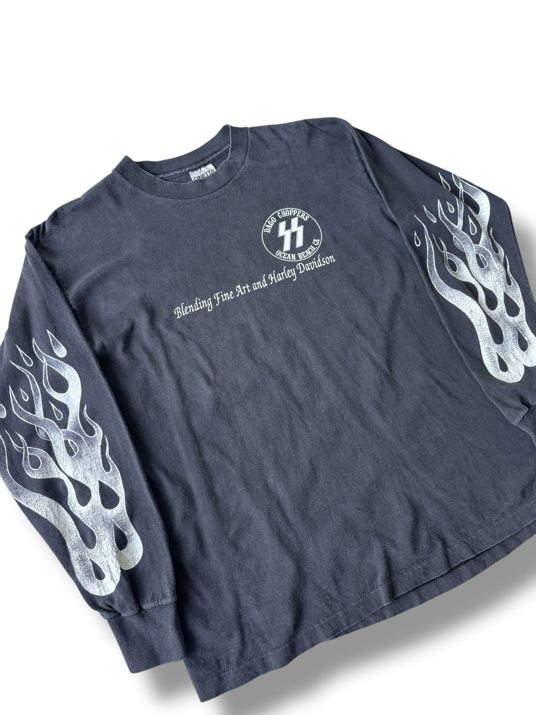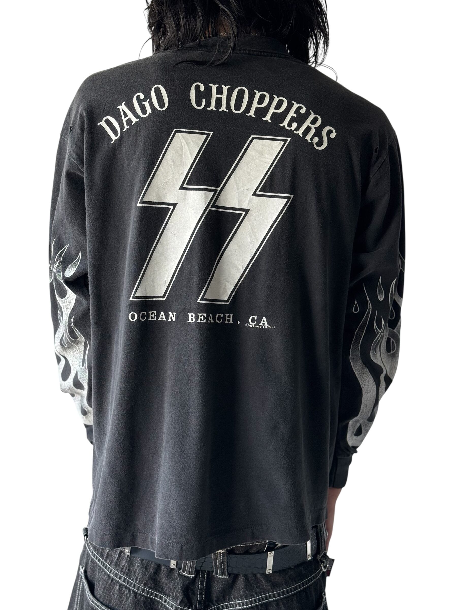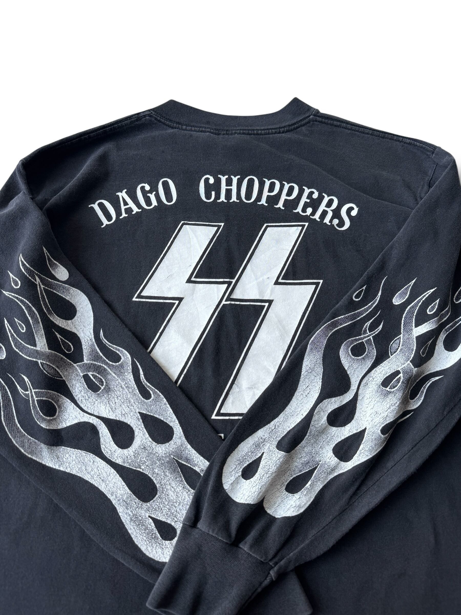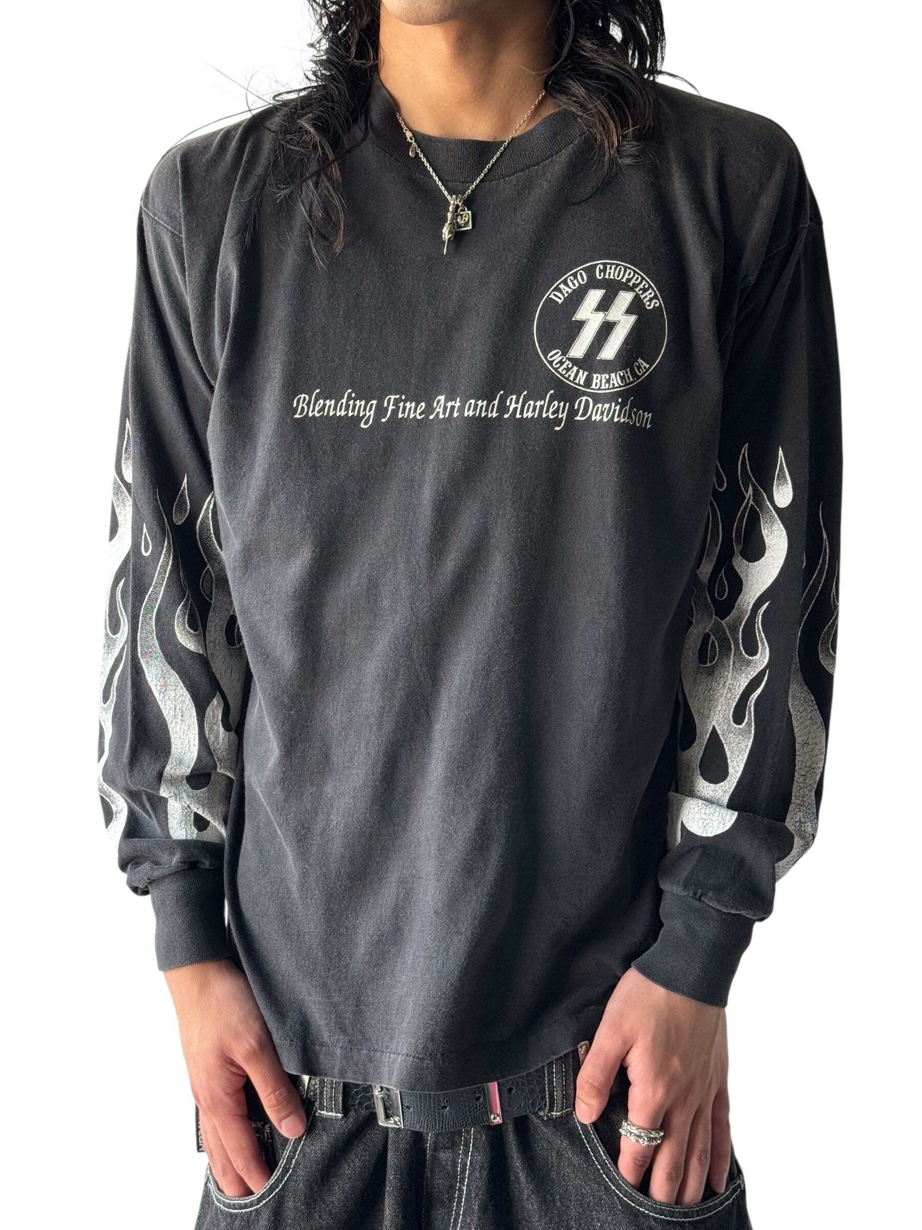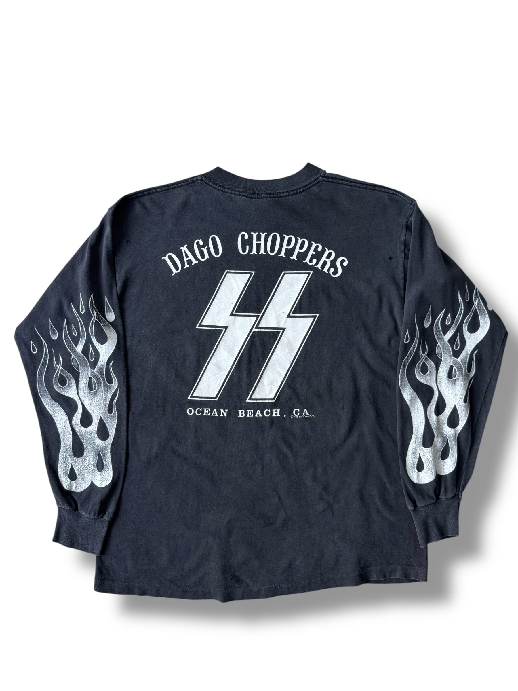 ♾80's DAGO CHOPPERS♾ ©️1985 Fire pattern sleeve design long sleeve T-shirt
