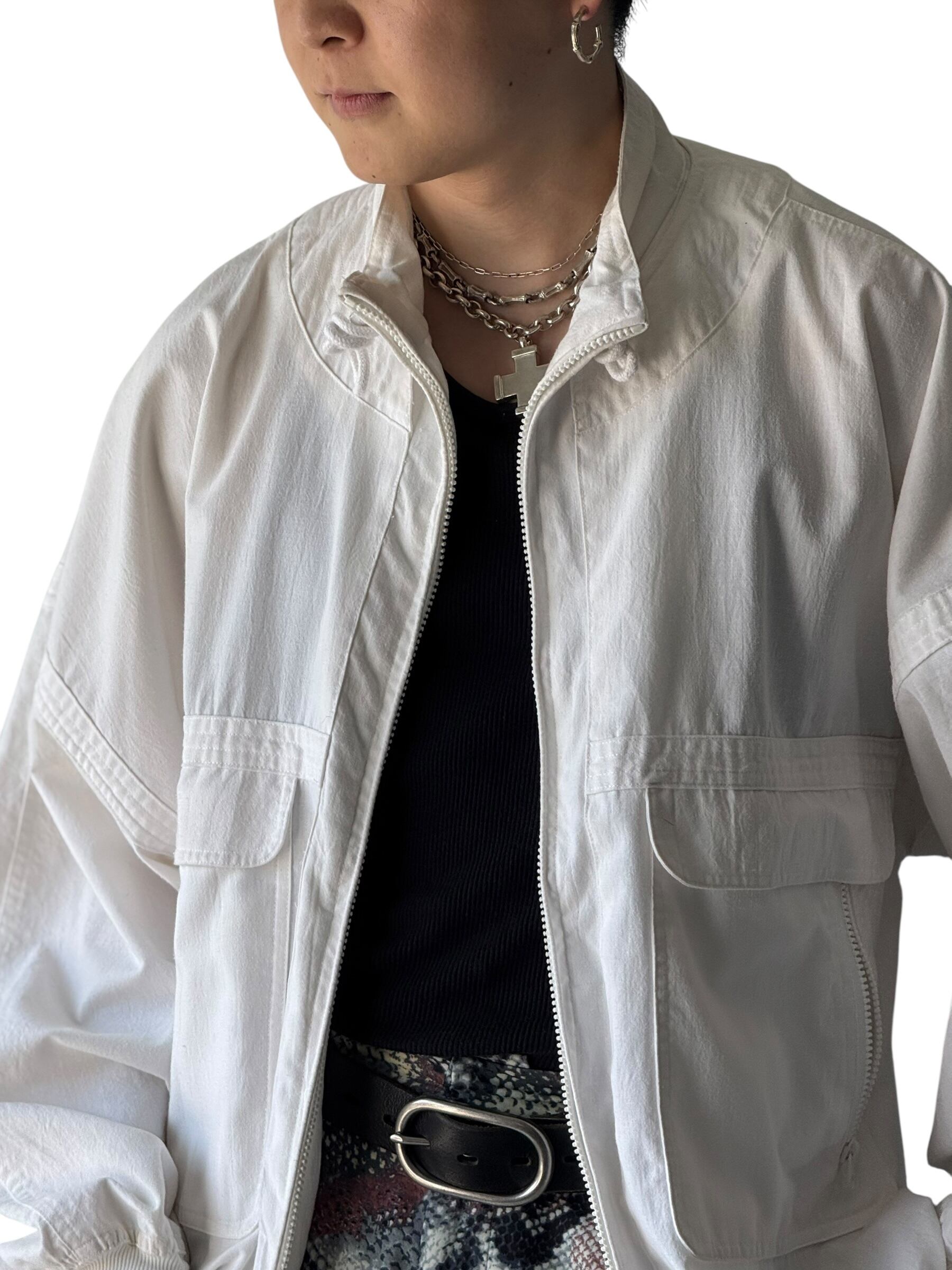 オールホワイトで軽やかにかっこいい軽いアウター‼️ 肌寒い時や、微妙な季節にぴったり❗️