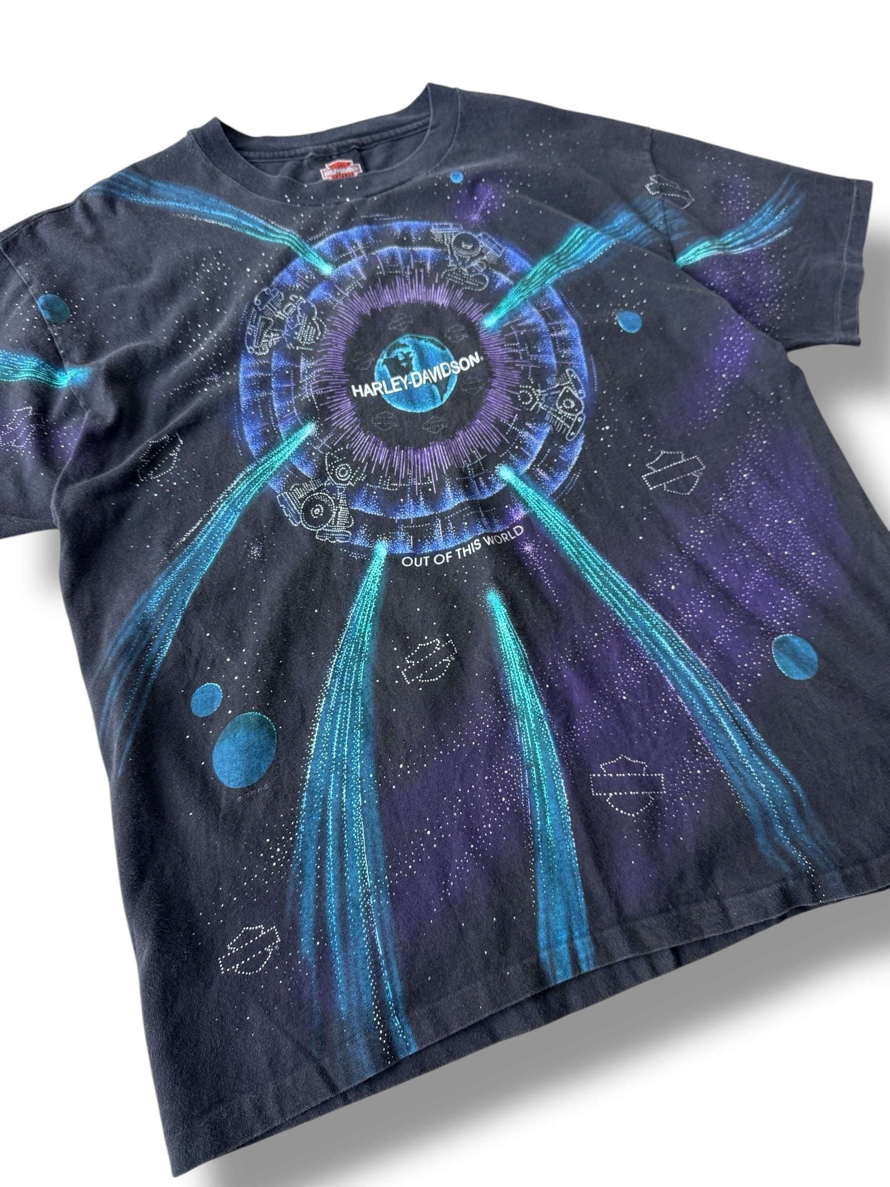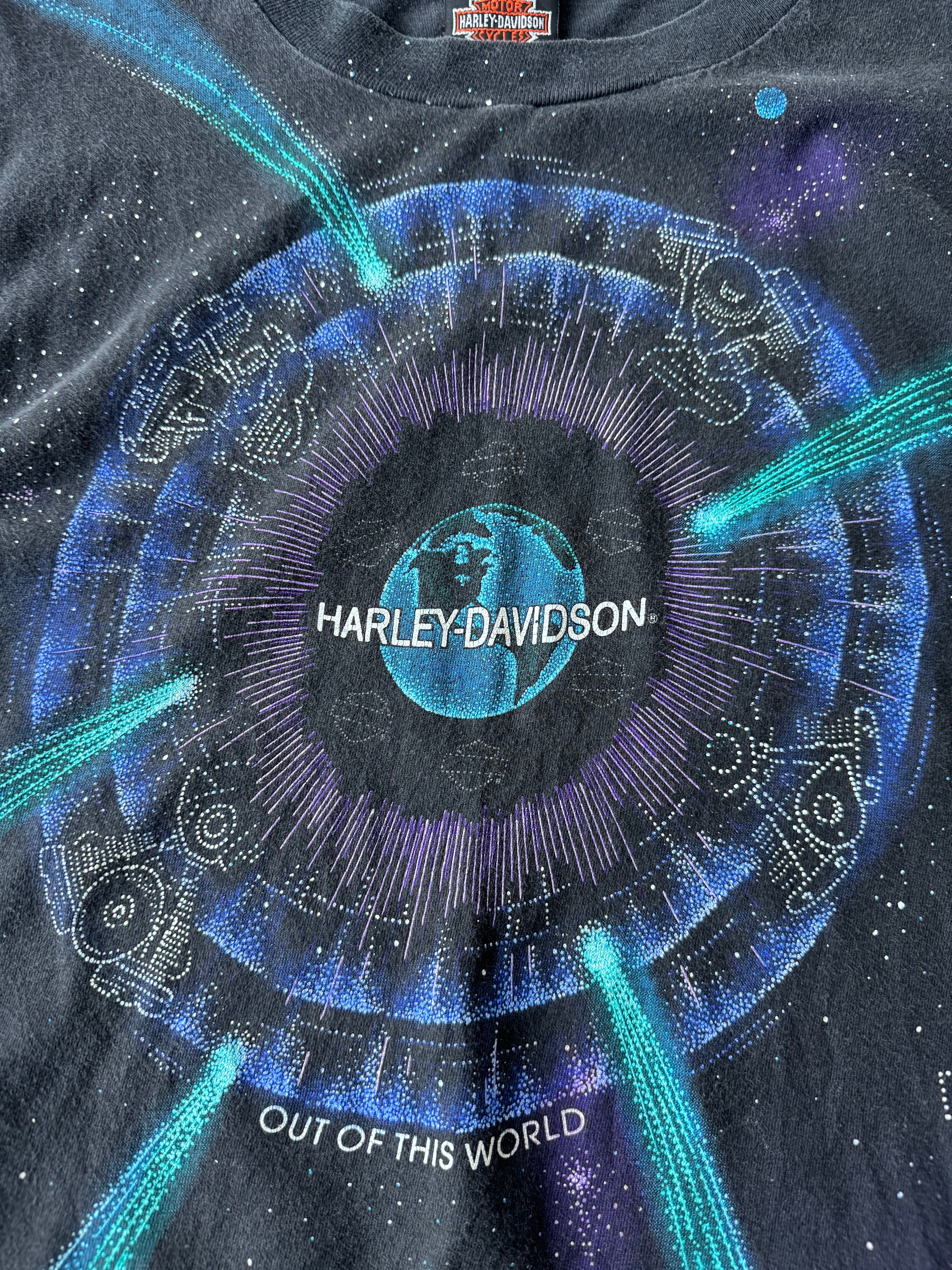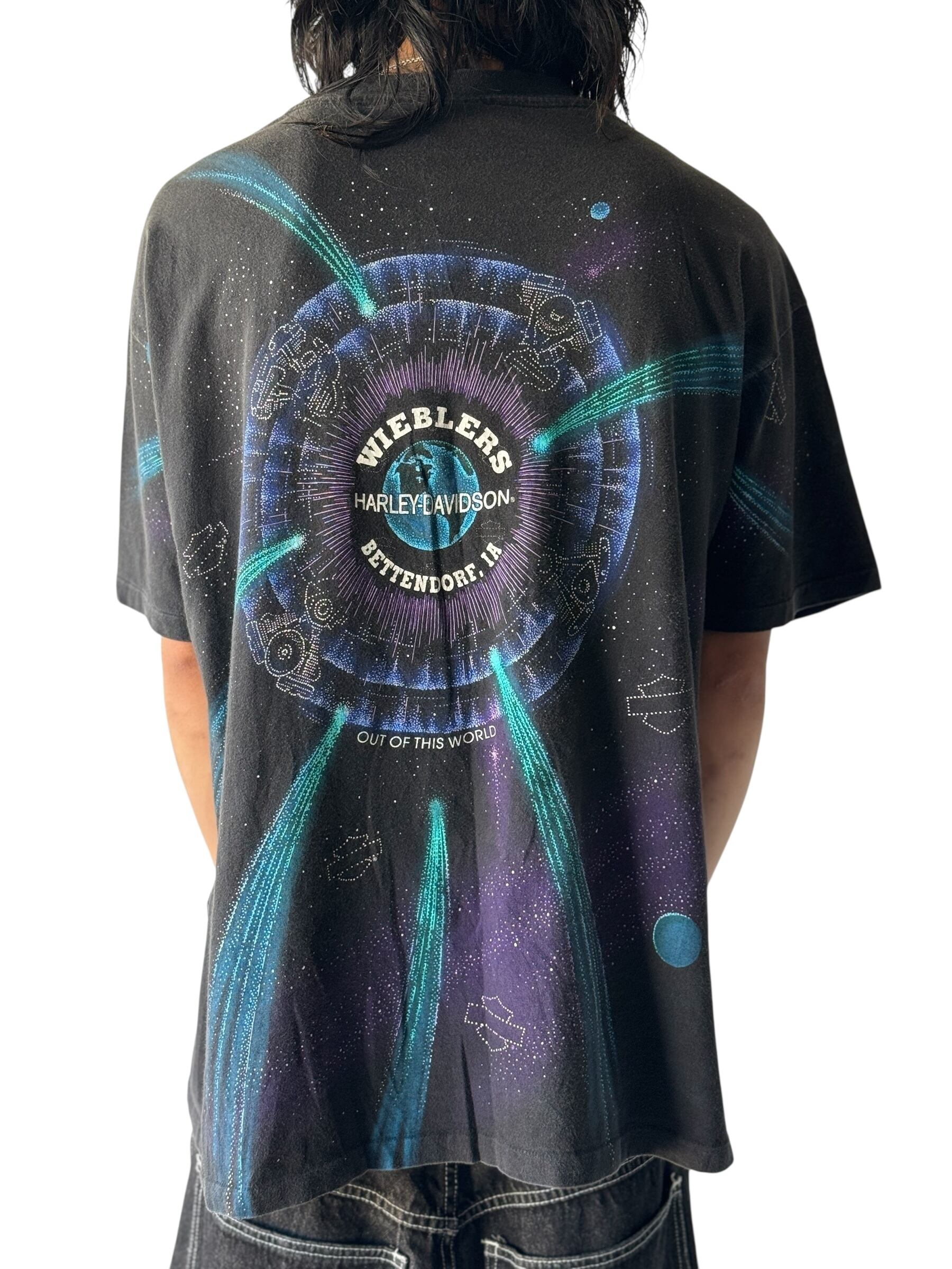 ♾90's HARLEY-DAVIDSON♾ vtg spacethemed design t sizeXL MADE IN U.S.A.