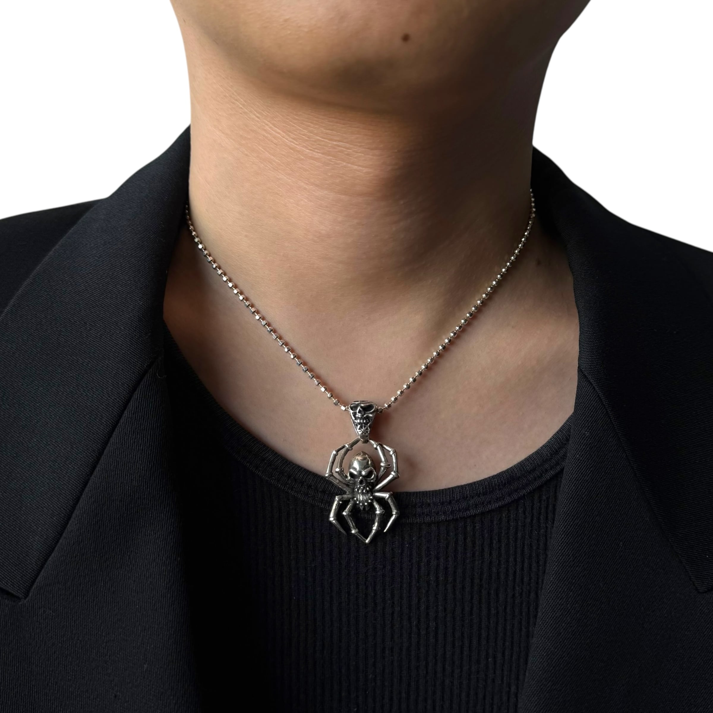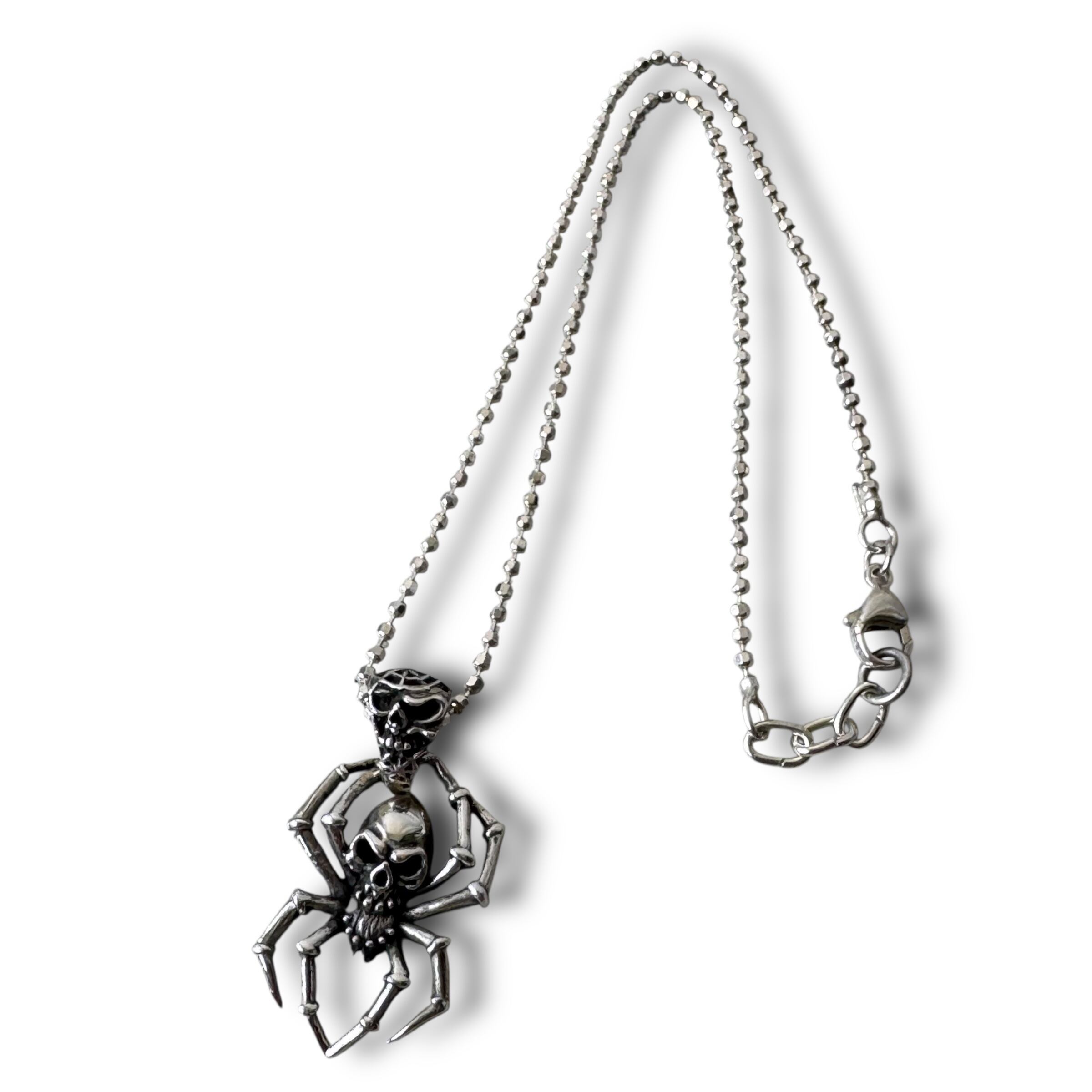 蜘蛛の体が髑髏になっているインパクト抜群なデザインのシルバーネックレスの入荷‼️‼️