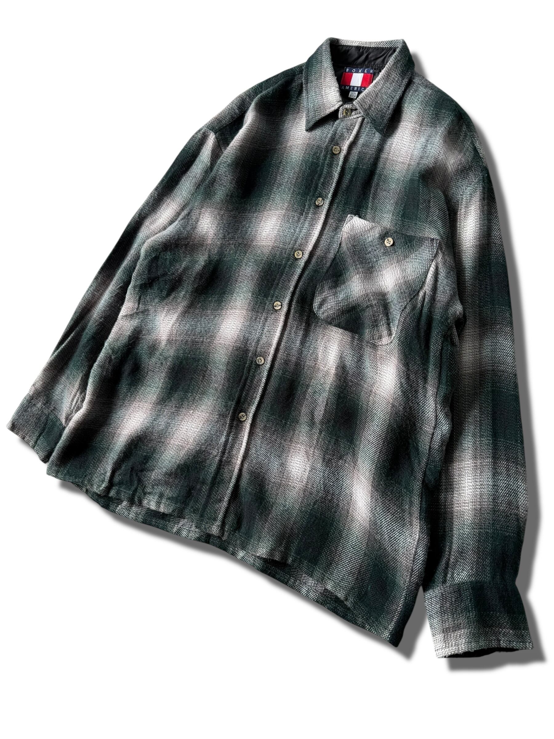 織りで入ったオンブレチェック、シャドー感が雰囲気半端ないアクリルシャツ✨✨