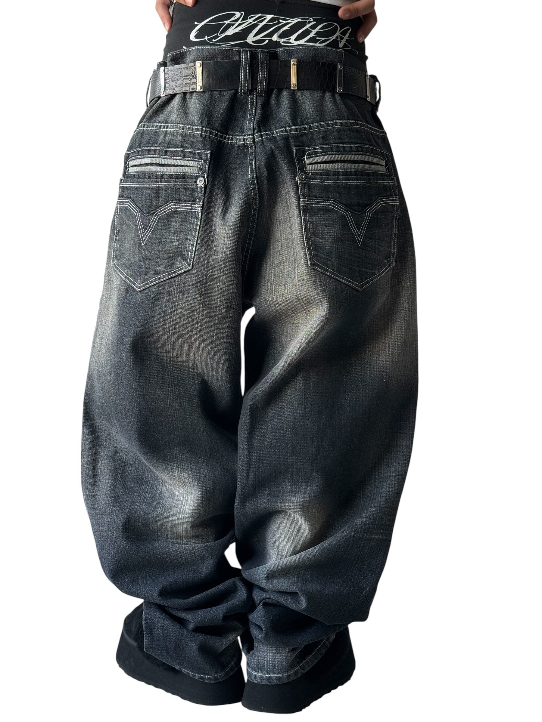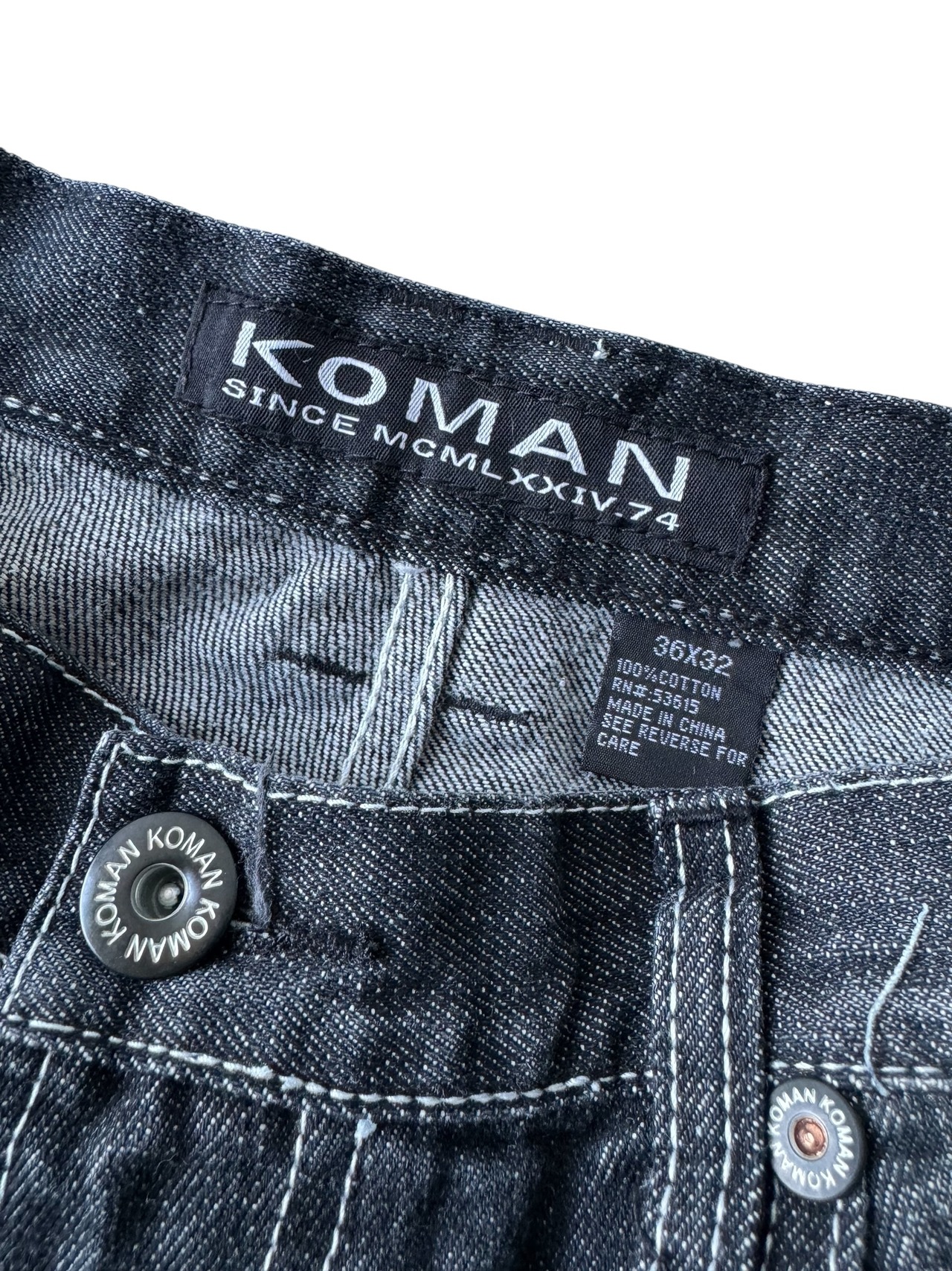 ♾ KOMAN ♾ double back pocket design baggy denim pants size 36