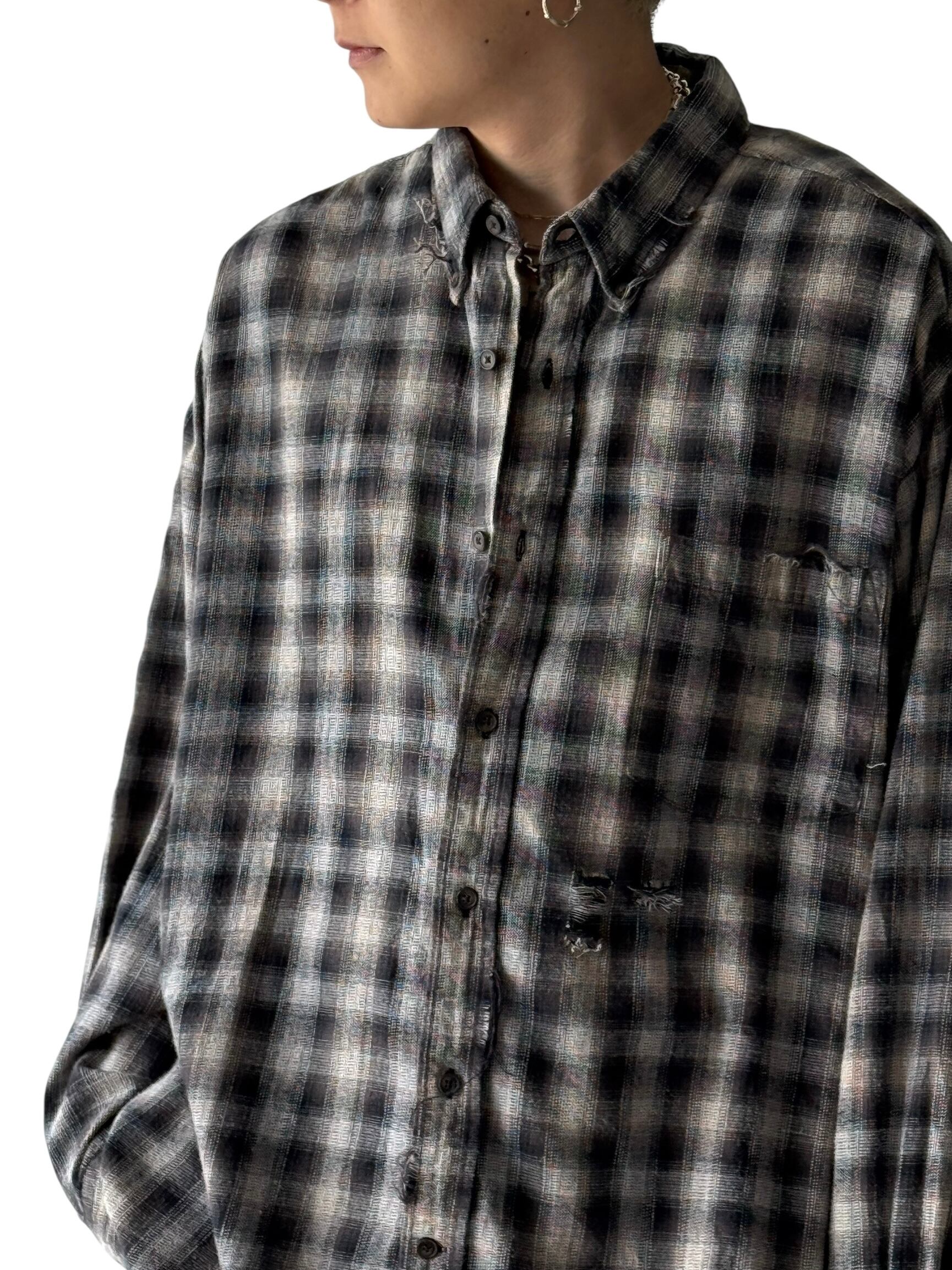 Design crushed ombré check shirt / size XXL