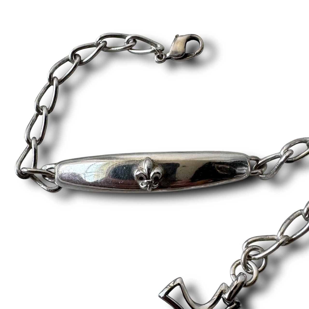 シンプルなプレートデザインのブレスレットですが、プレートにフレアモチーフが立体的にデザインされていたり、留め具にクロスのトップが着いたキュートなデザイン✨️✨️