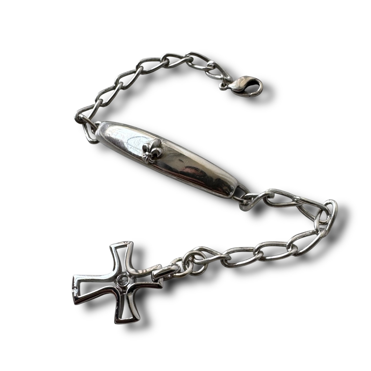 ♾ vtg sv jewelry ♾ flare plate cross top design bracelet sv925 ・