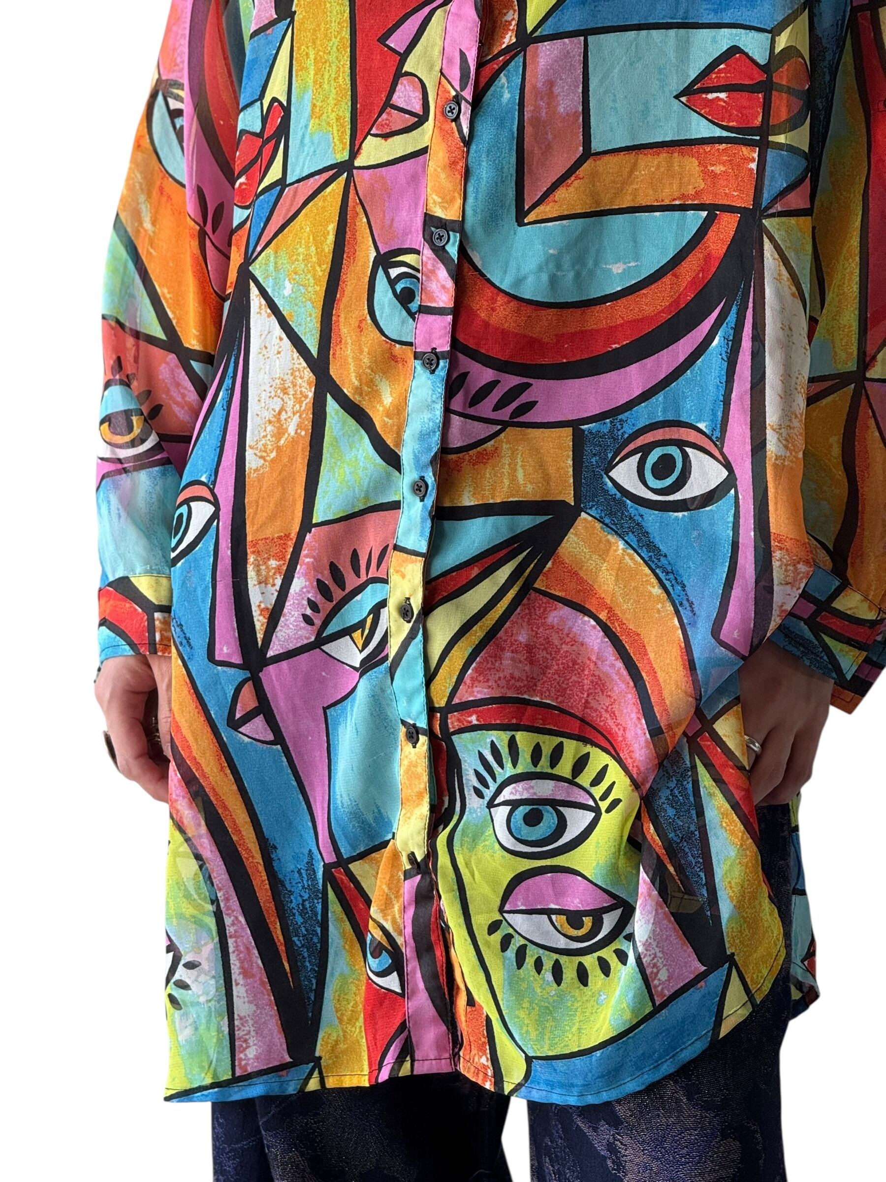 "ピカソ"ノリな直球でこれぞアートなフェイス柄のロングシャツ!!!!! これでインド製って生地のクオリティとかも拘ってて素晴らしい✨