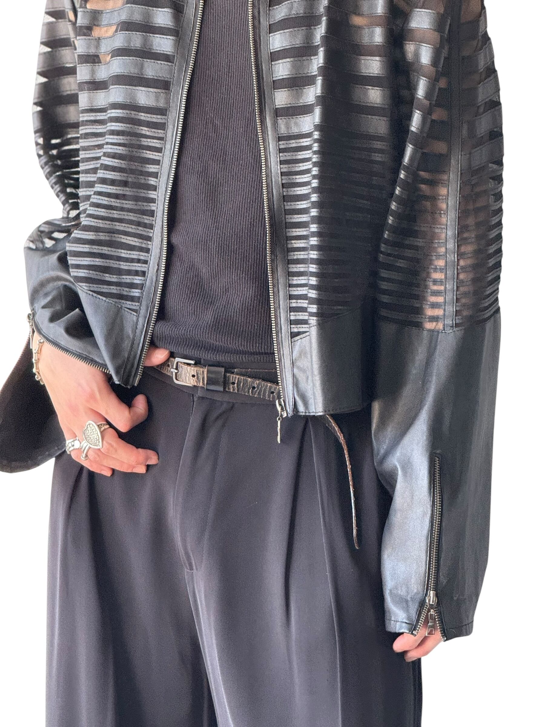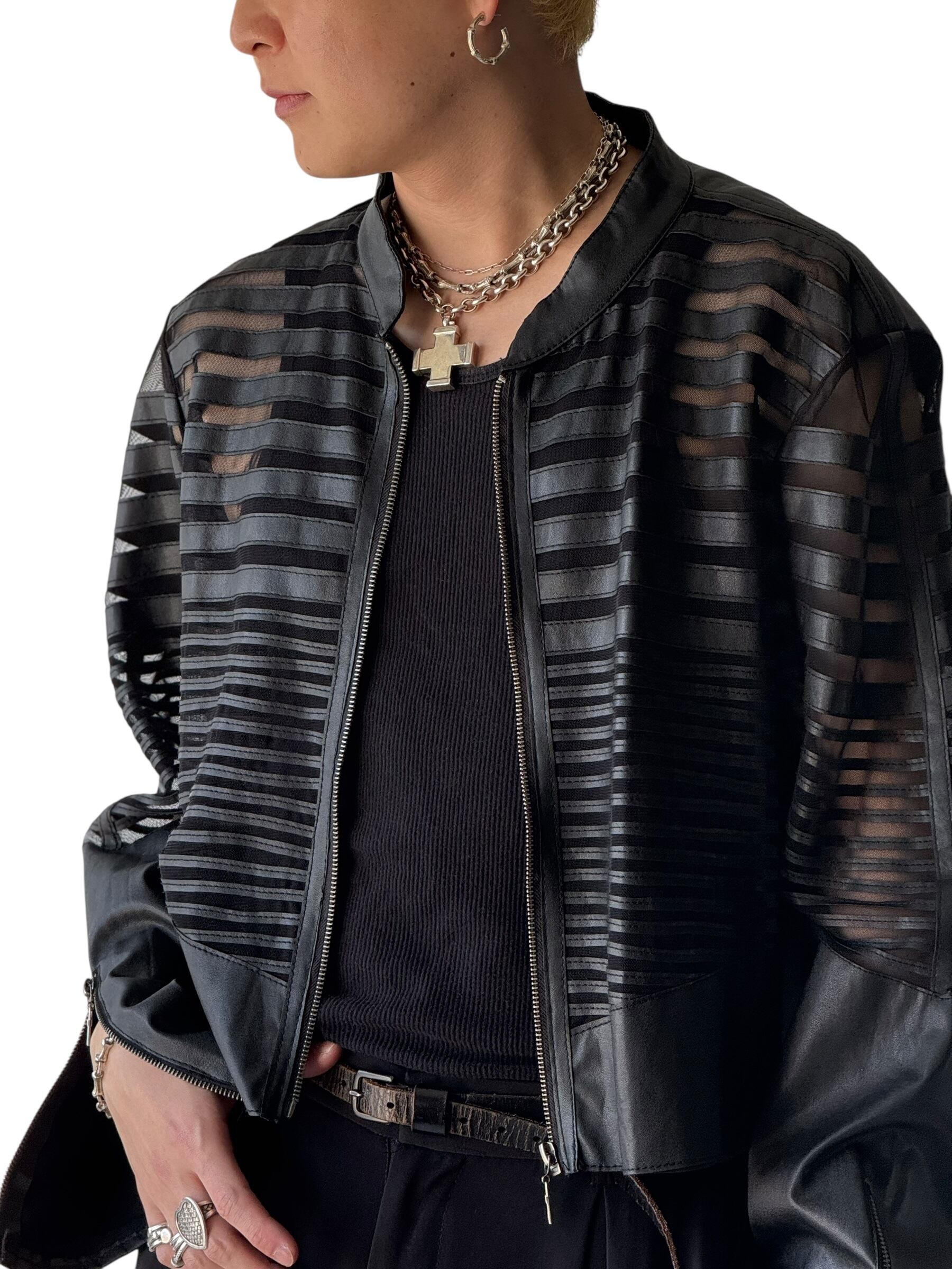 レザーとメッシュでシアーなマッチングは唯一無二のお洒落な最高峰✨ 袖ジップは両腕開いて着ても面白いかと❤️