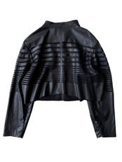 【ASHLEY STEWART】Mesh pattern Design Leather zip jacket