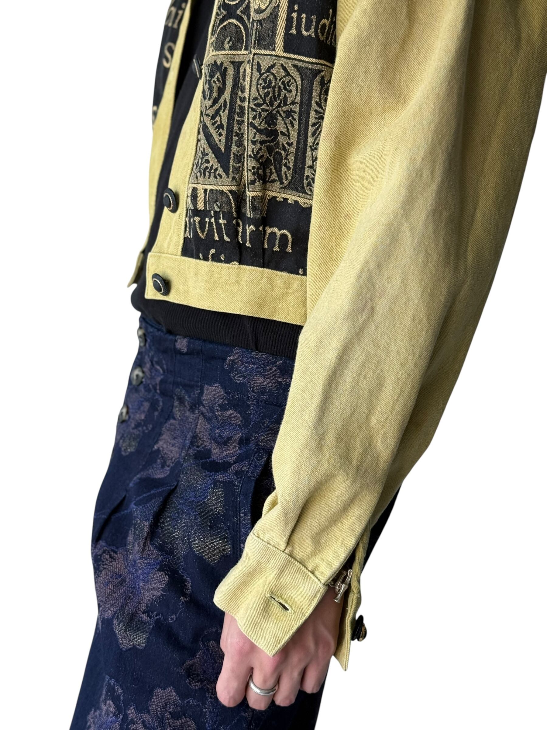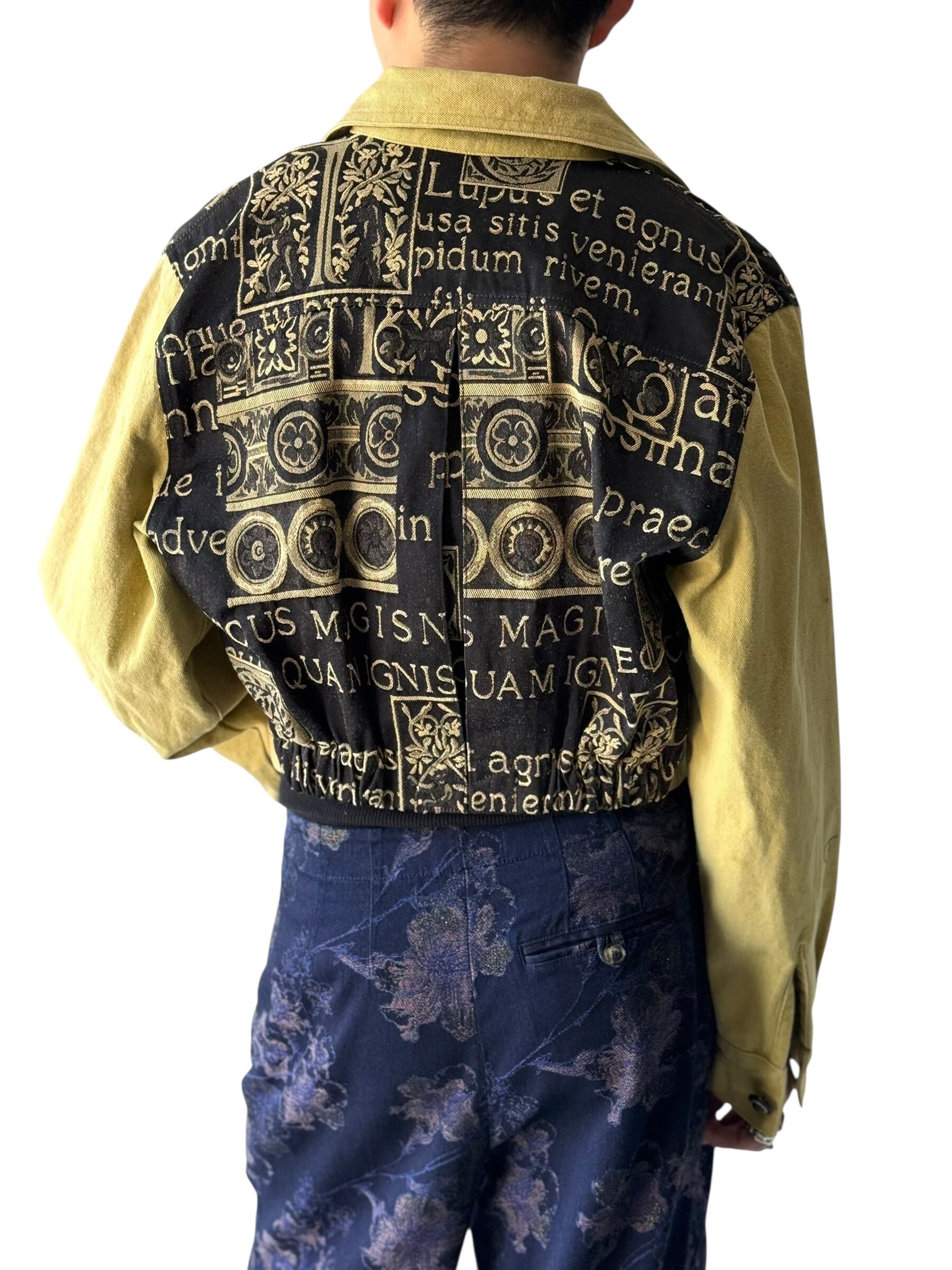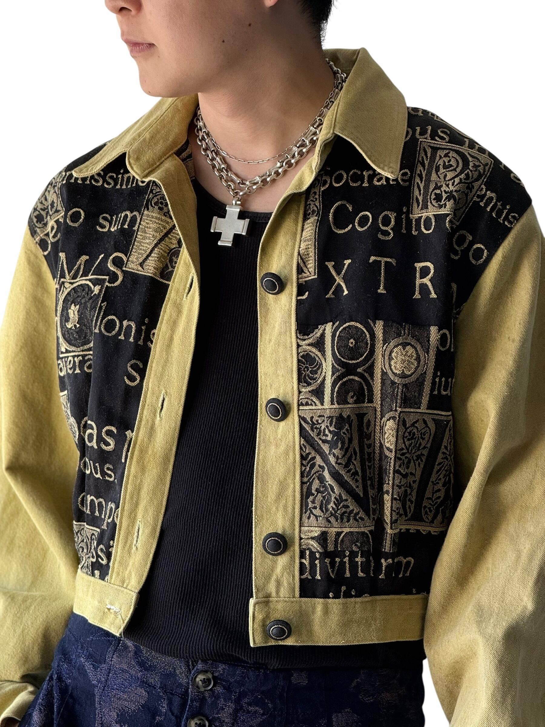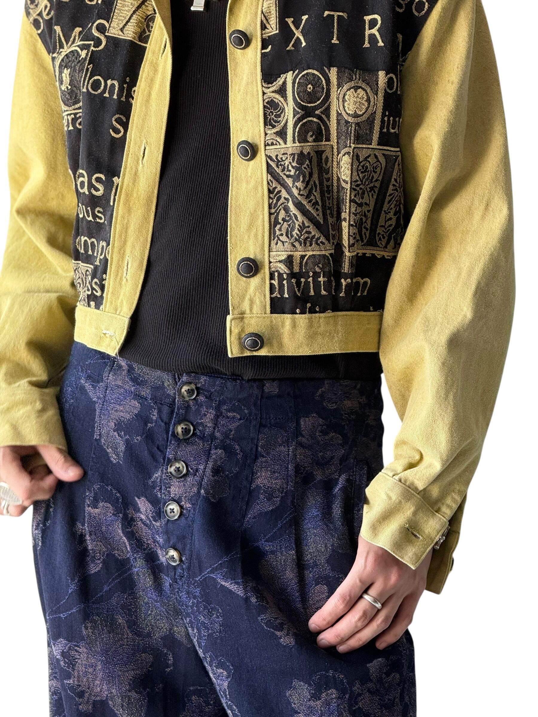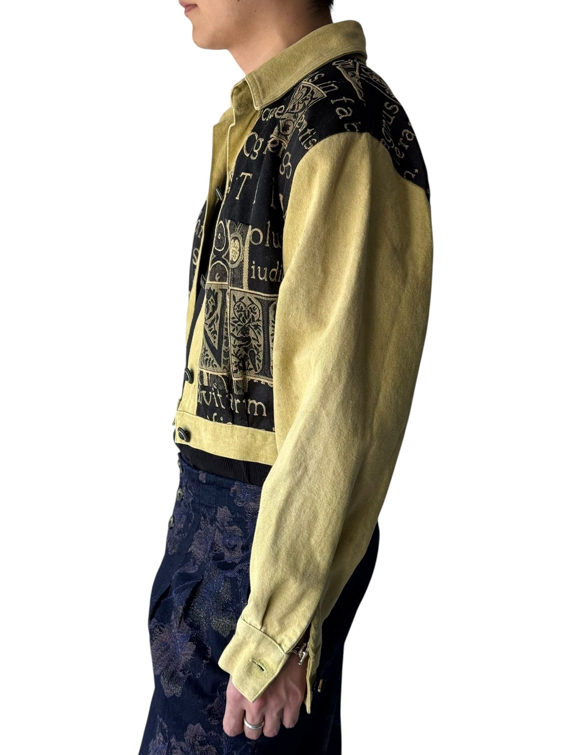 【LORRAINE WARDY】Woven graphic switching pattern short trucker jacket