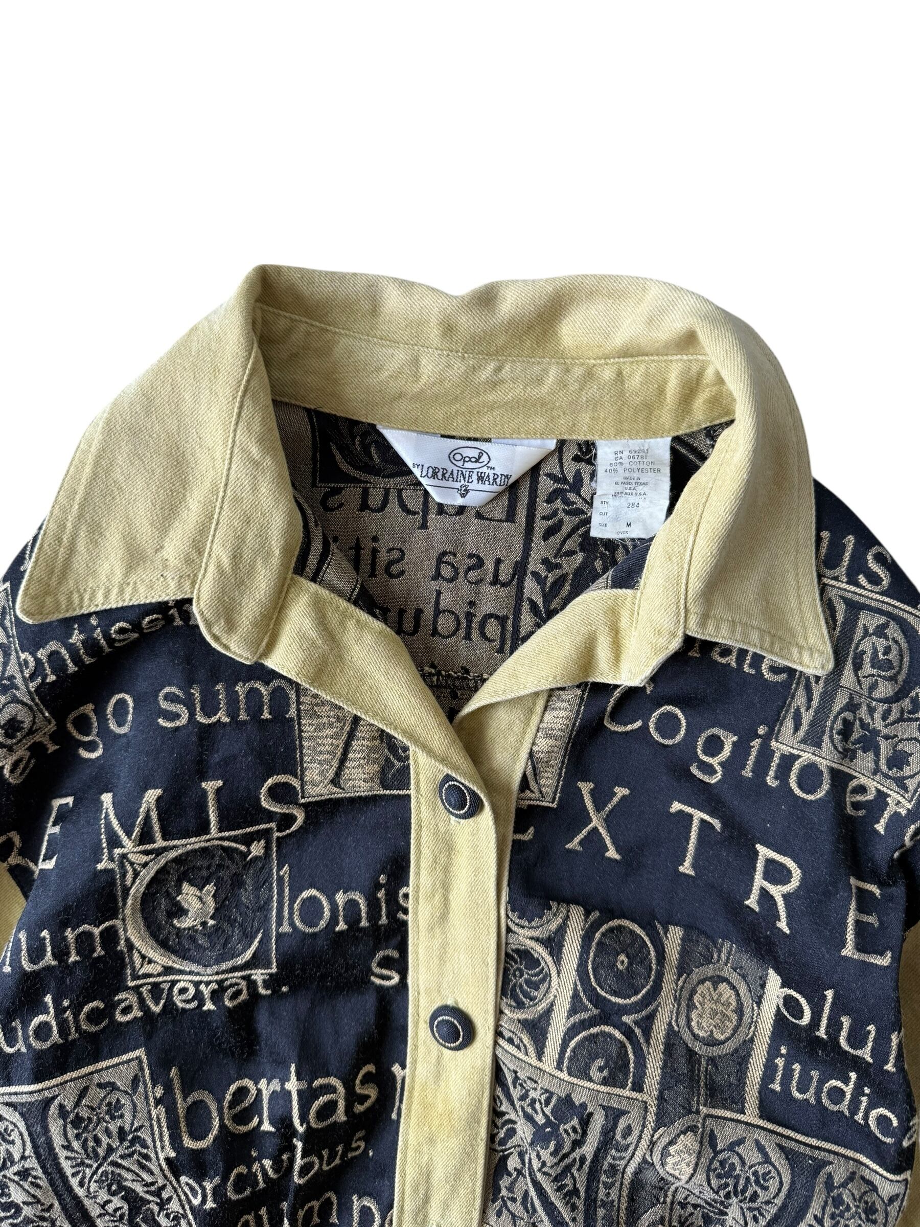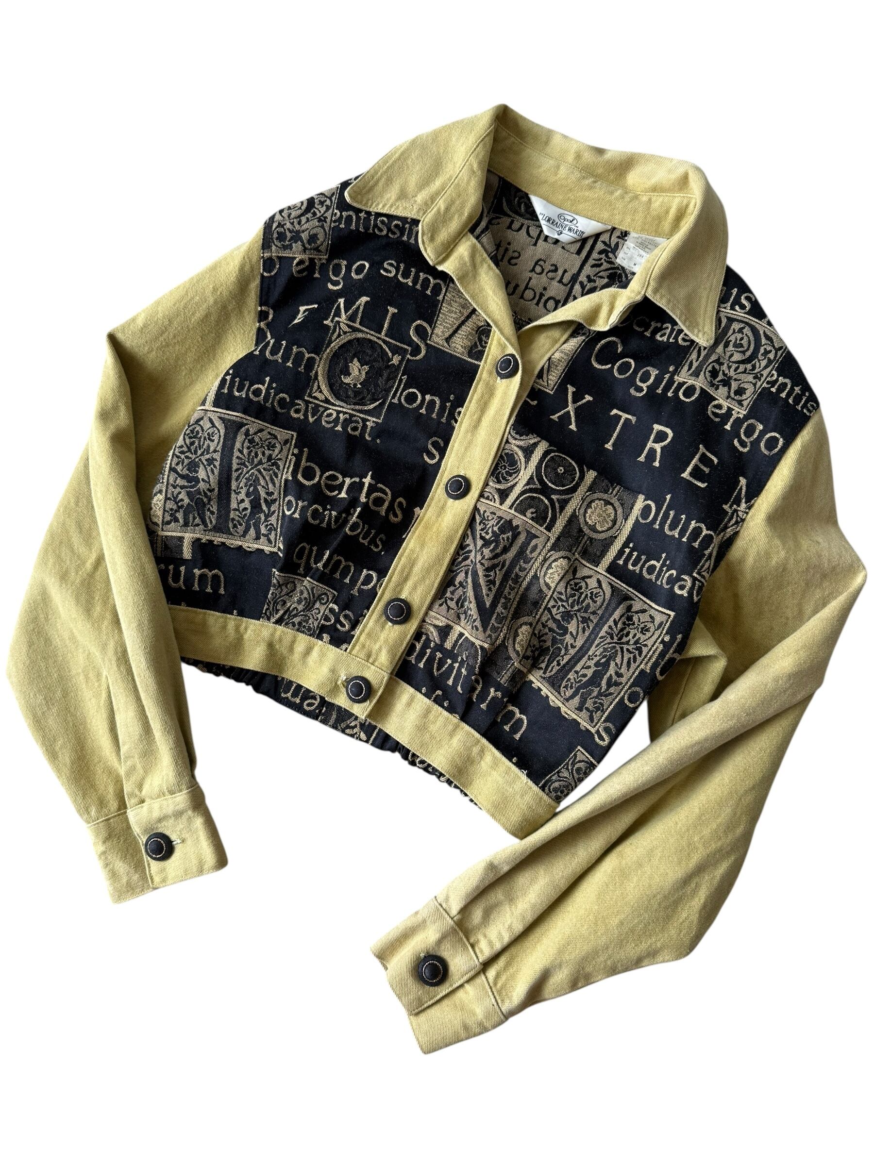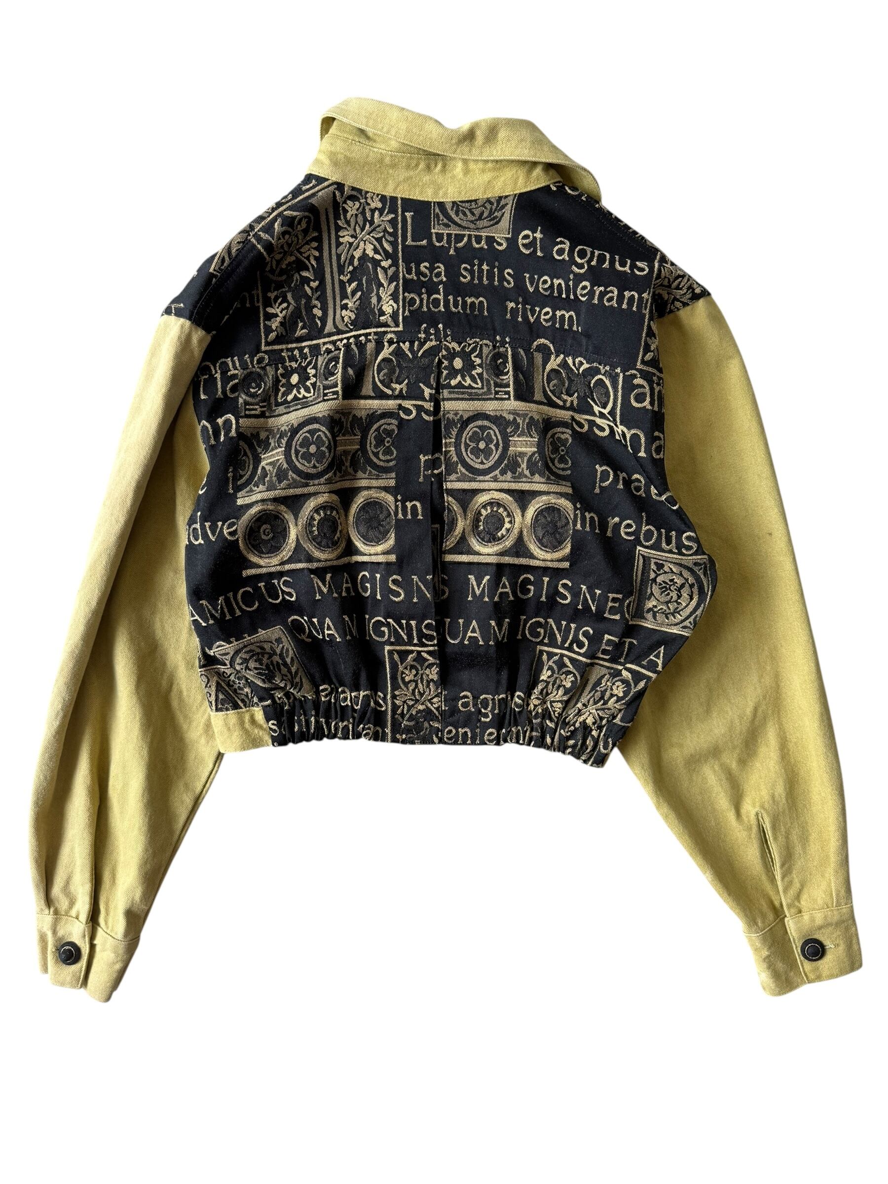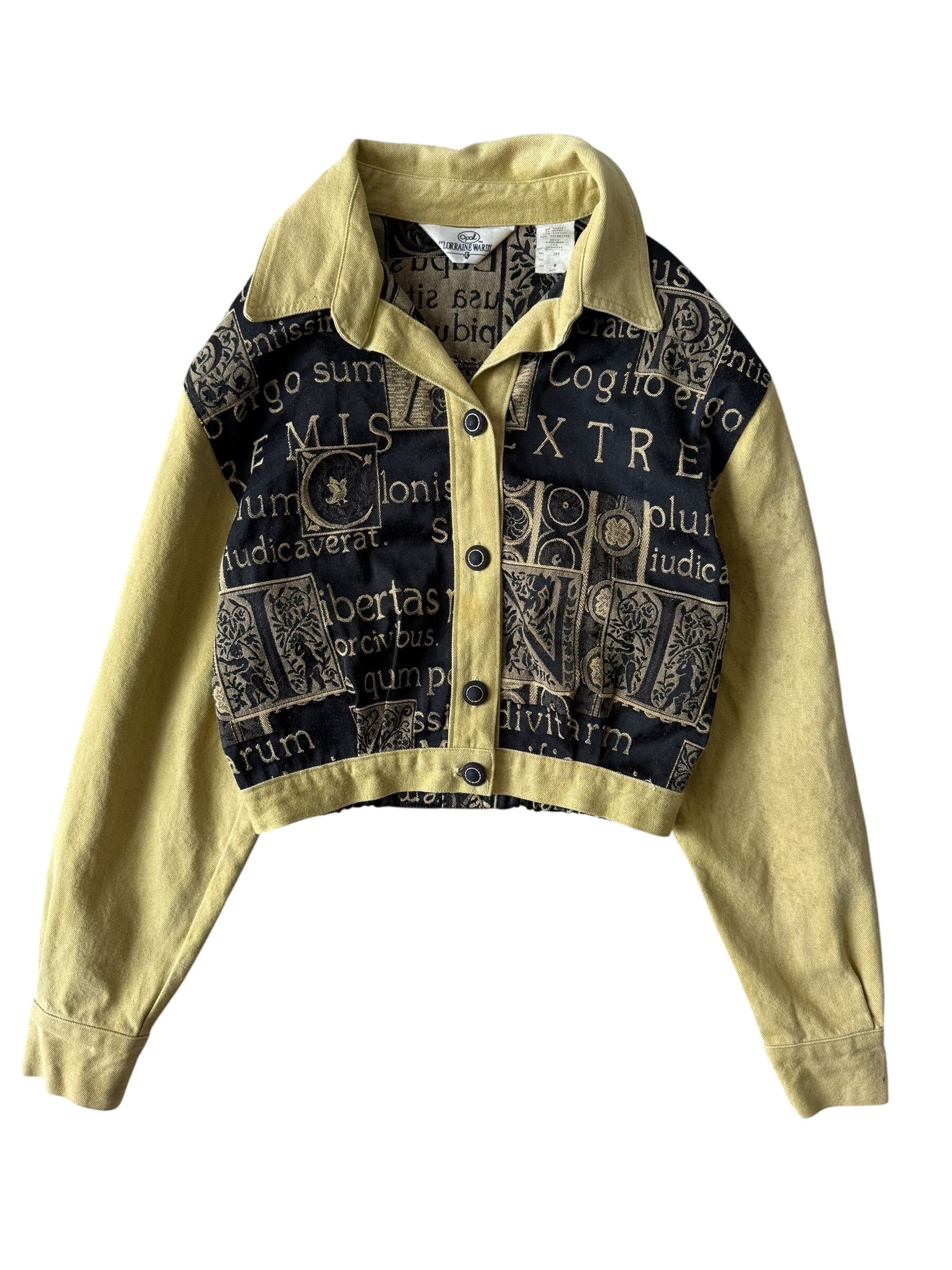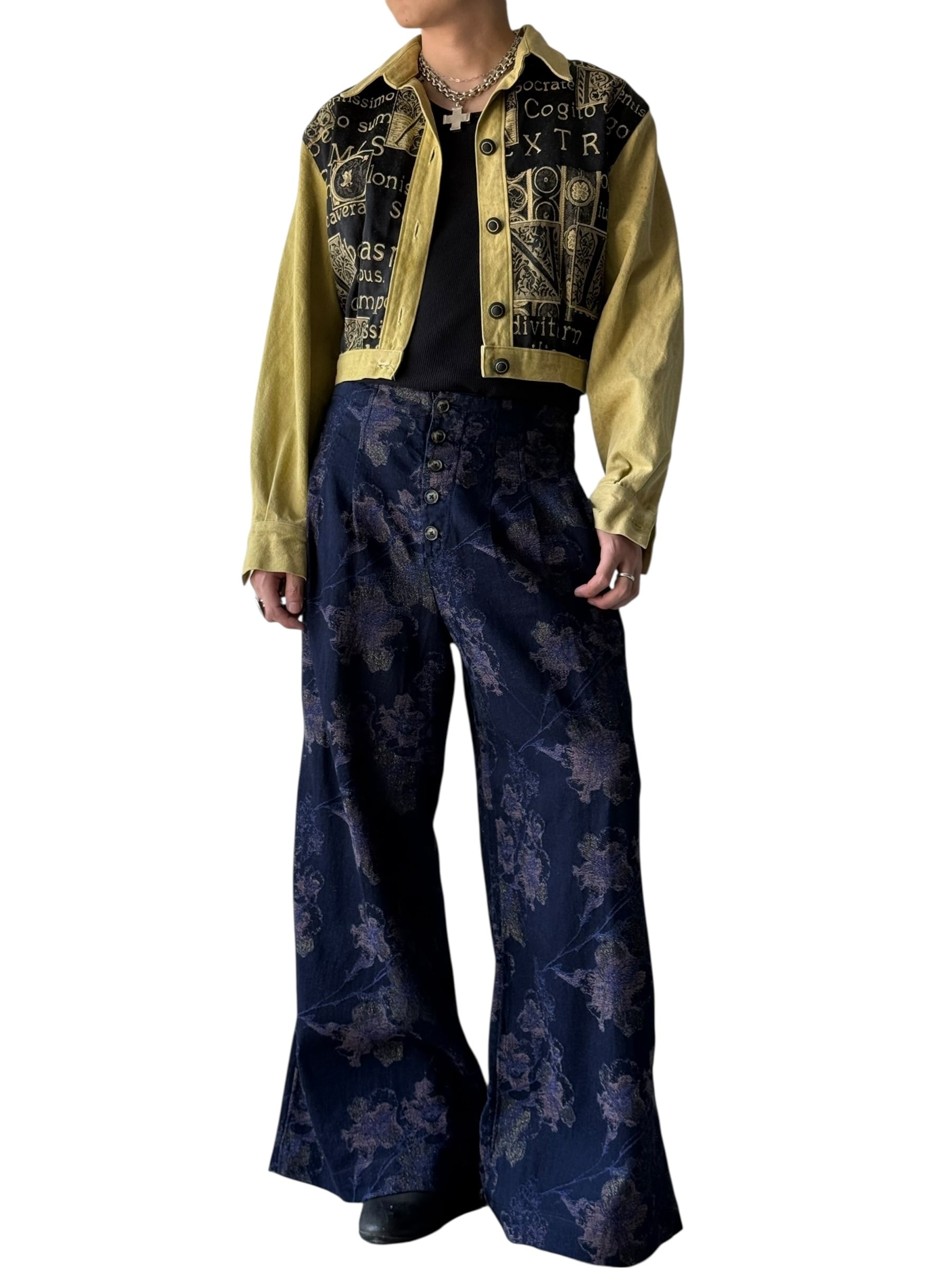 【LORRAINE WARDY】Woven graphic switching pattern short trucker jacket