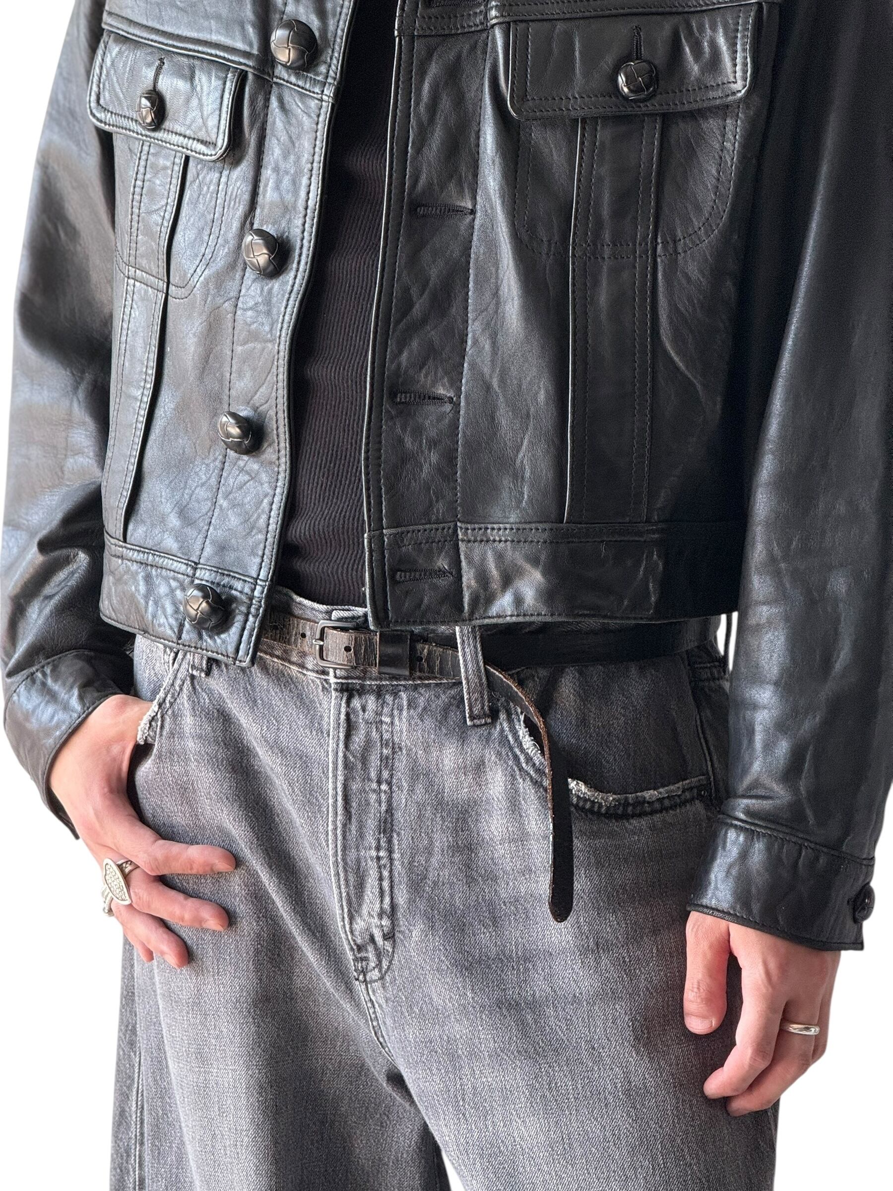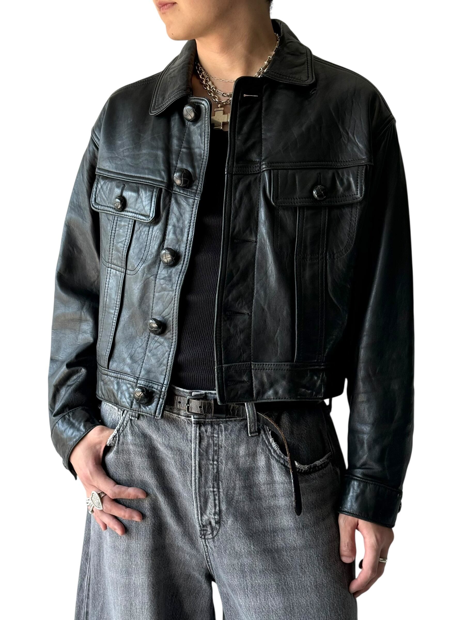 柔らかいモチモチの本革でここまでサイズ感よく着やすいトラッカーは古着では中々見つからないかと、、