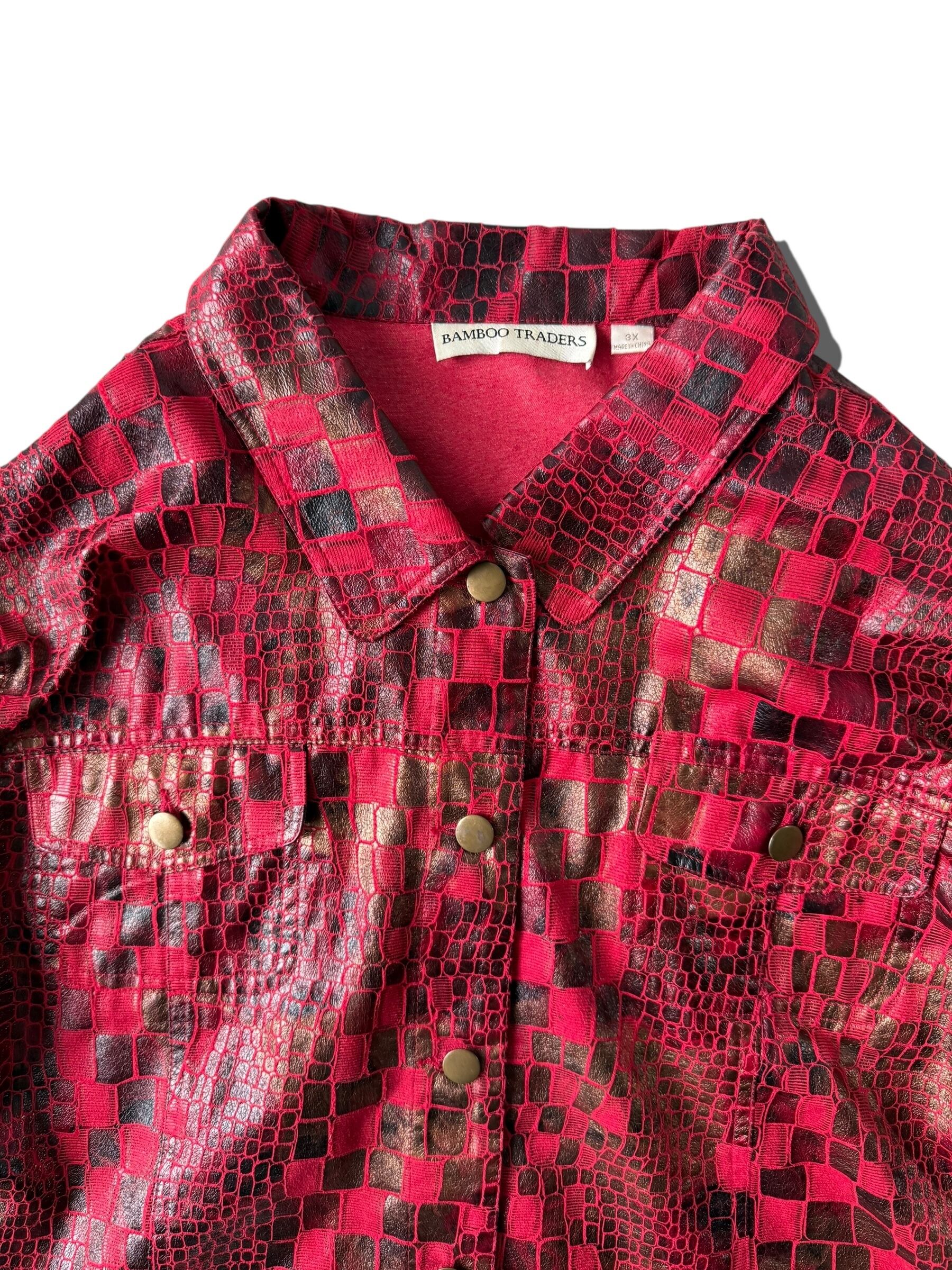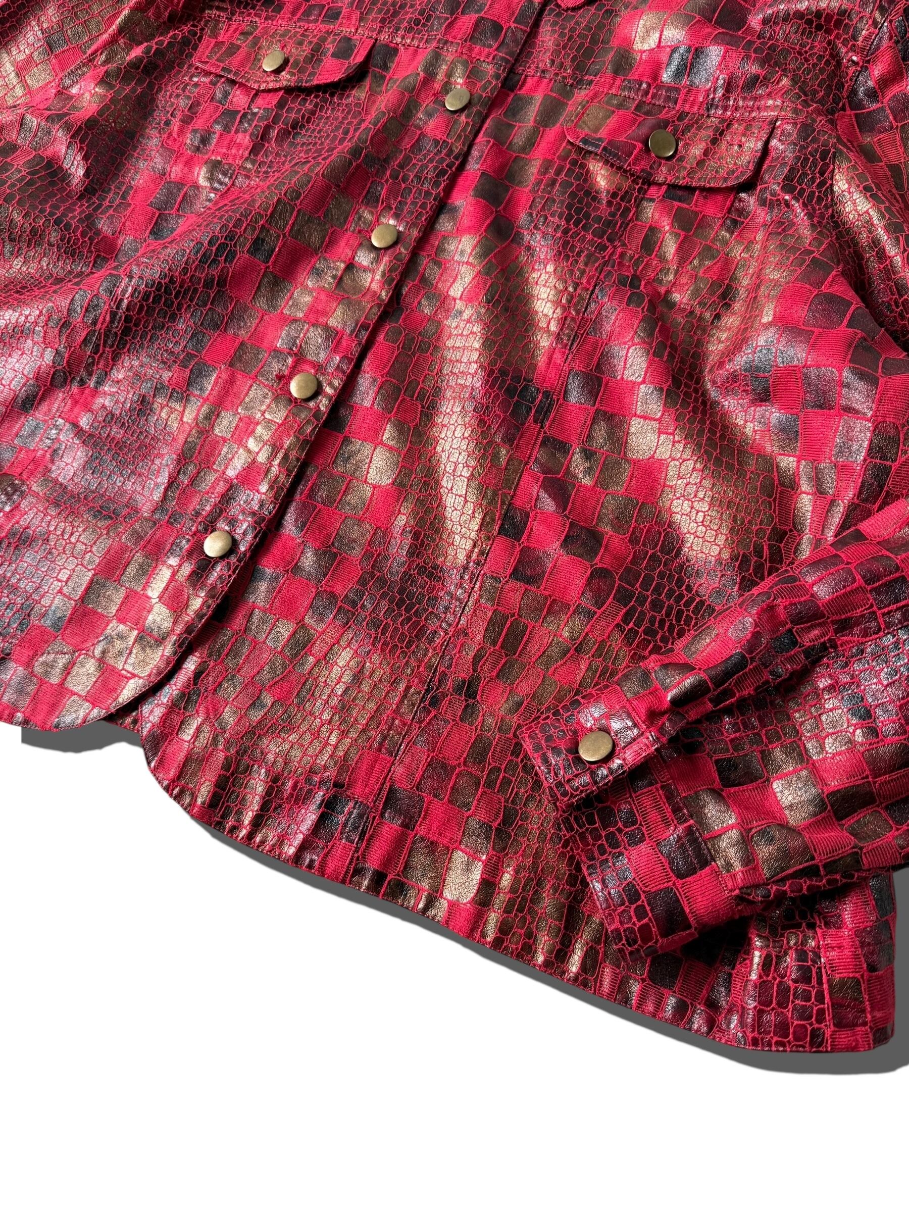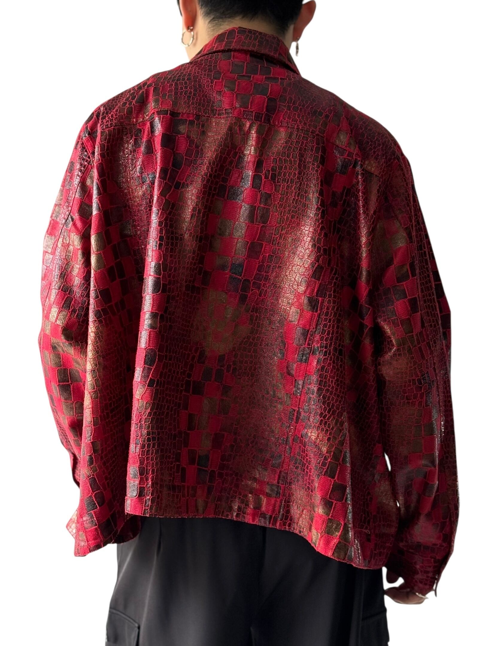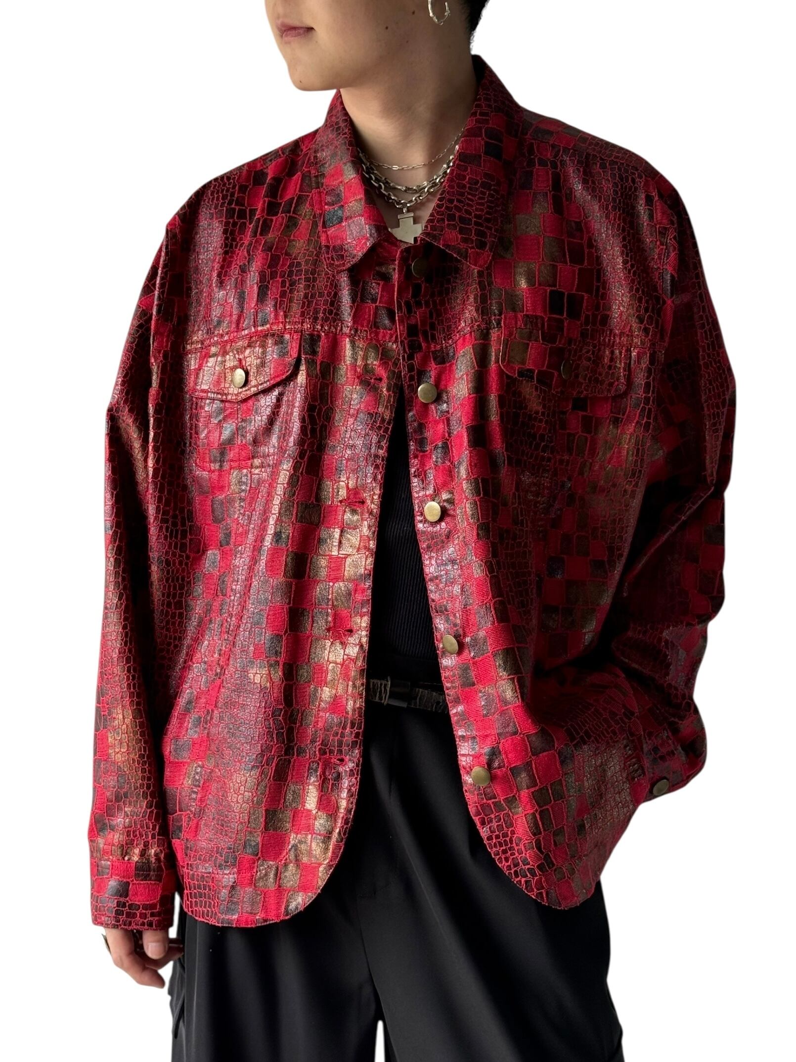 【BAMBOO】crocodile pattern coated fabric trucker jacket