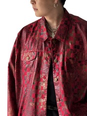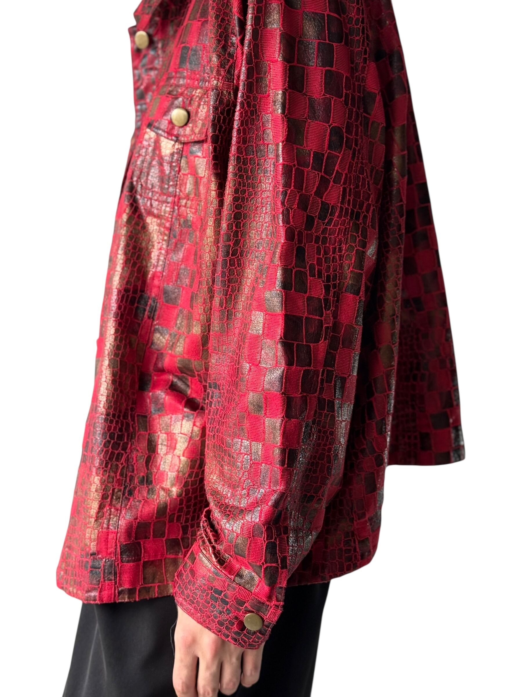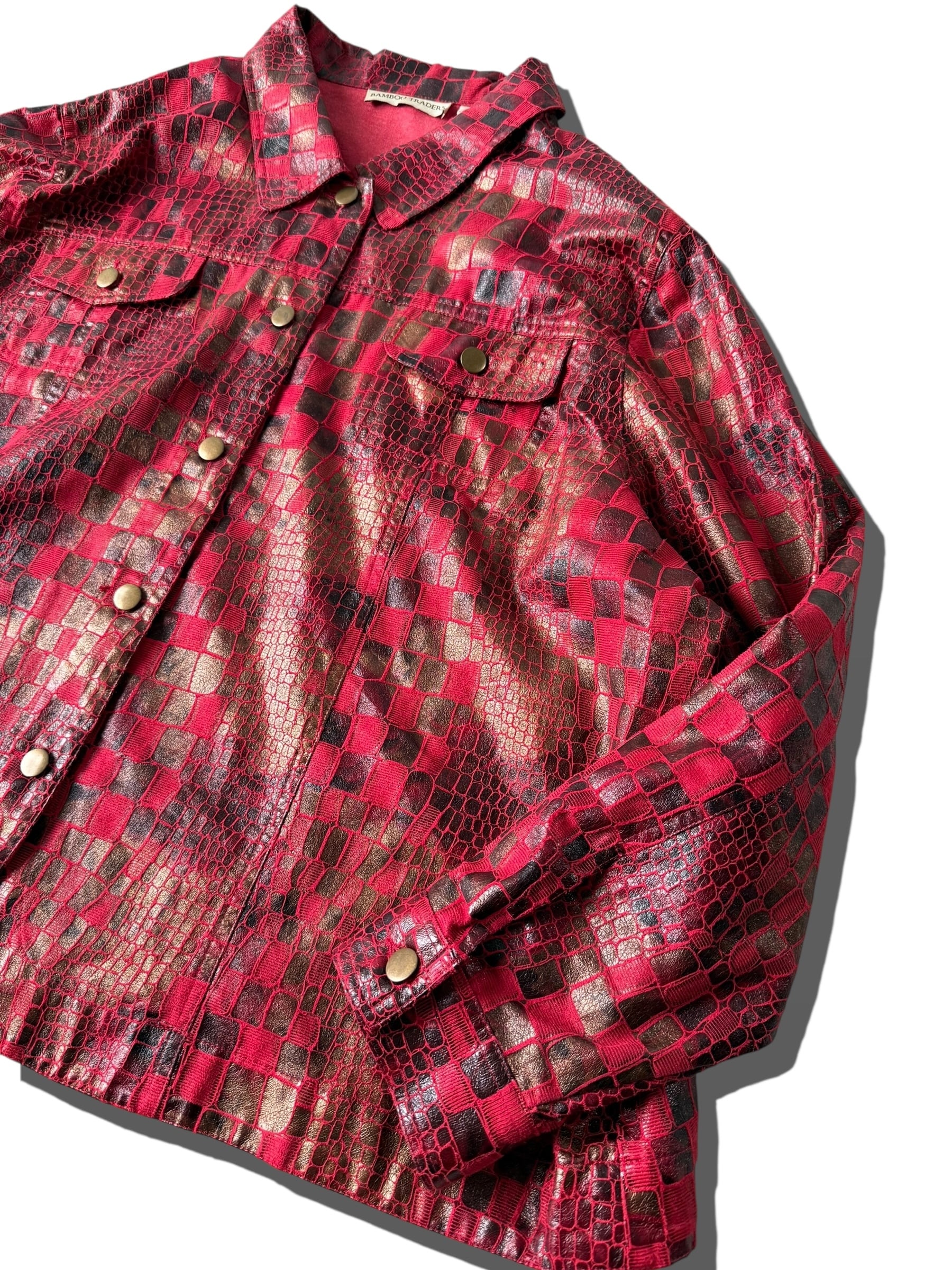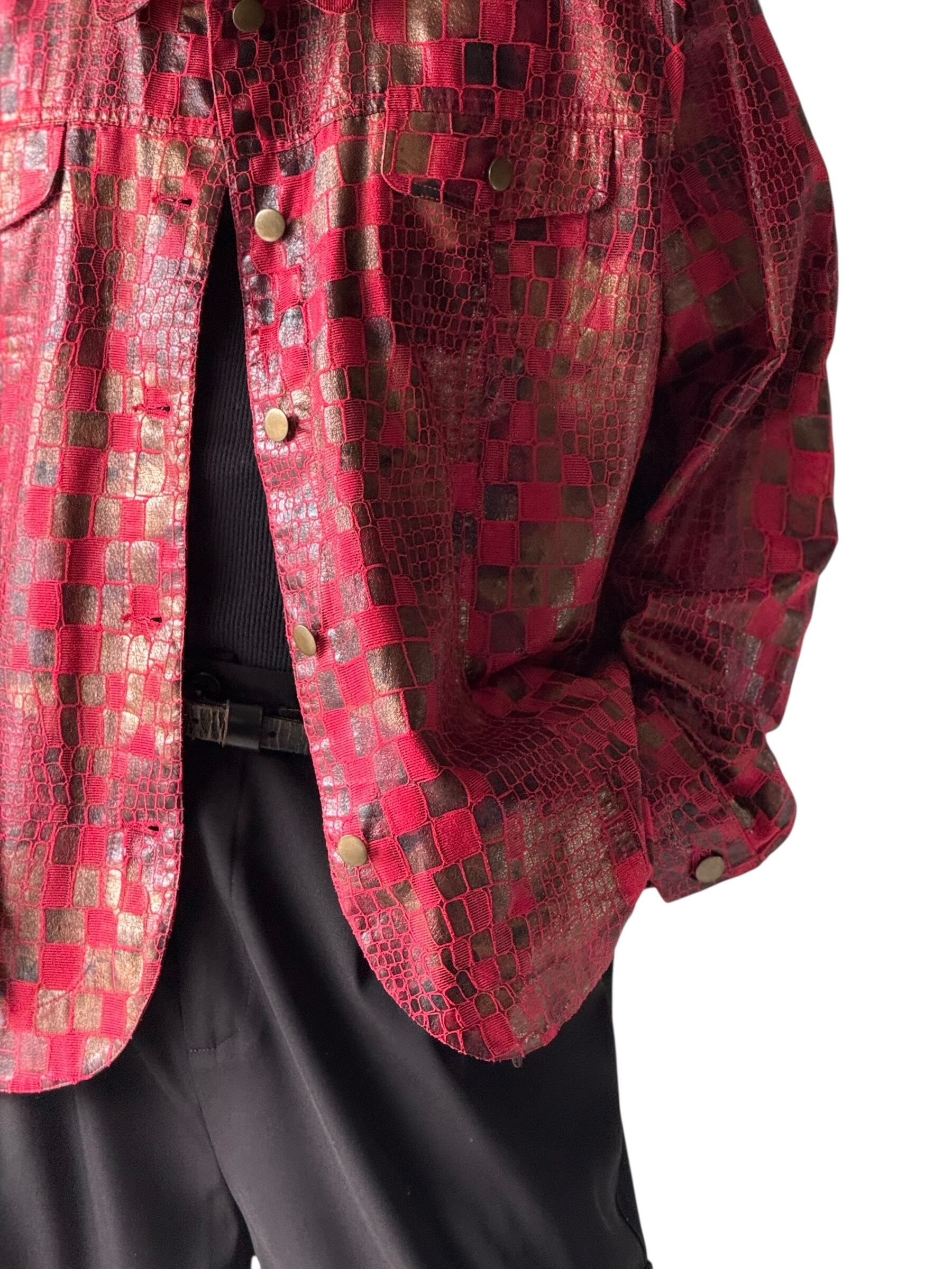 【BAMBOO】crocodile pattern coated fabric trucker jacket