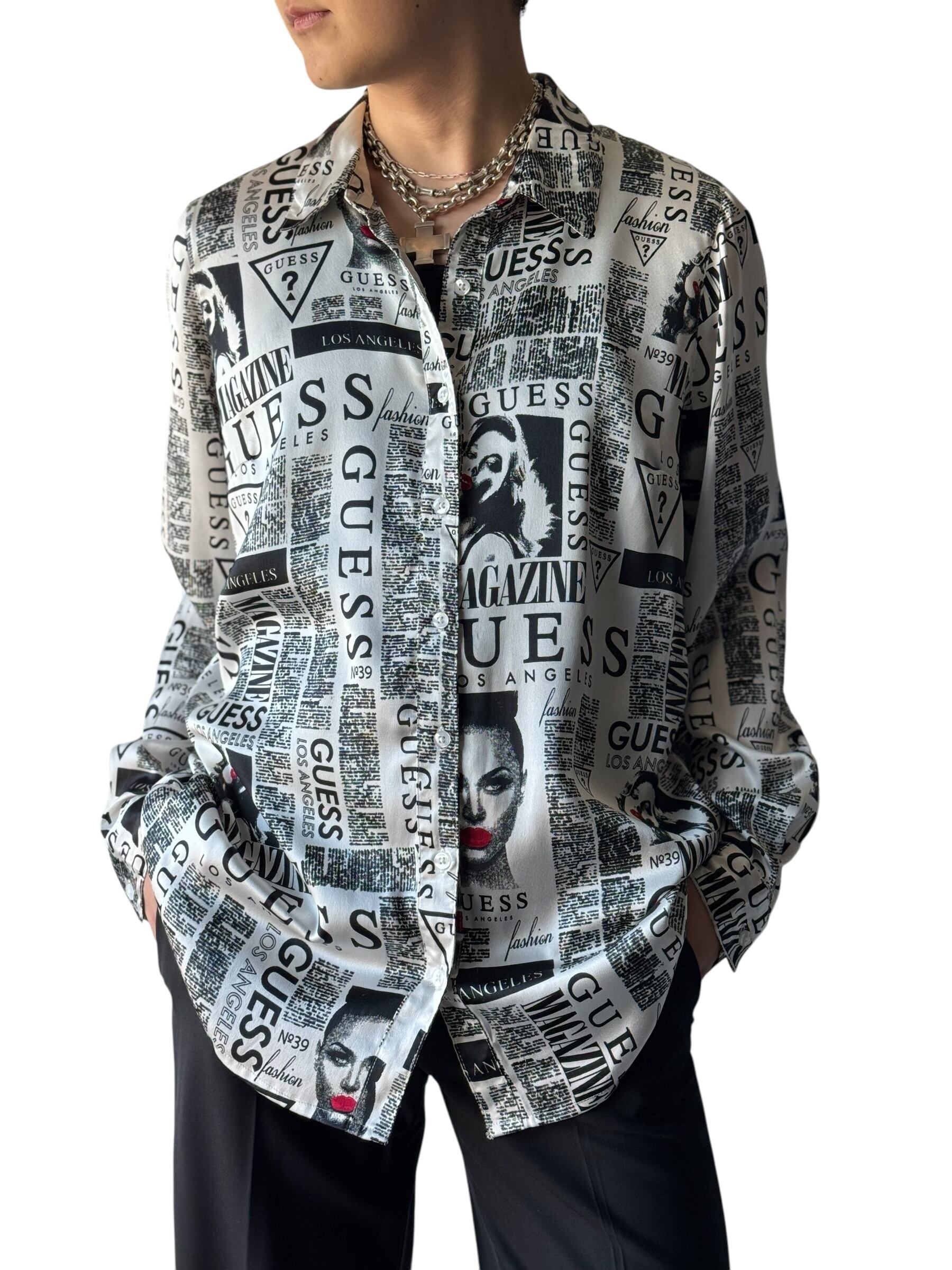 ♾GUESS♾ newspaper printed design L/S shirt sizeL