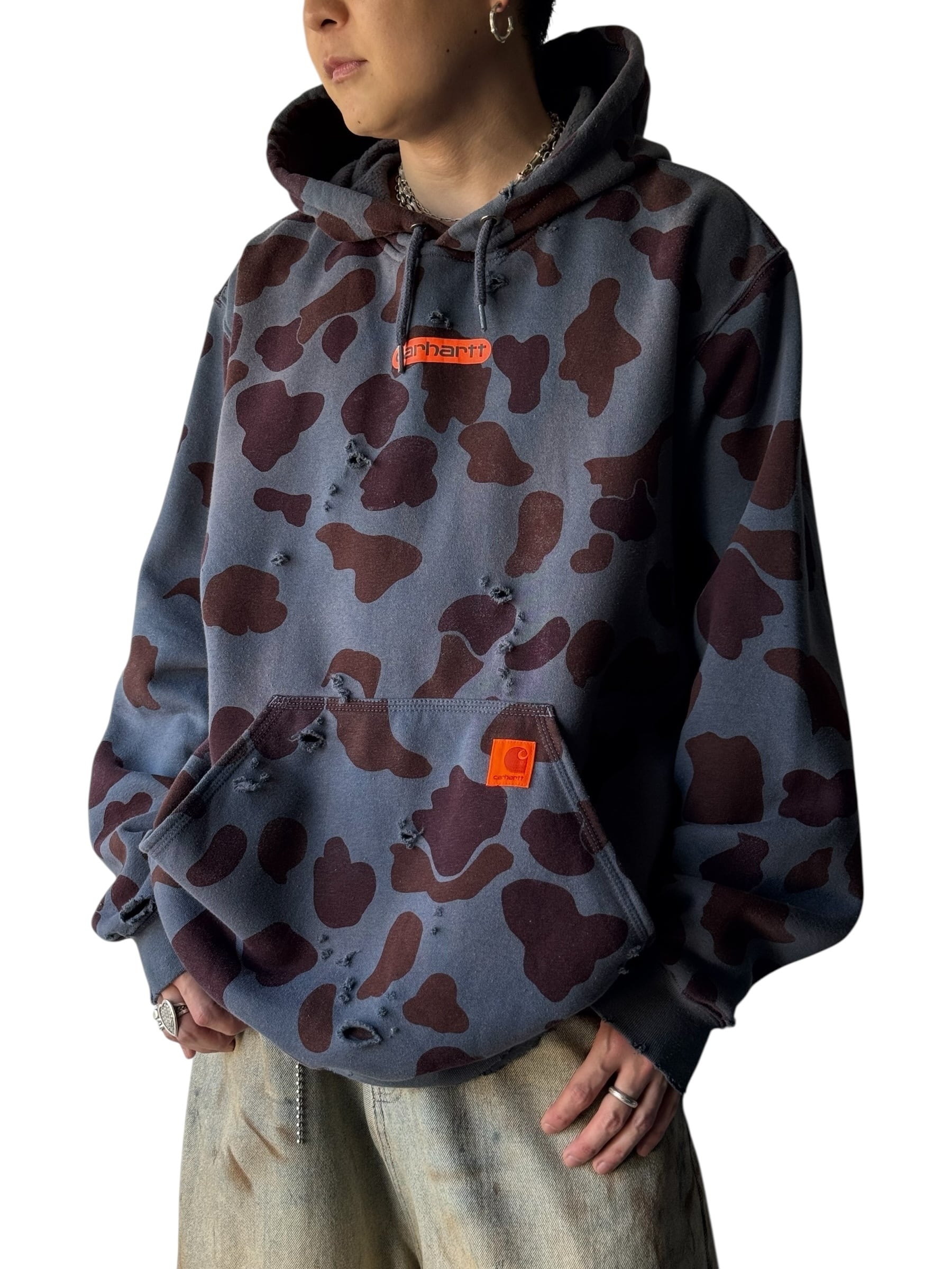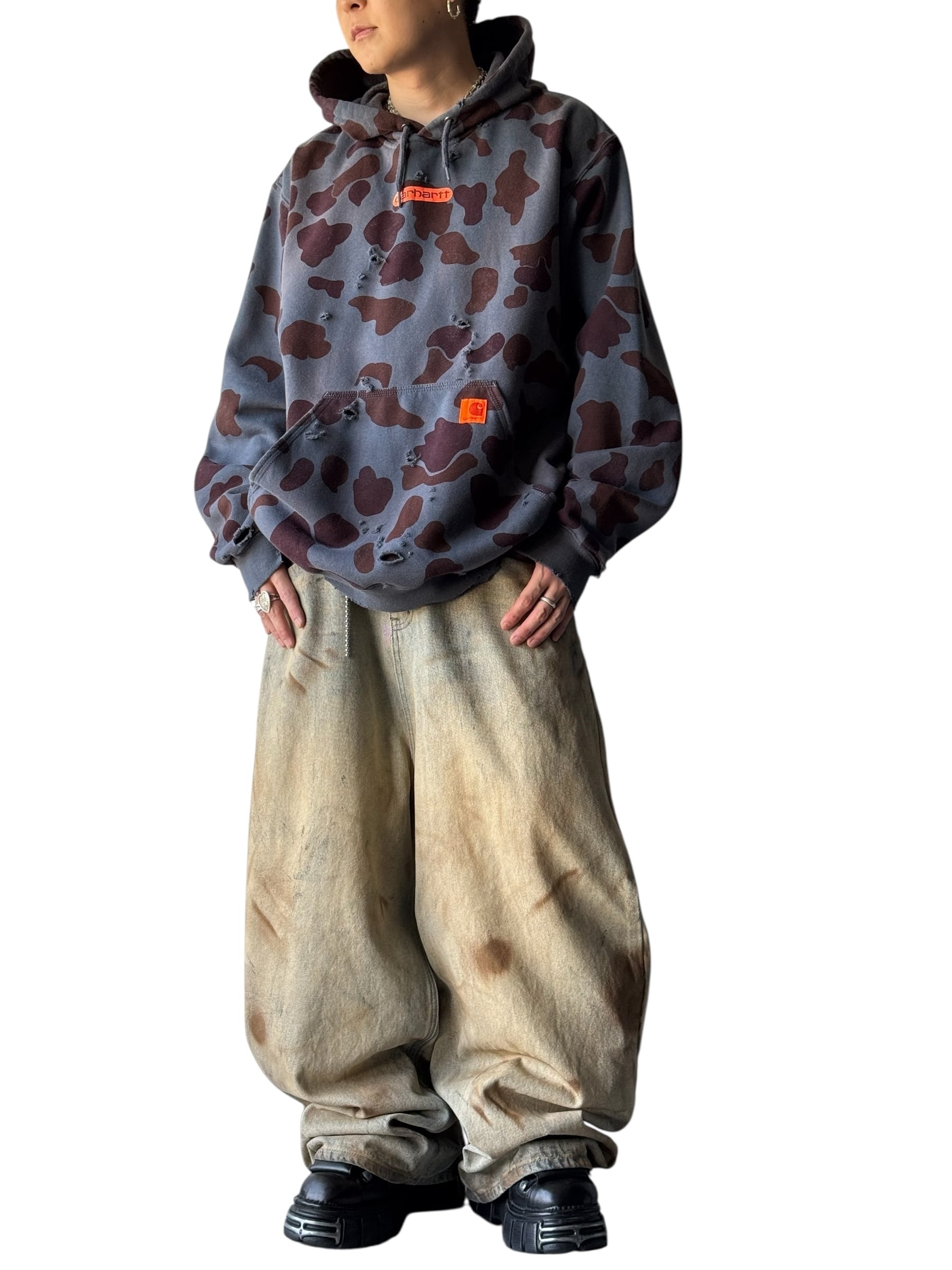 ♾️carhartt♾️ camouflage pattern crushed design over sized hoodie