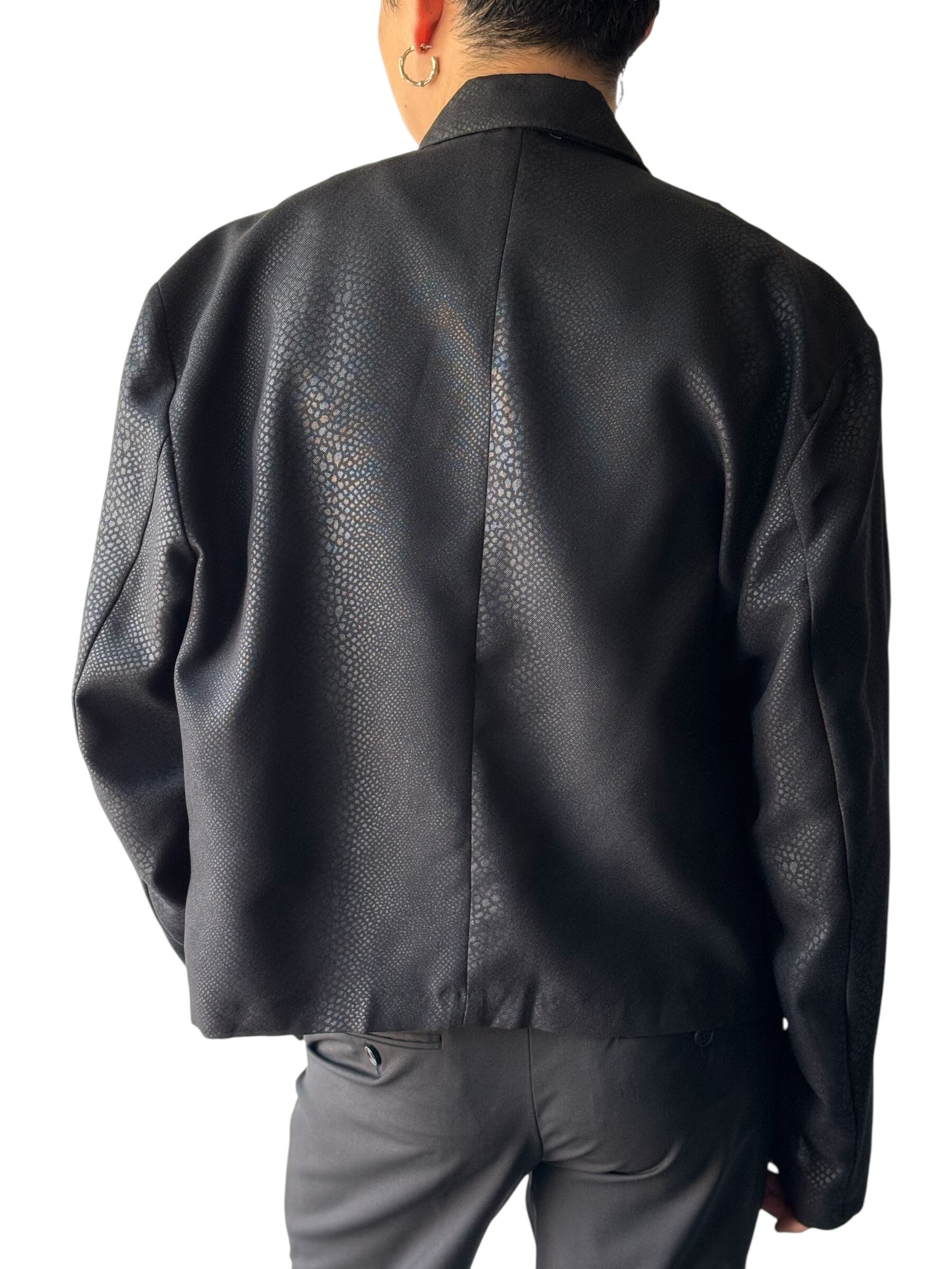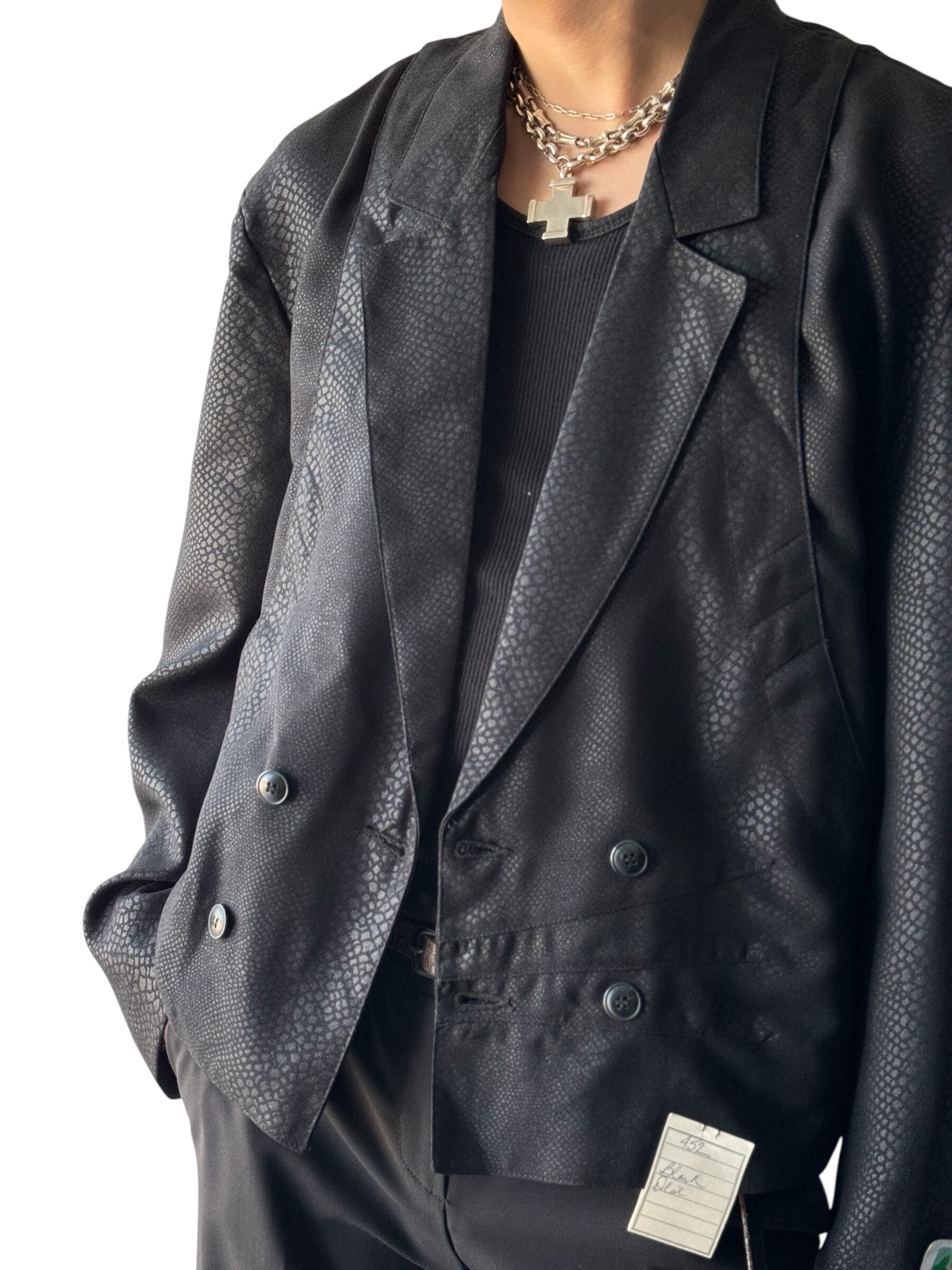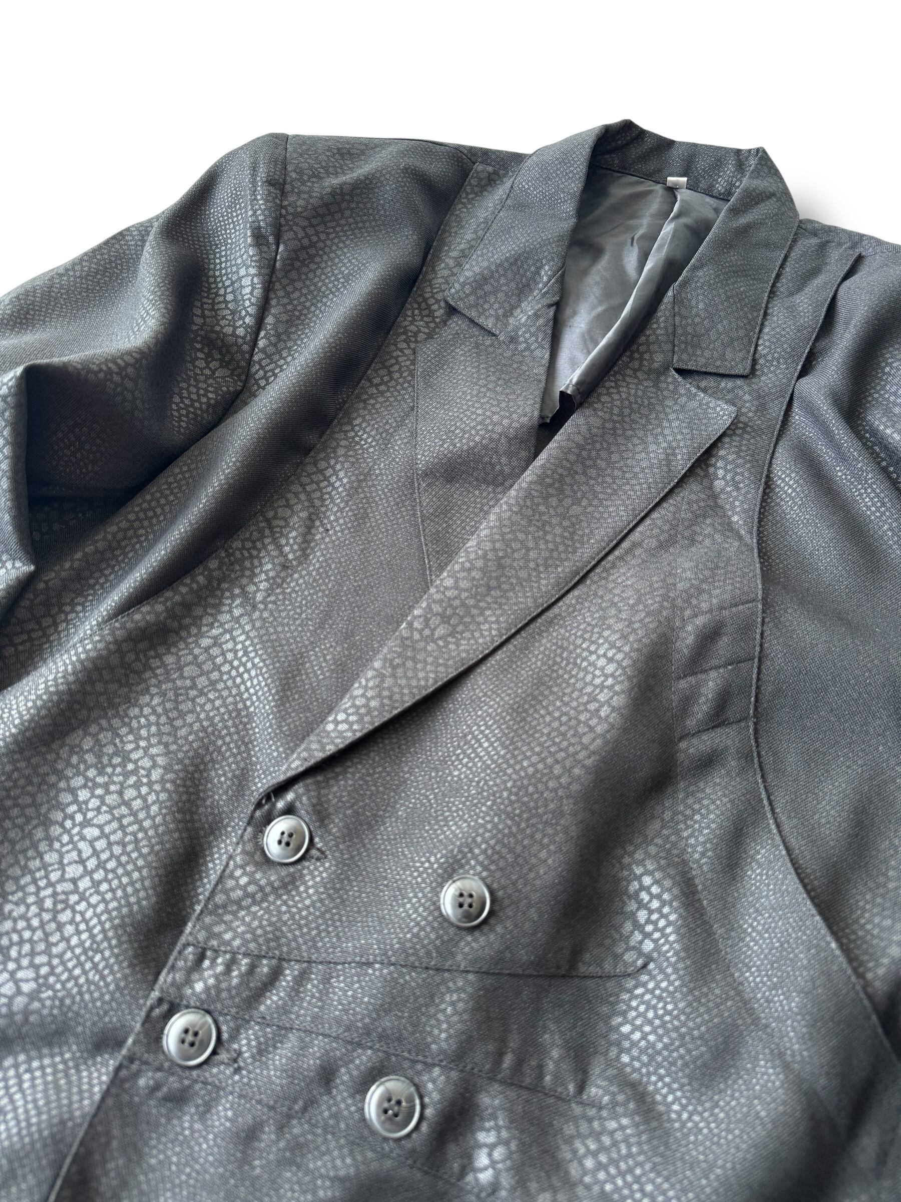 鱗の細かなパイソン柄にユーロvtgの様なフォルムと佇まいが特徴的なデザインテーラードジャケット。