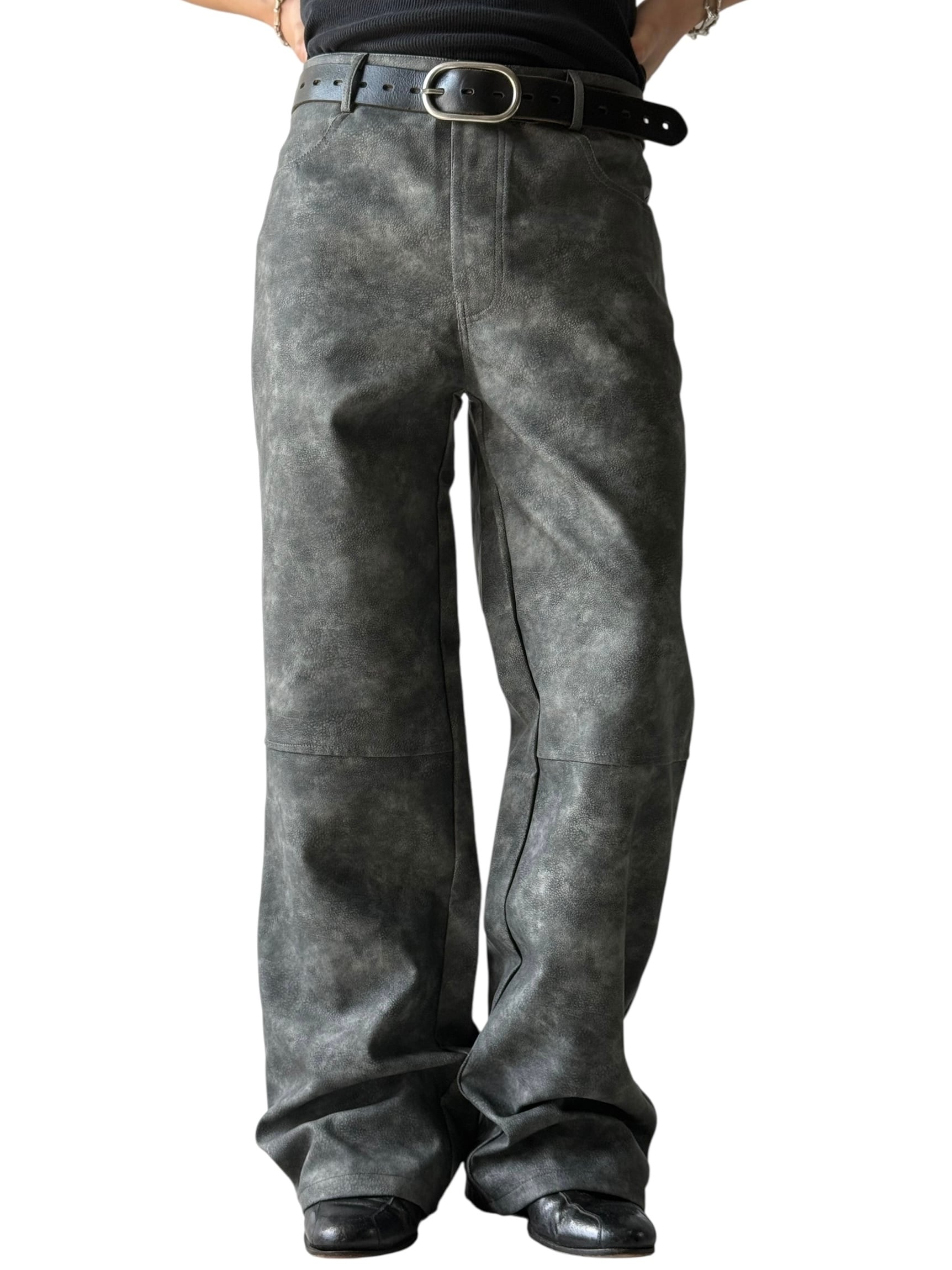 【Design used】PU leather wide straight pants