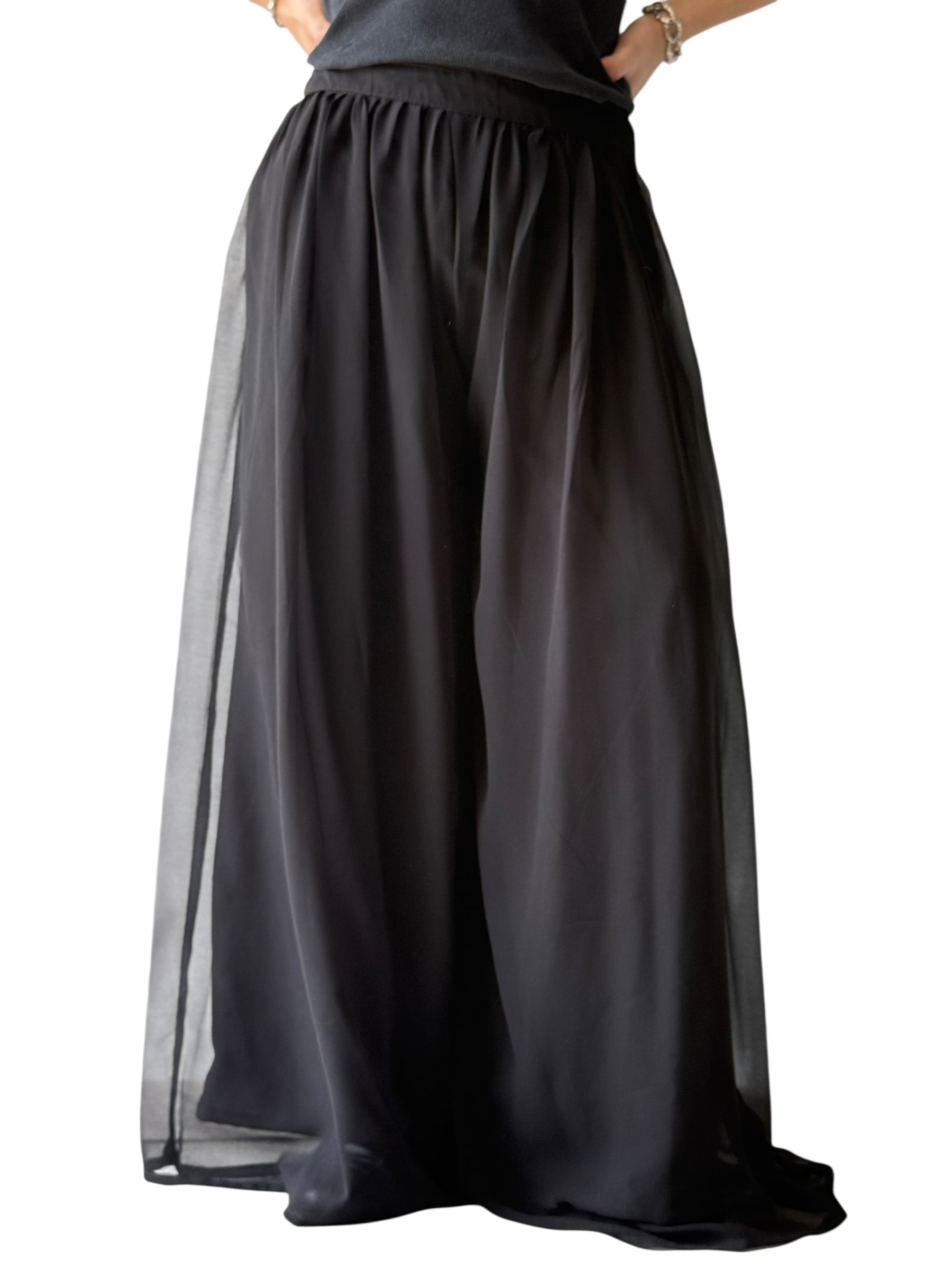 生地が重なり、二層になったレイヤードだからでるシアー感とドレープ感含めては唯一無二のお洒落シルエットです!