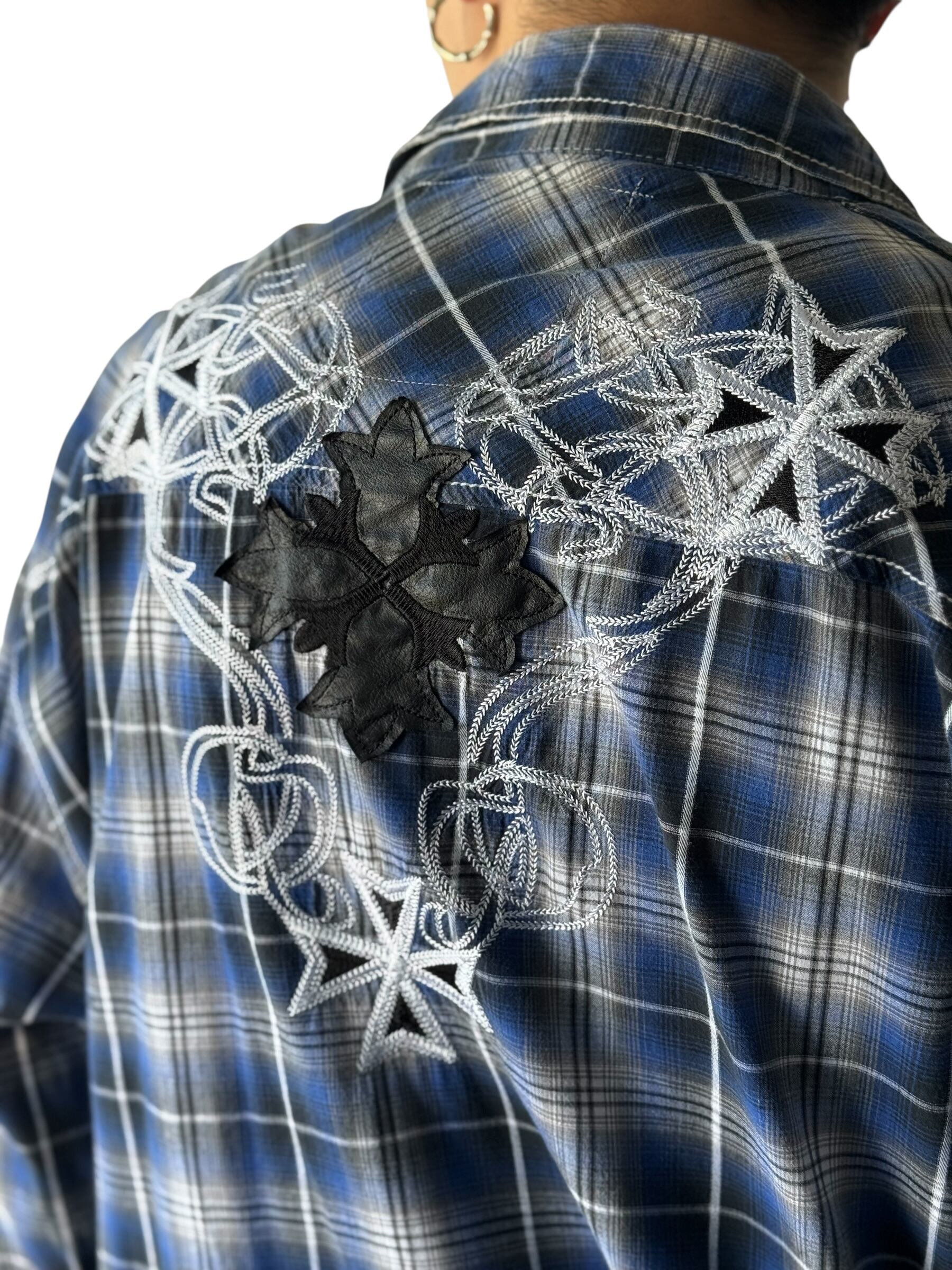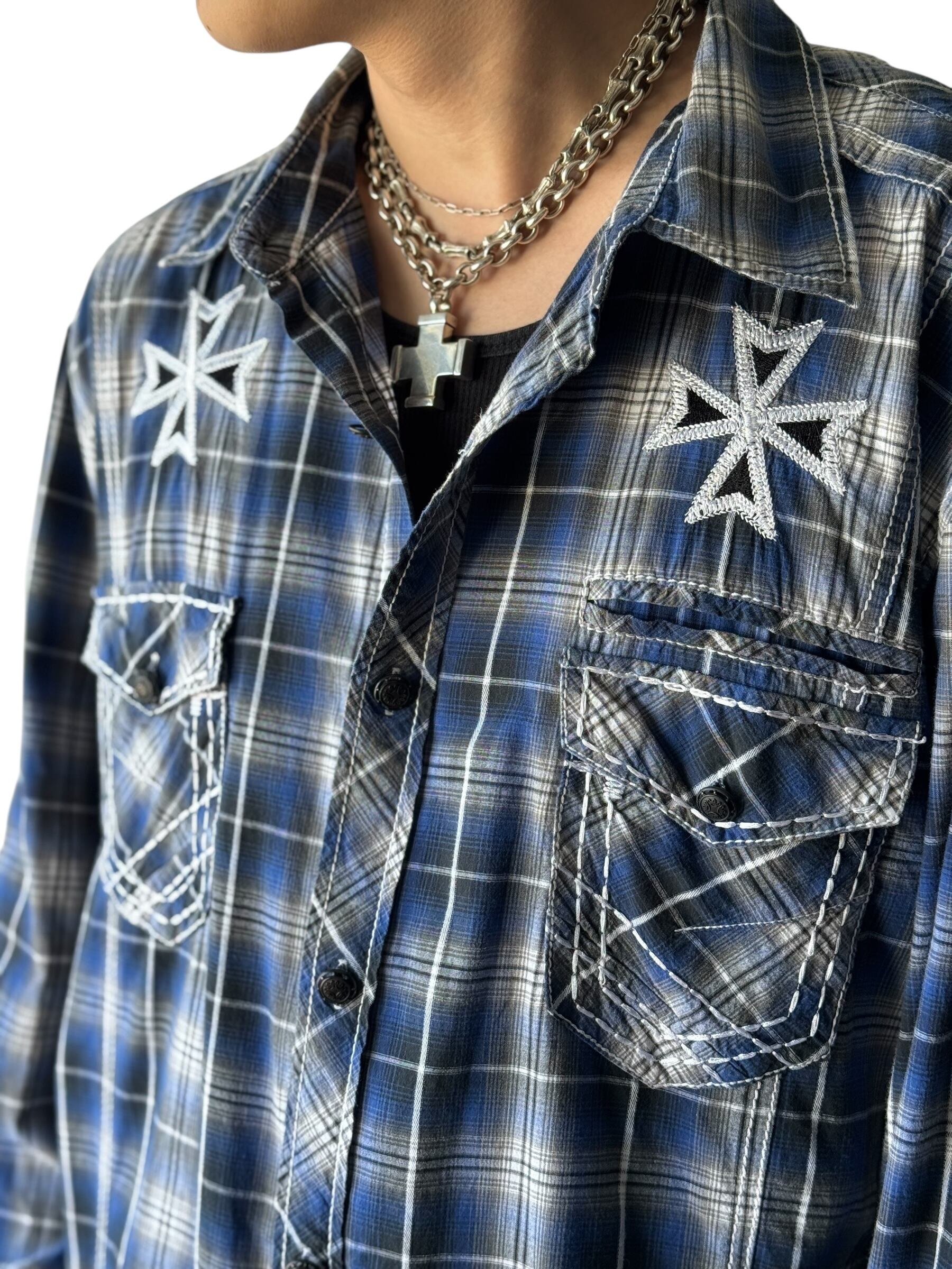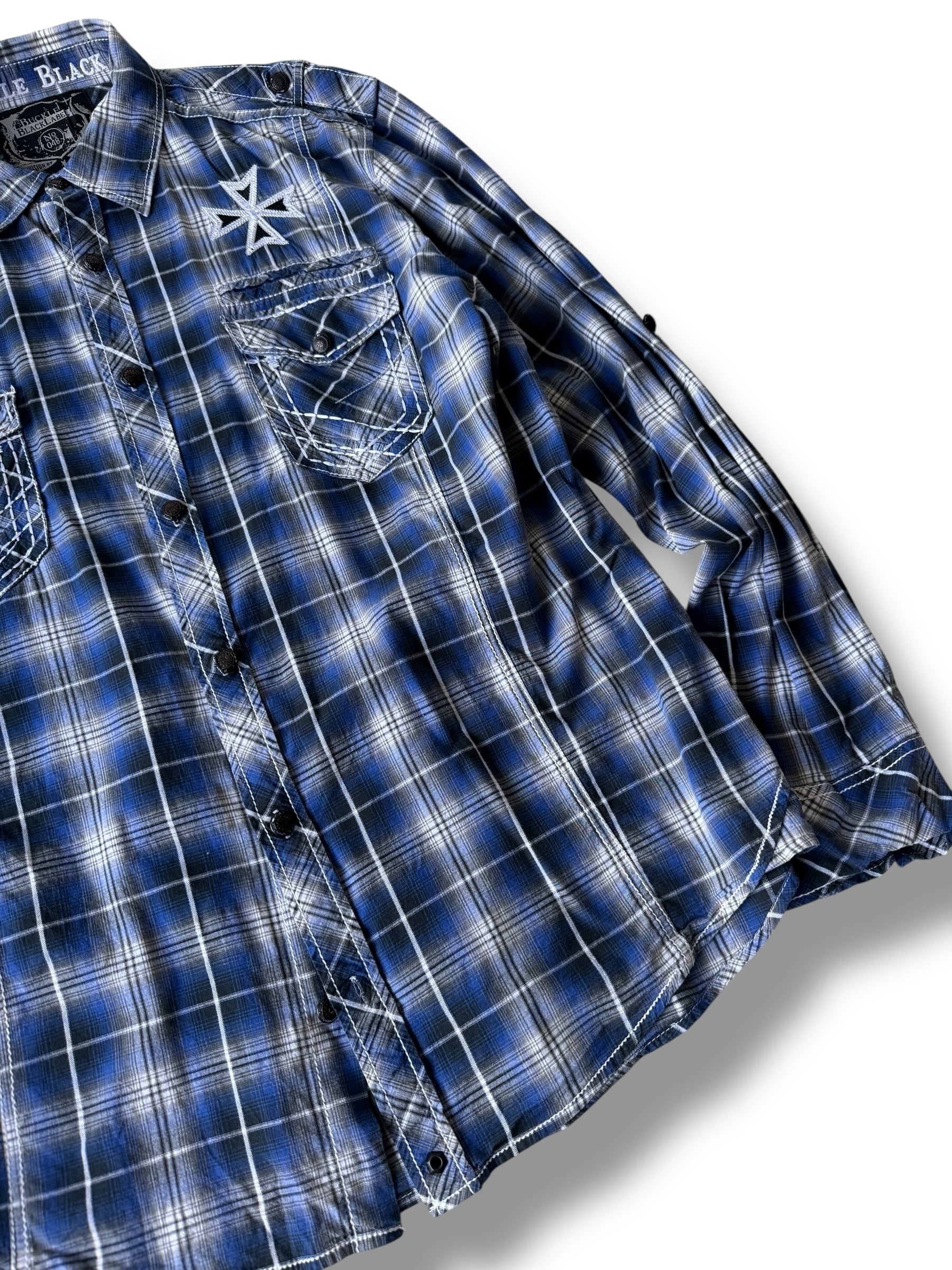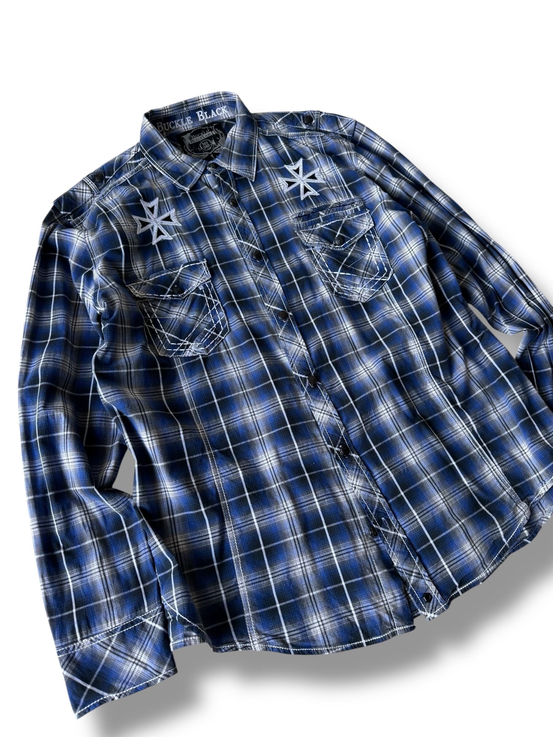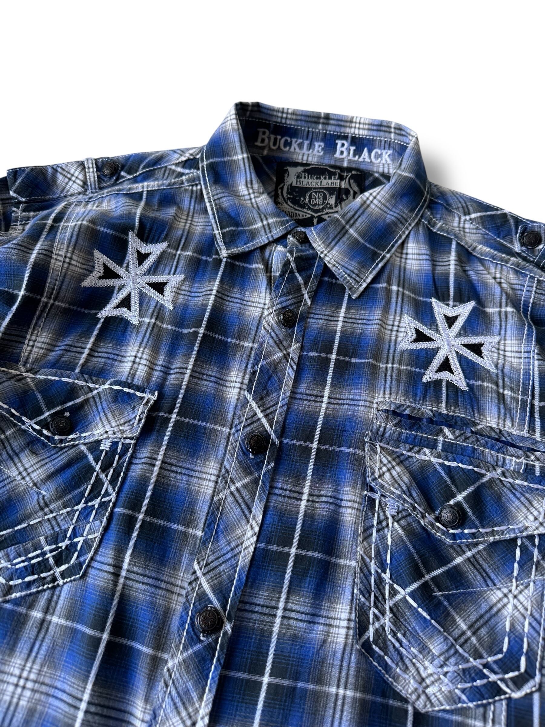 ♾ BUCKLE BLACK LABEL ♾ Cross motif embroidered check shirt size XL