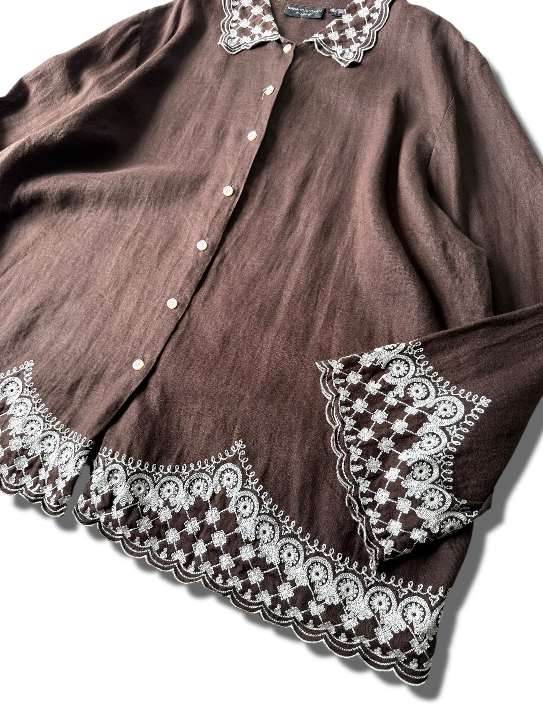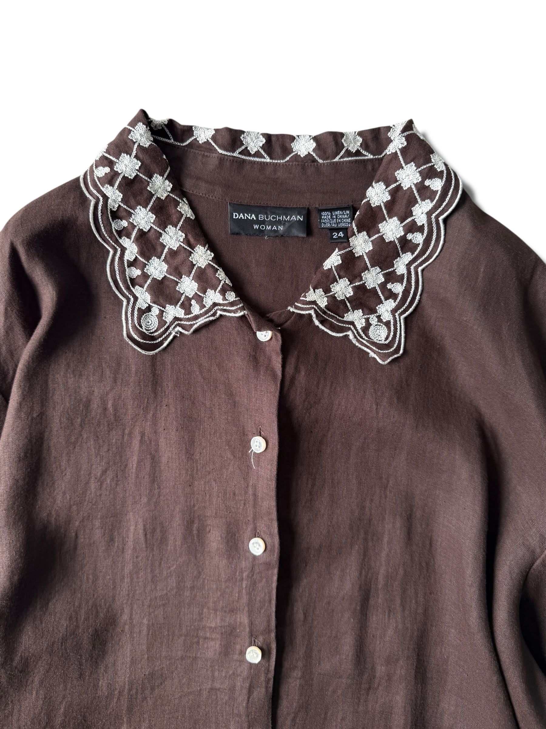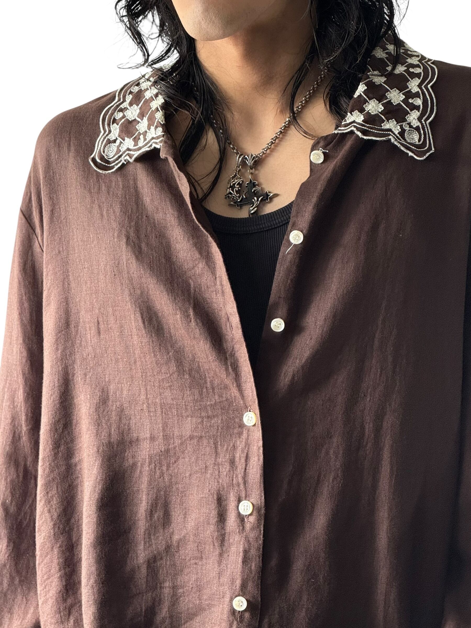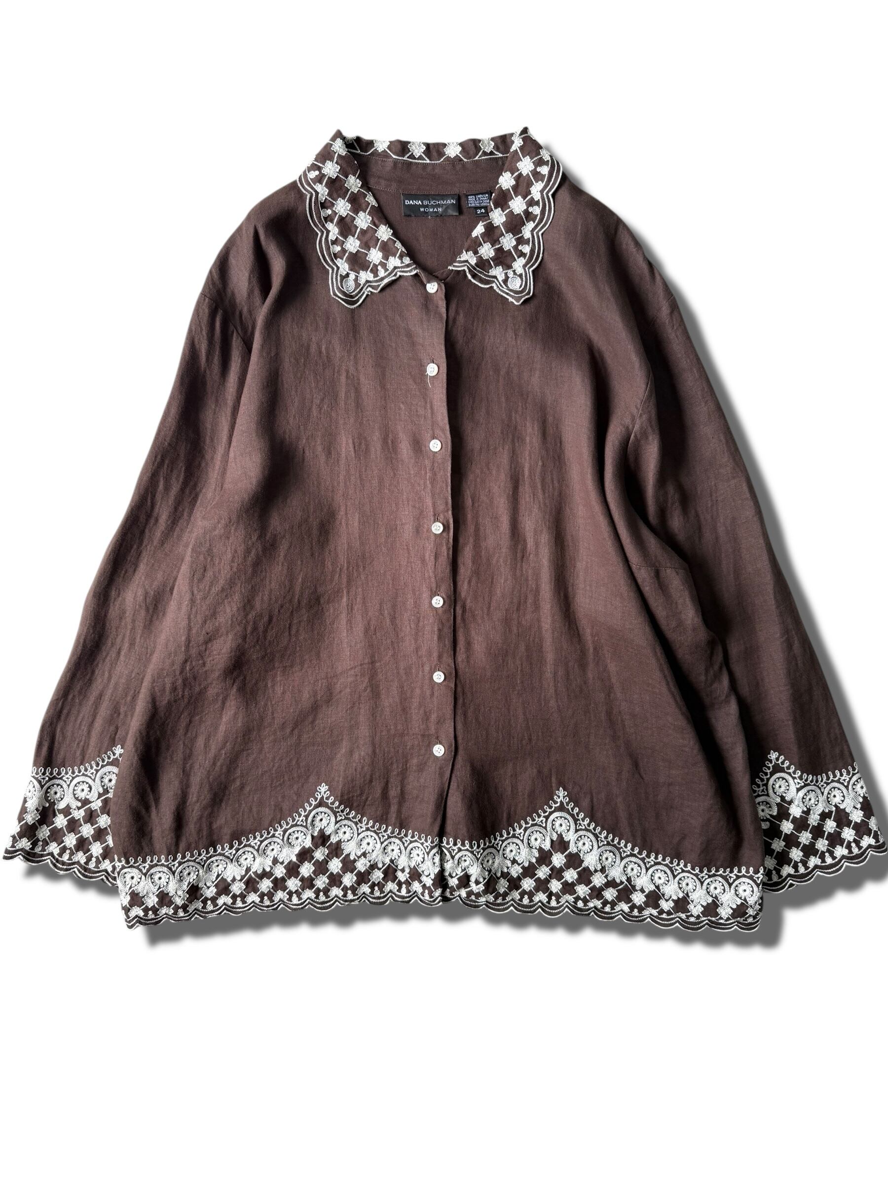 【DANA BUCHMAN】 Chain stitch embroidered linen wide detail shirt