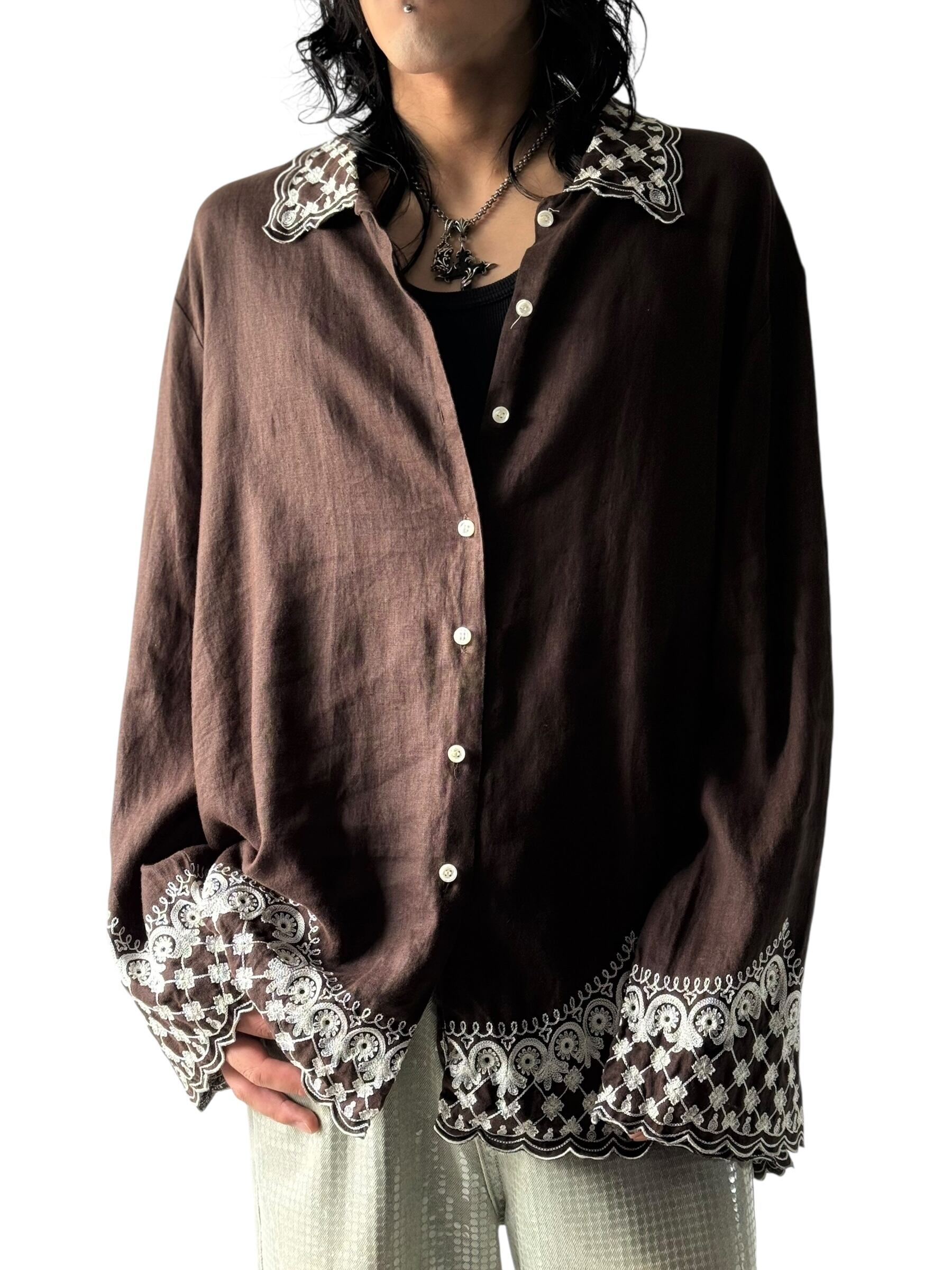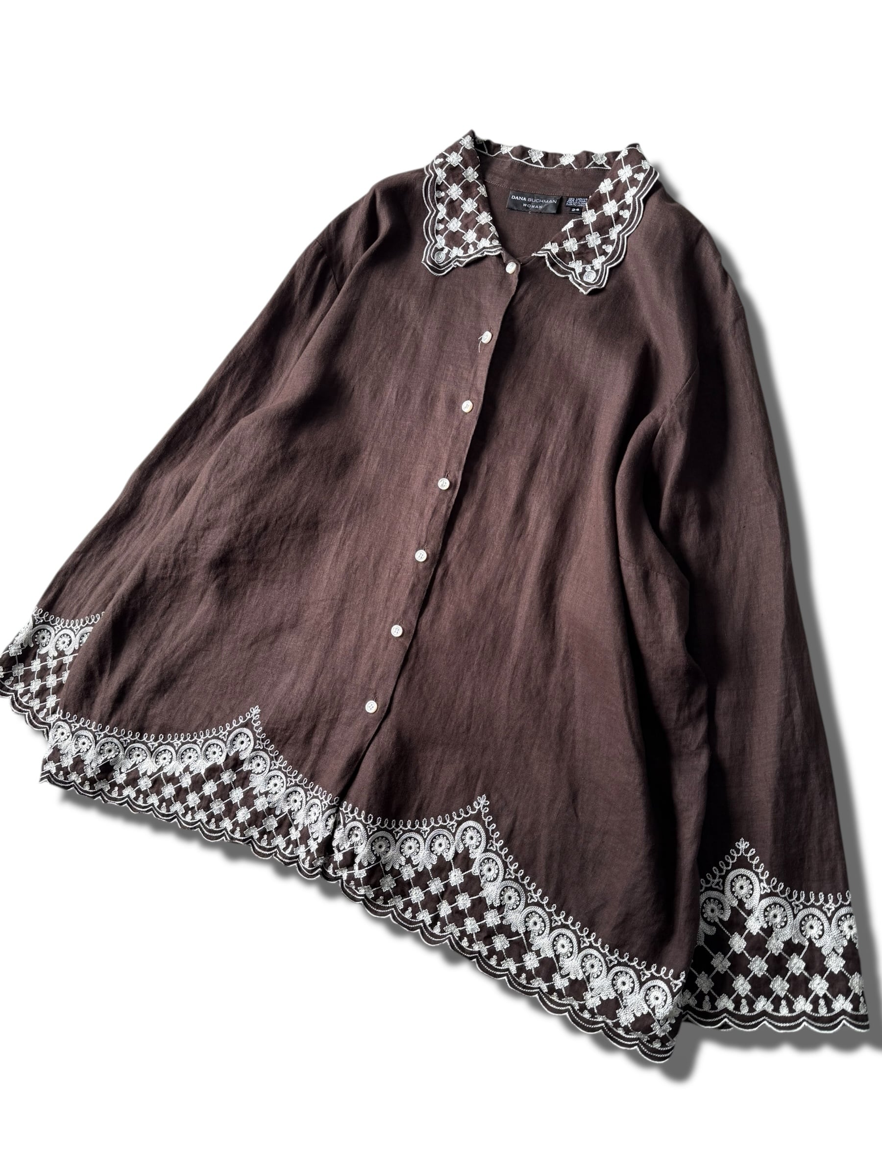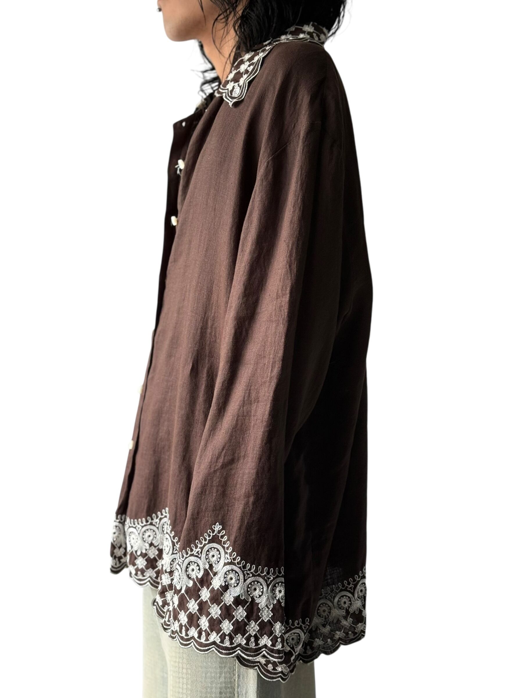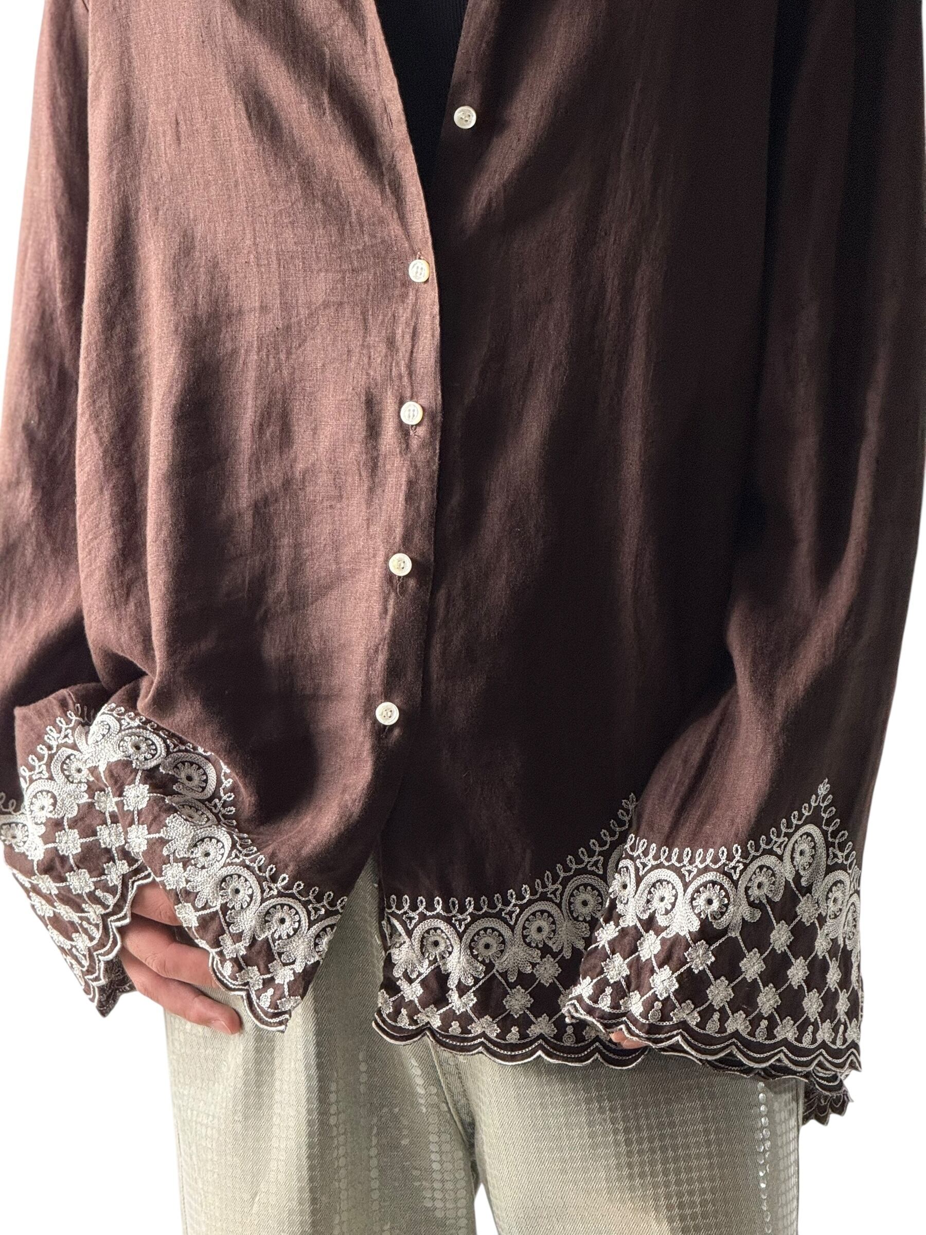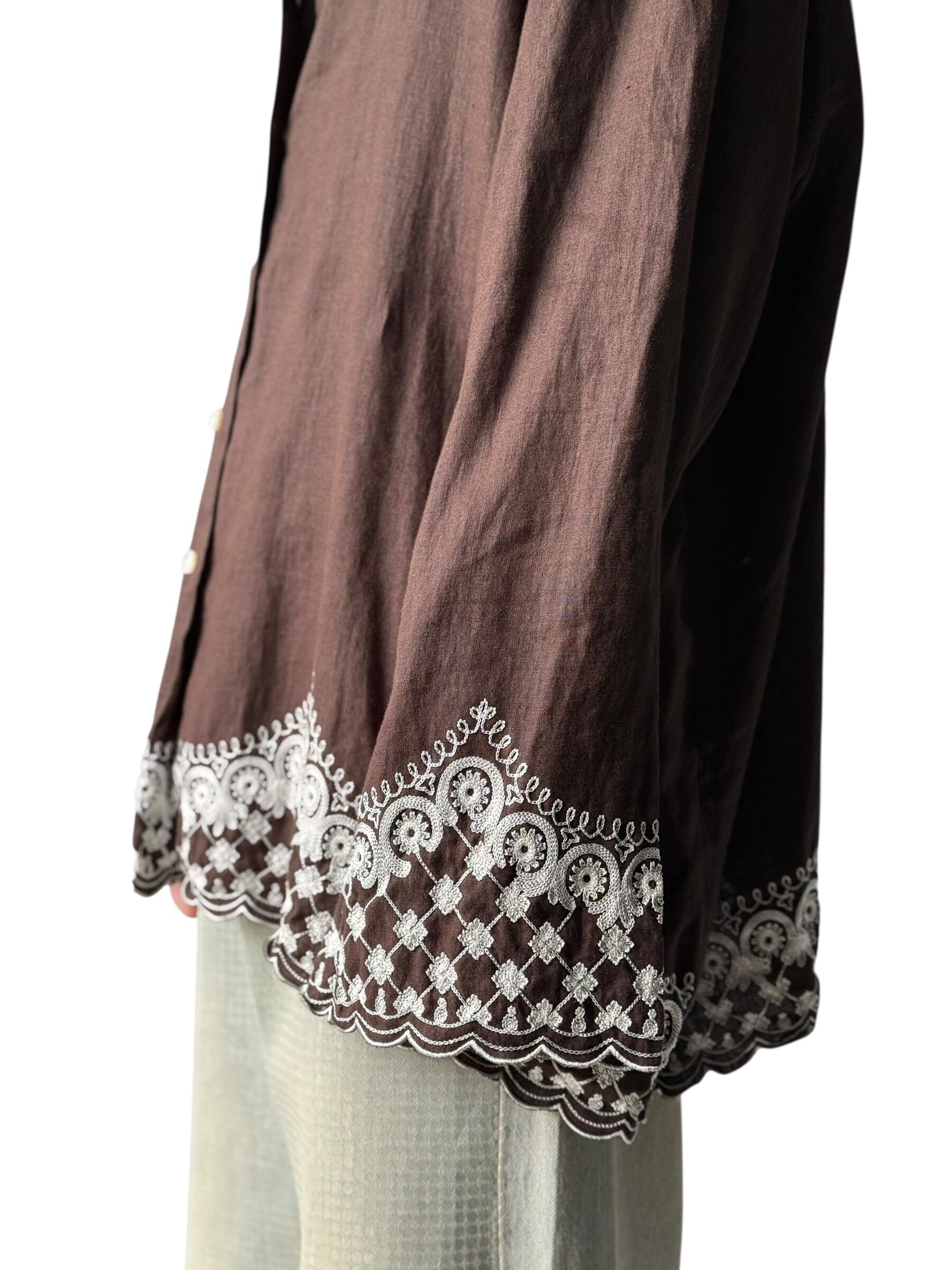 【DANA BUCHMAN】 Chain stitch embroidered linen wide detail shirt