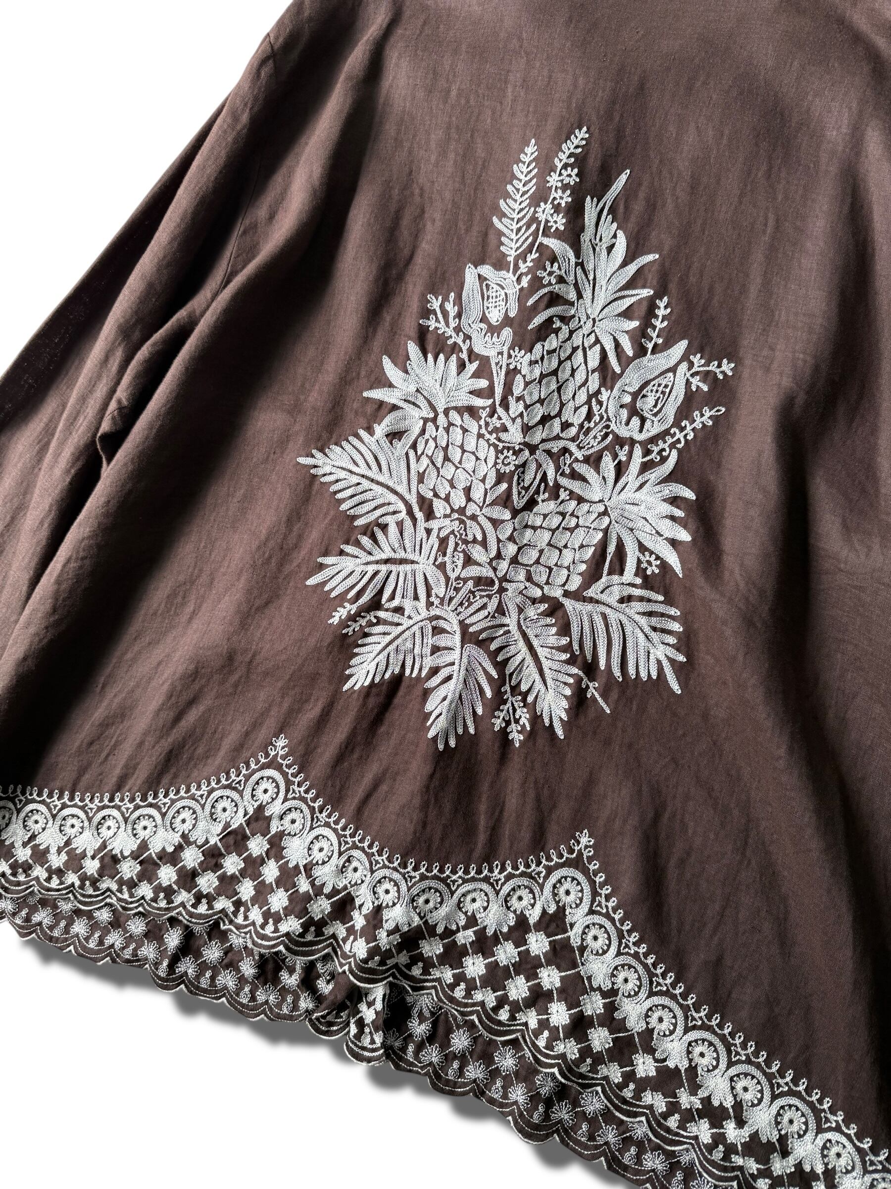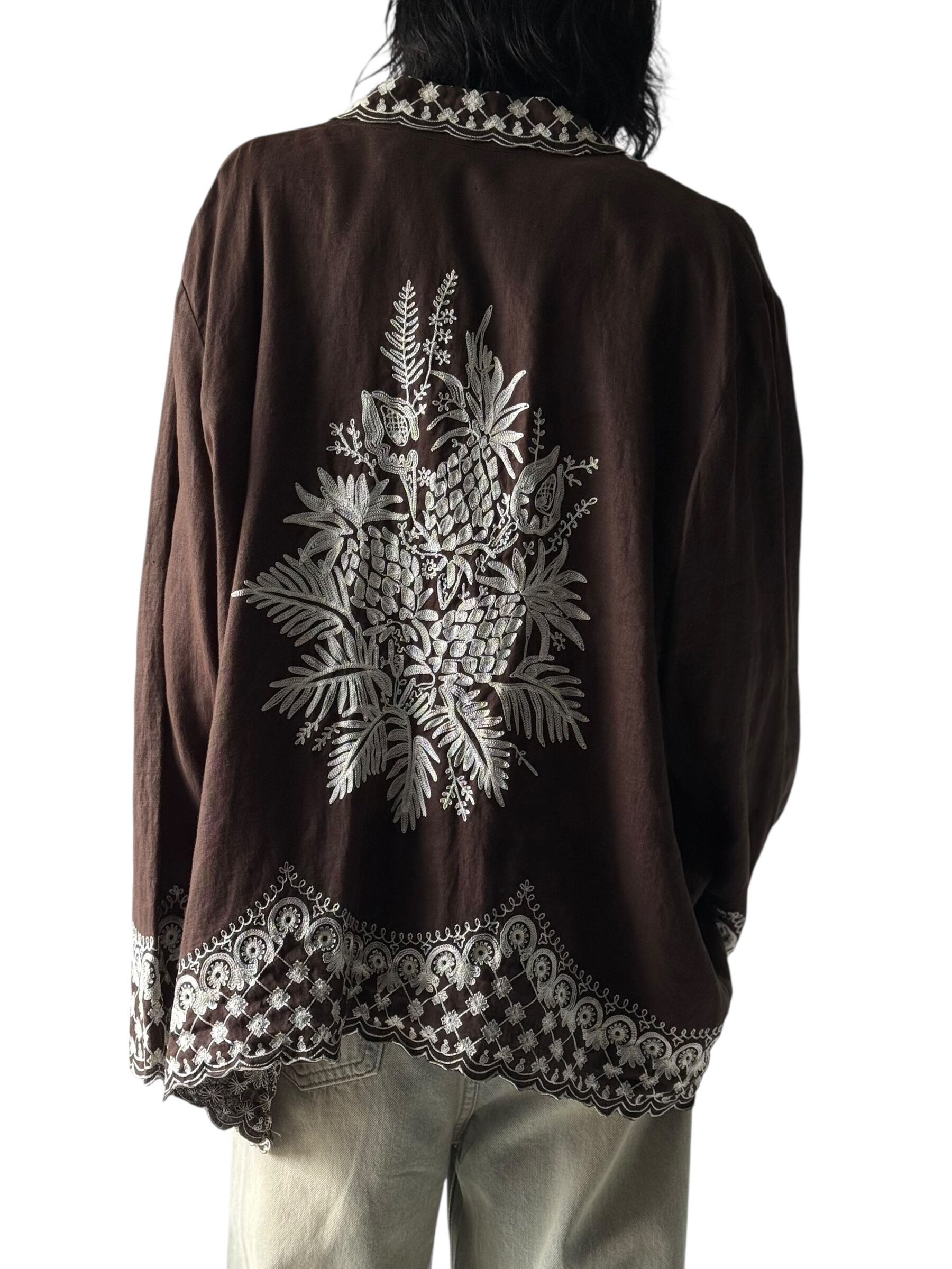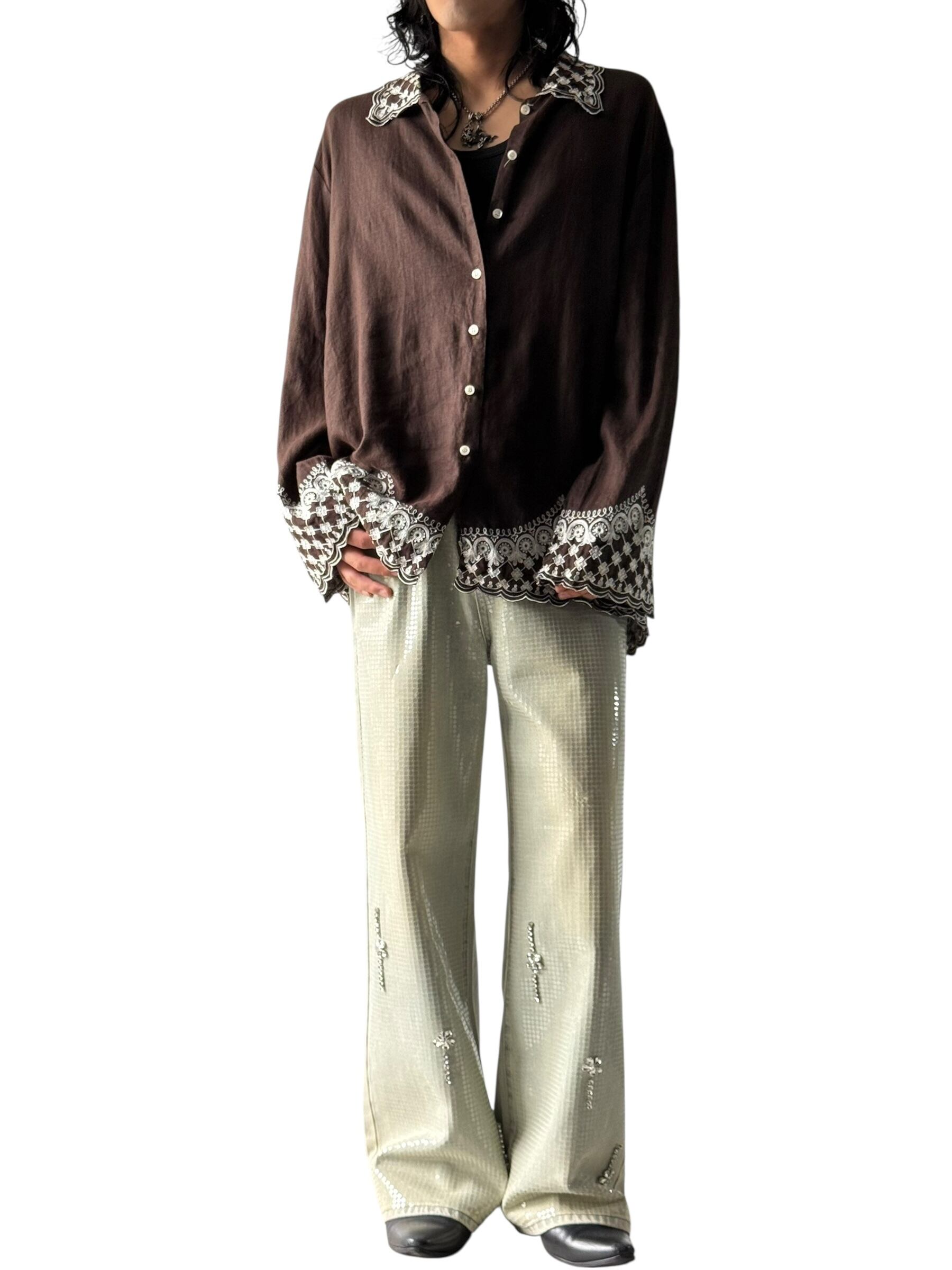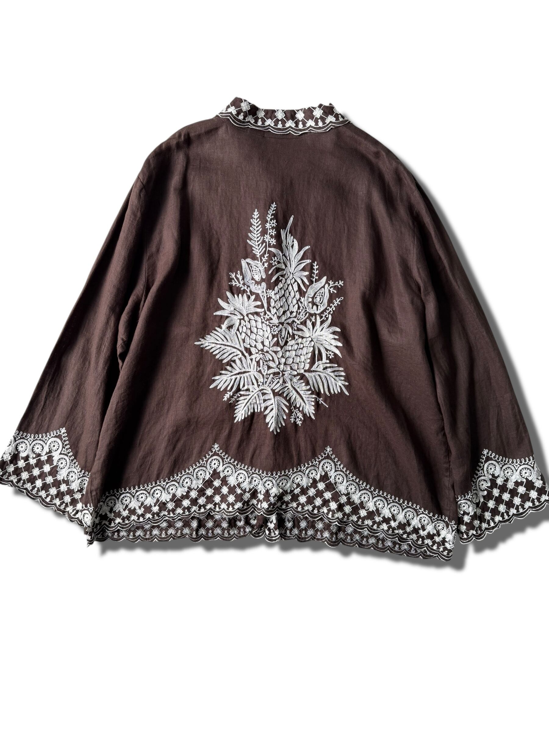 【DANA BUCHMAN】 Chain stitch embroidered linen wide detail shirt