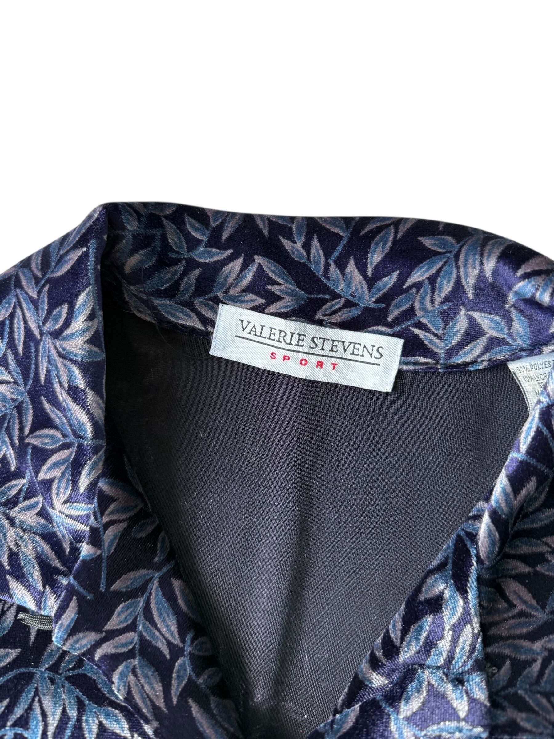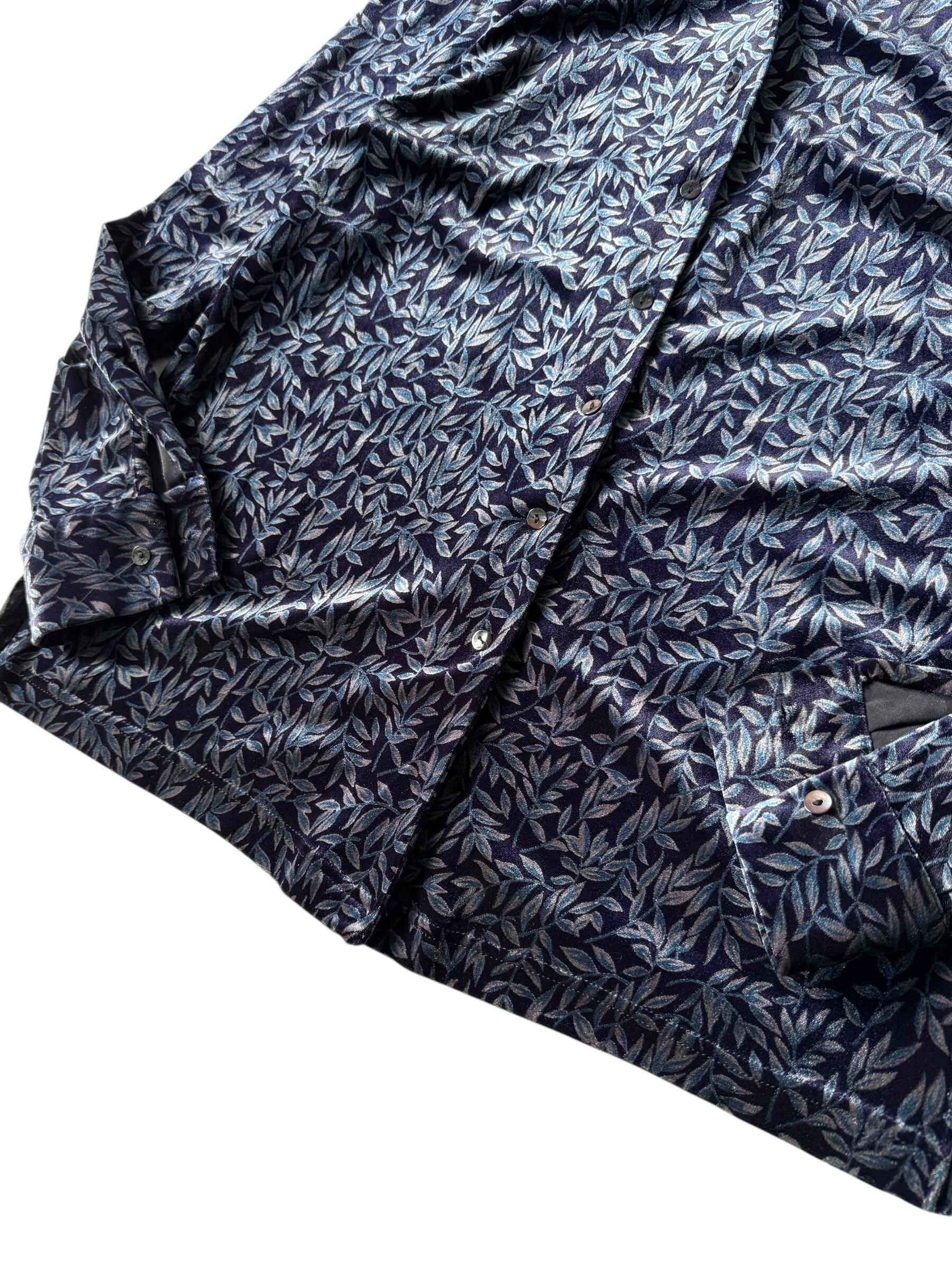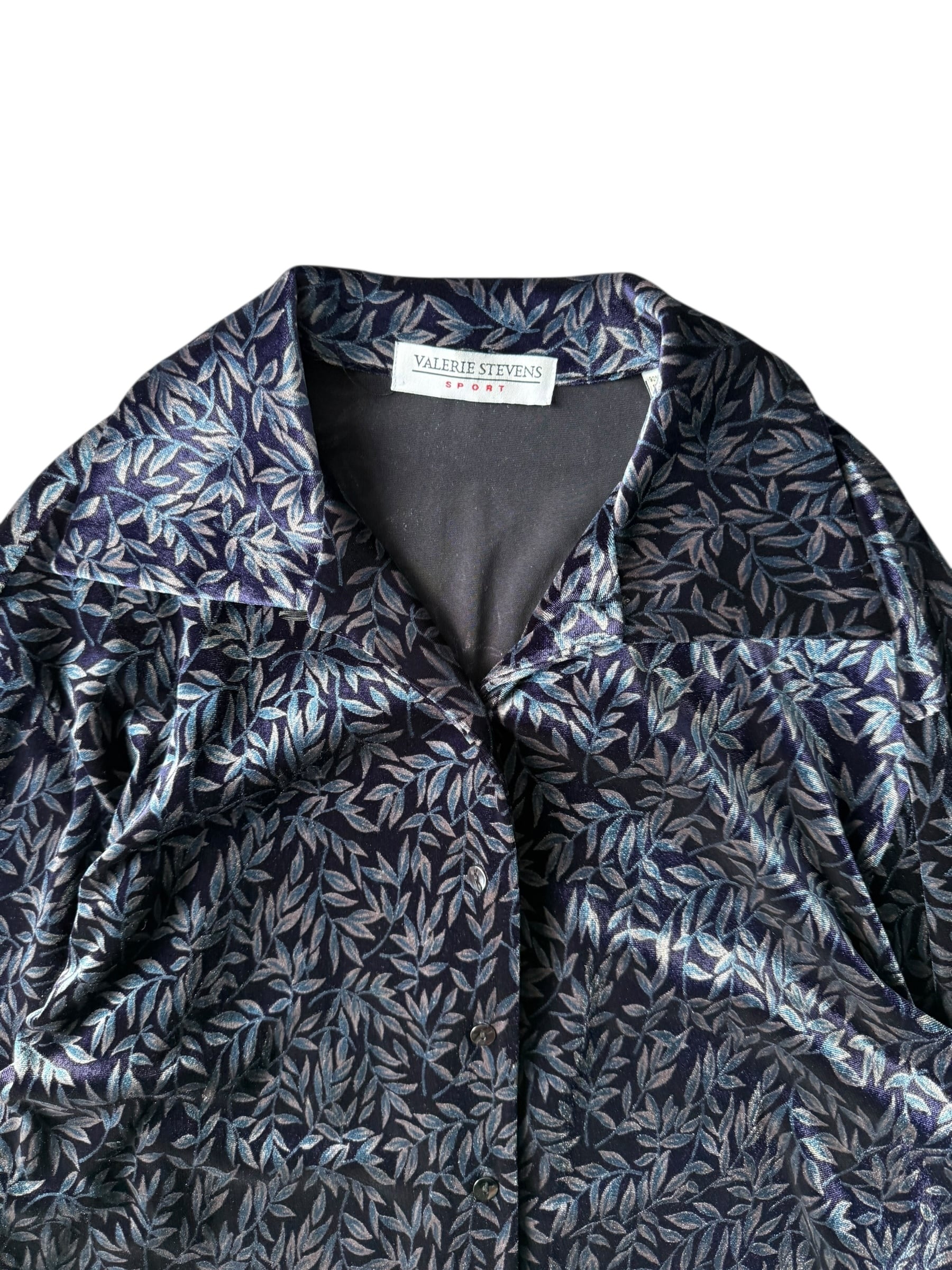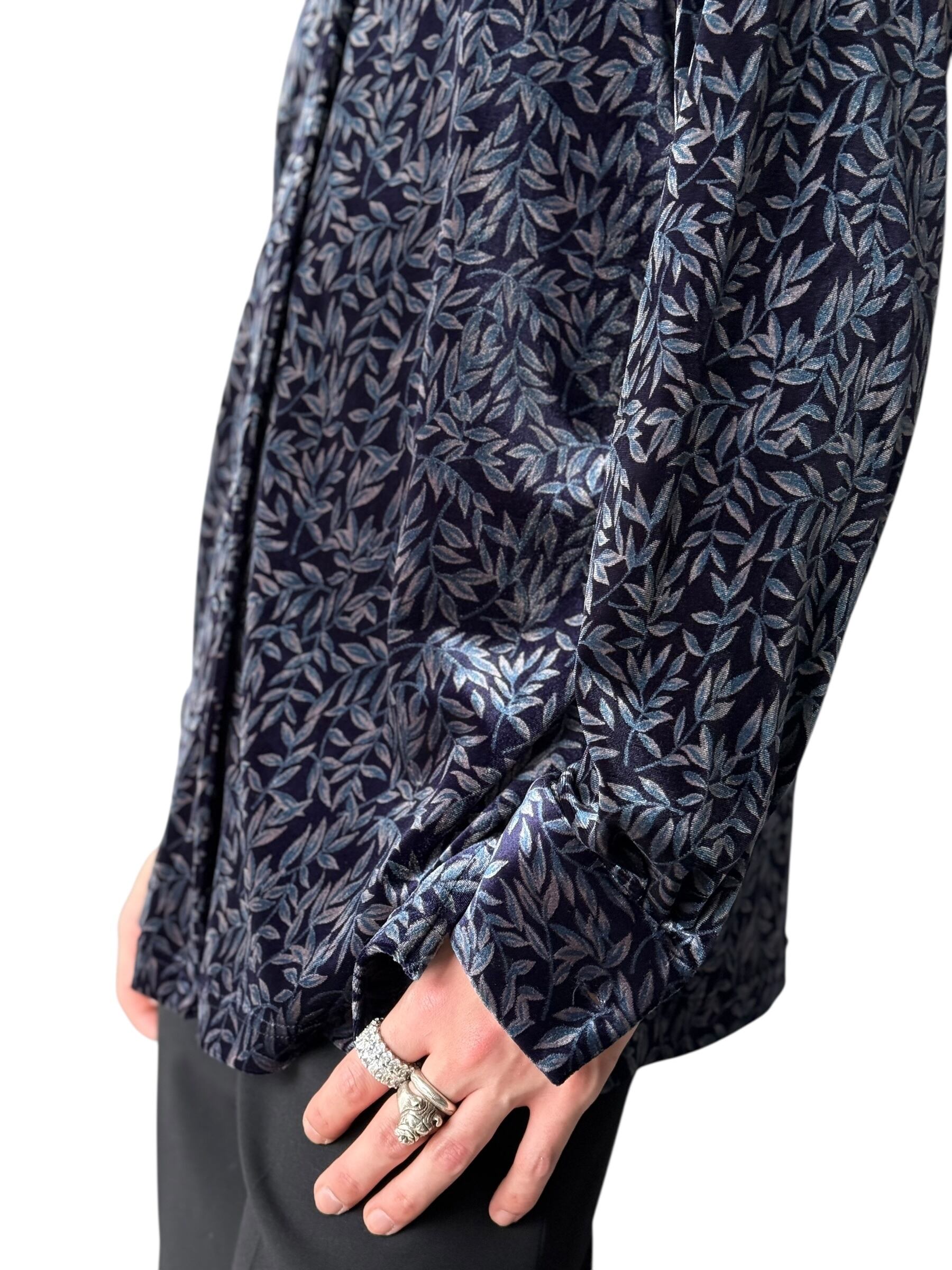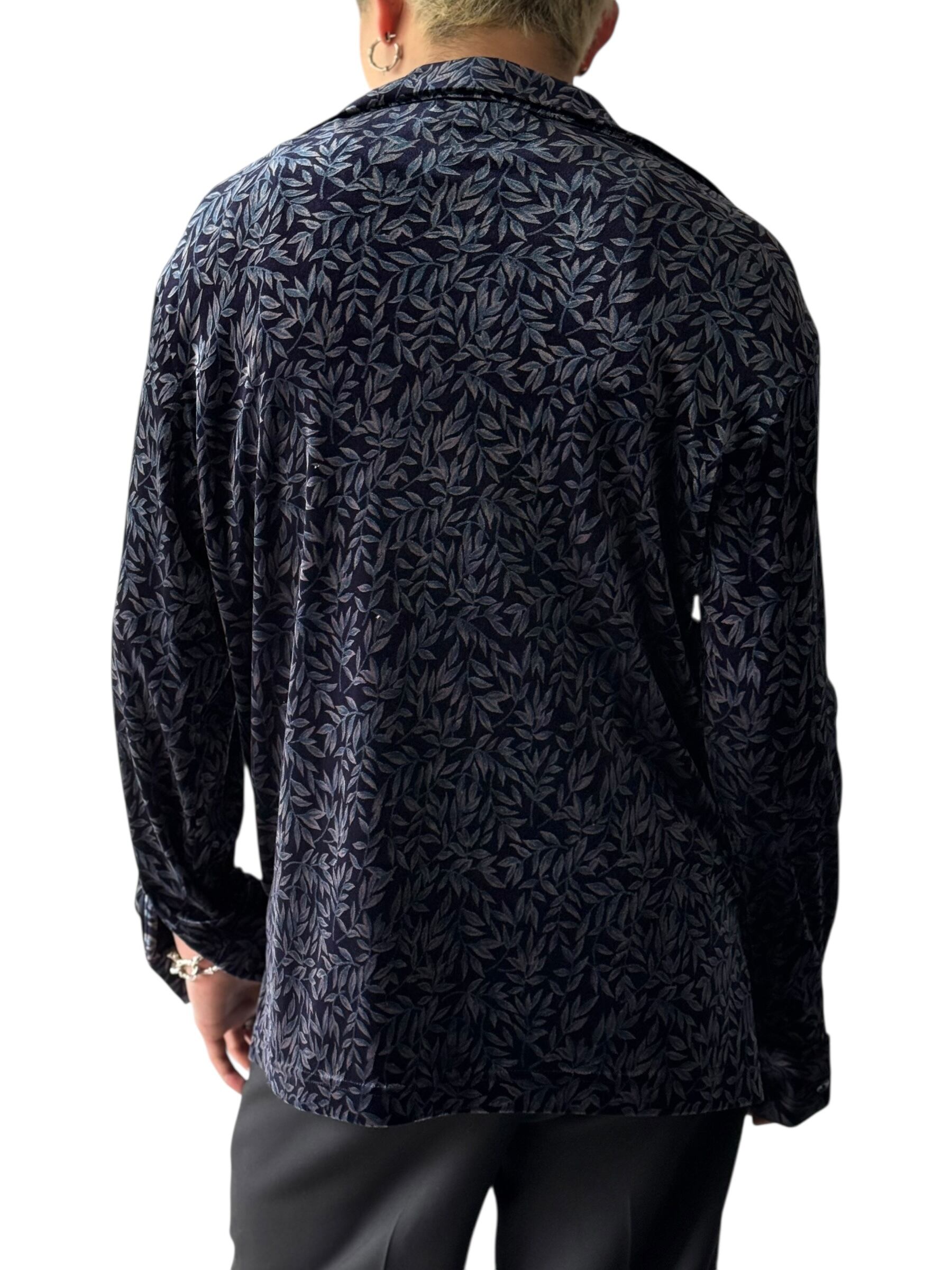 【VALERIE STEVENS】Leaf patterned Velvet Opencollar shirt