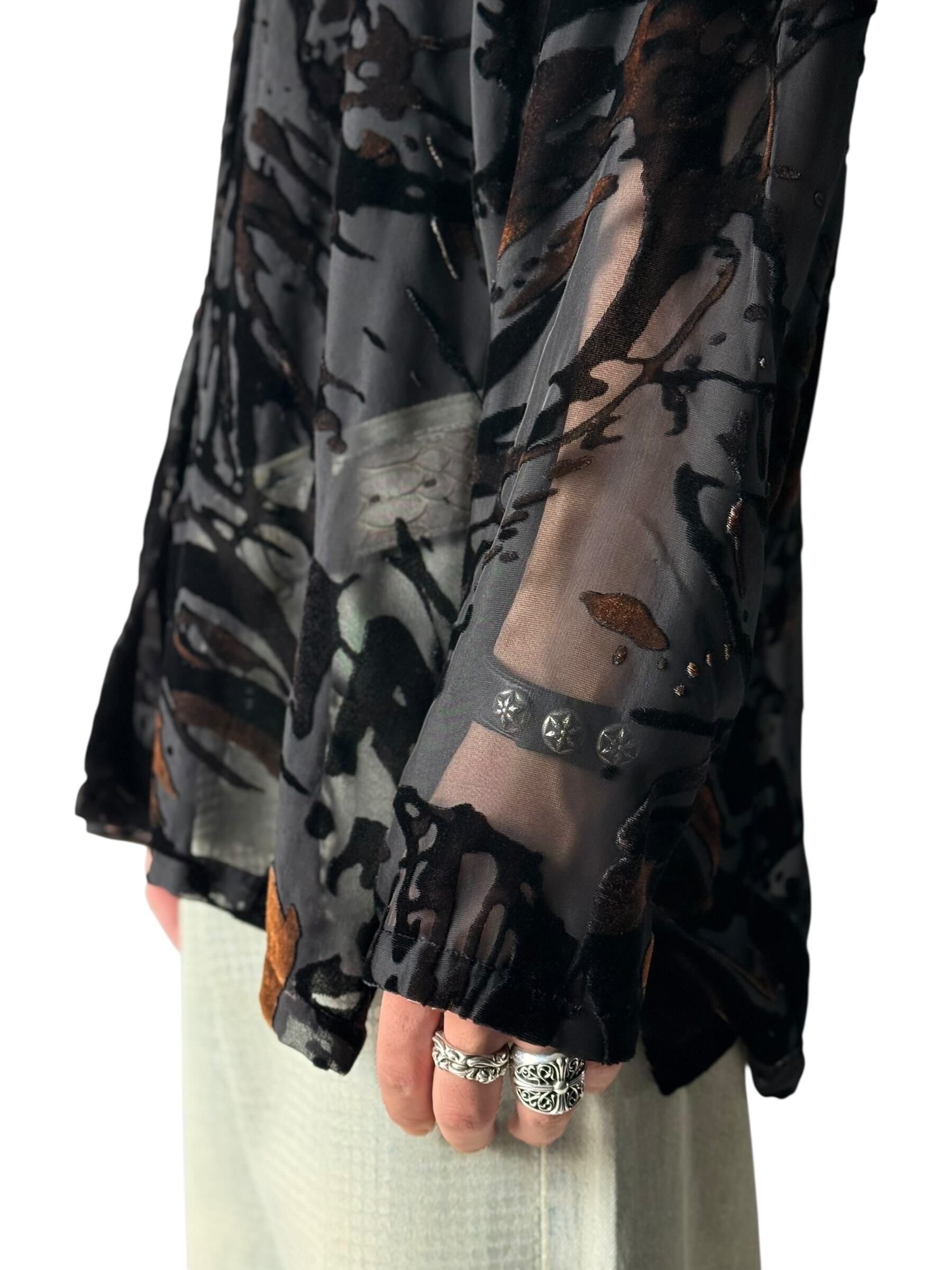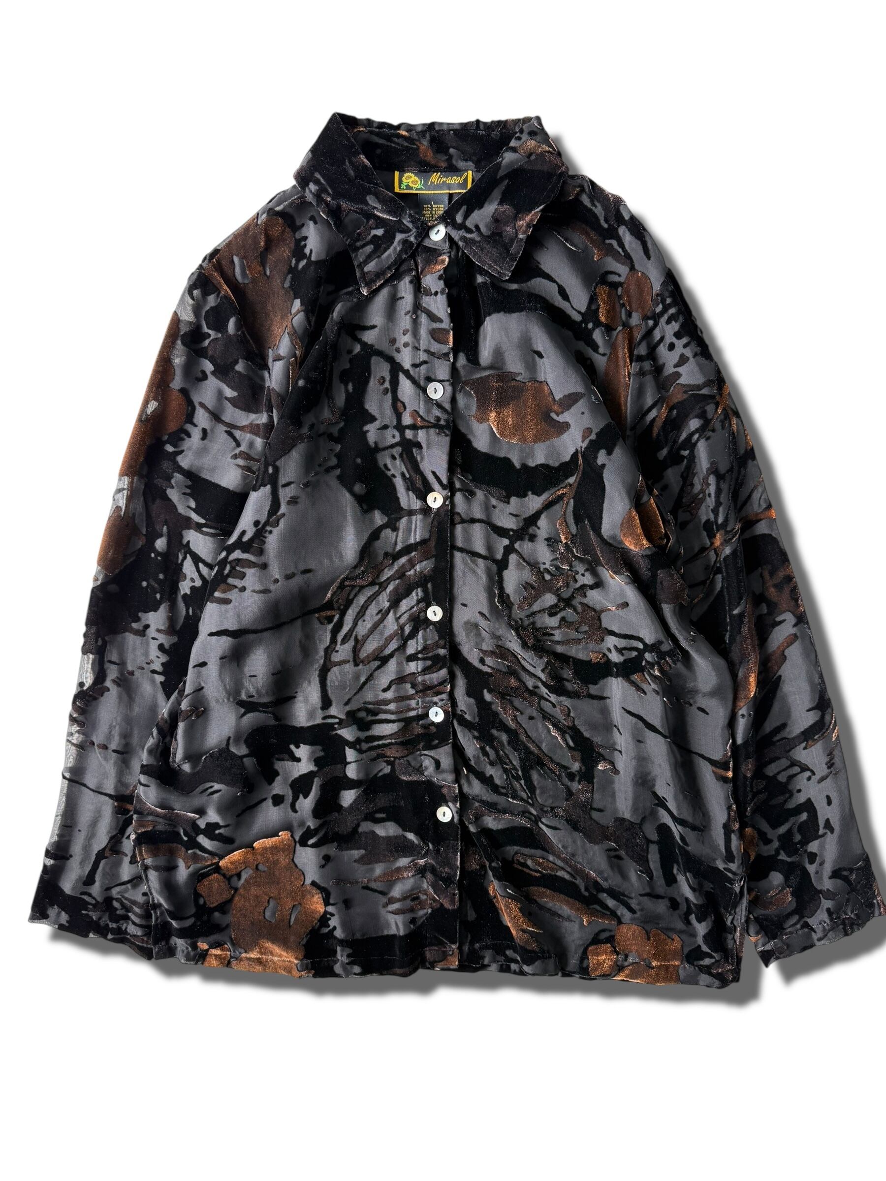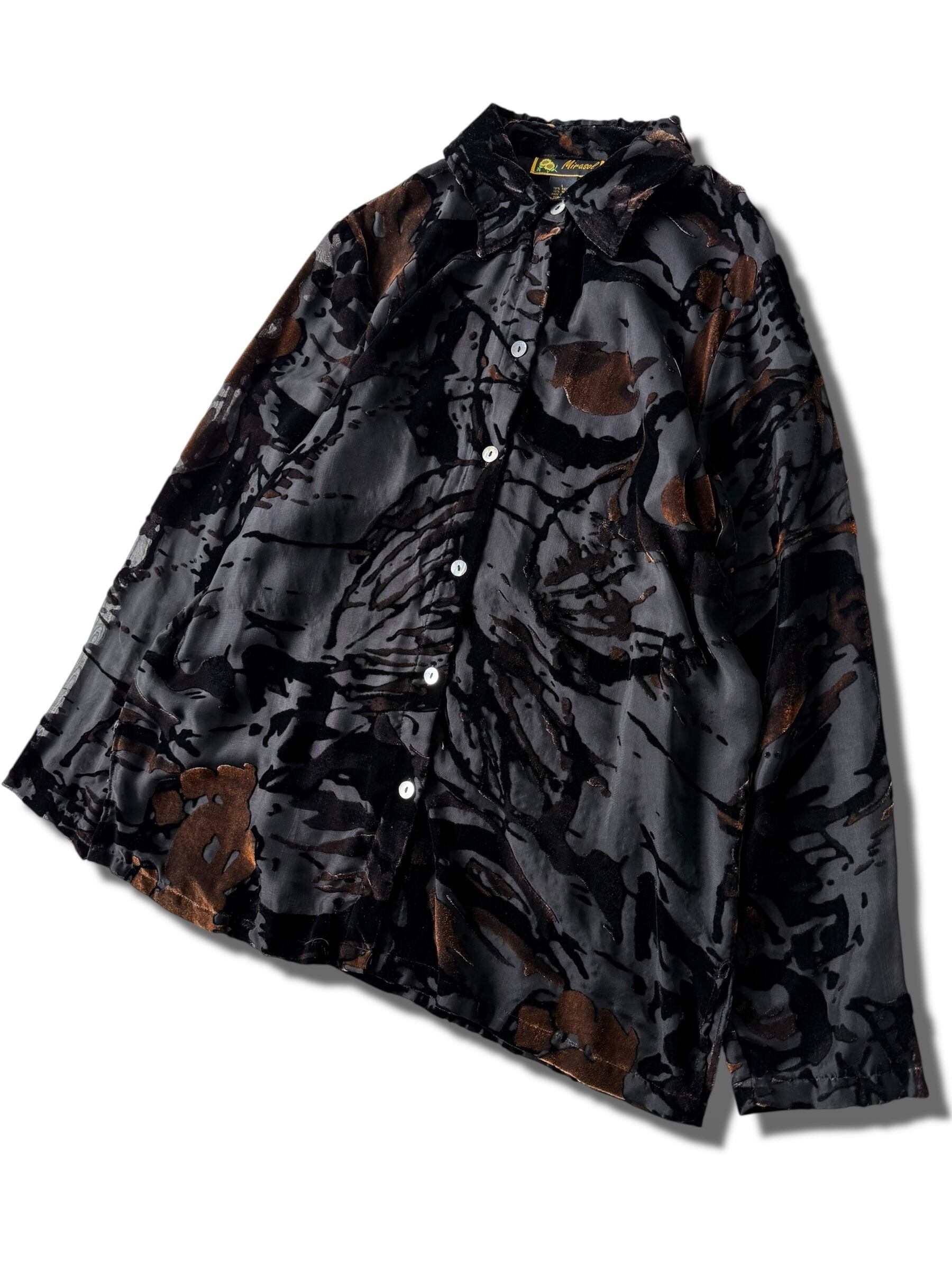 【Mirasol】Velvet design sheer patterned shirt