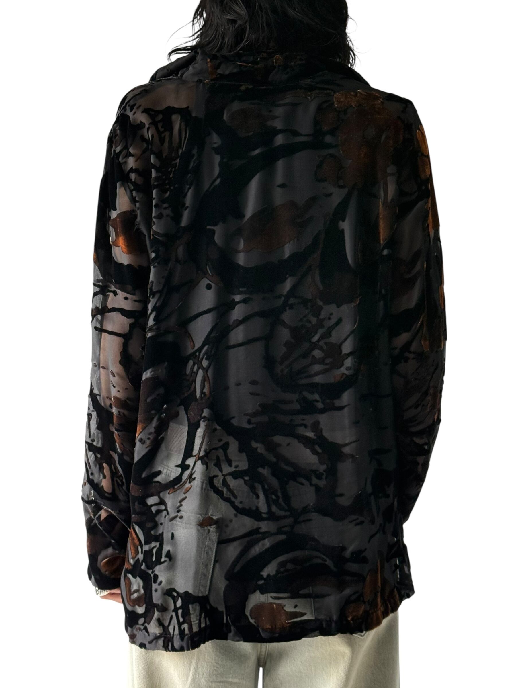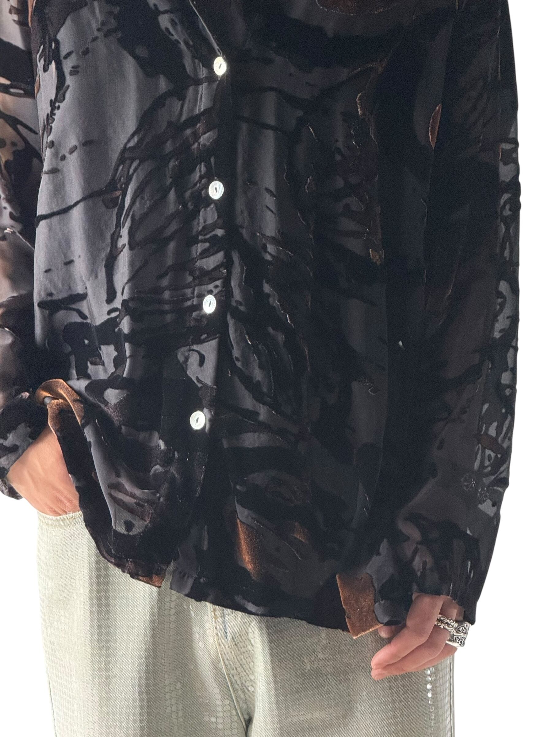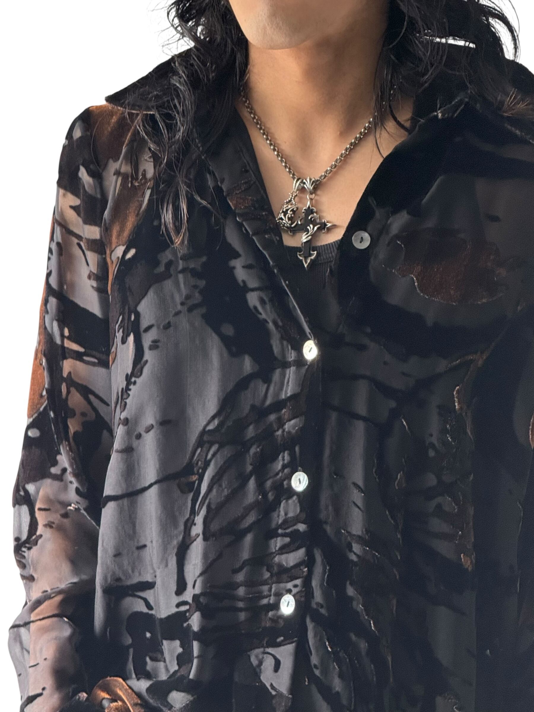 【Mirasol】Velvet design sheer patterned shirt