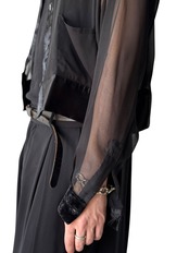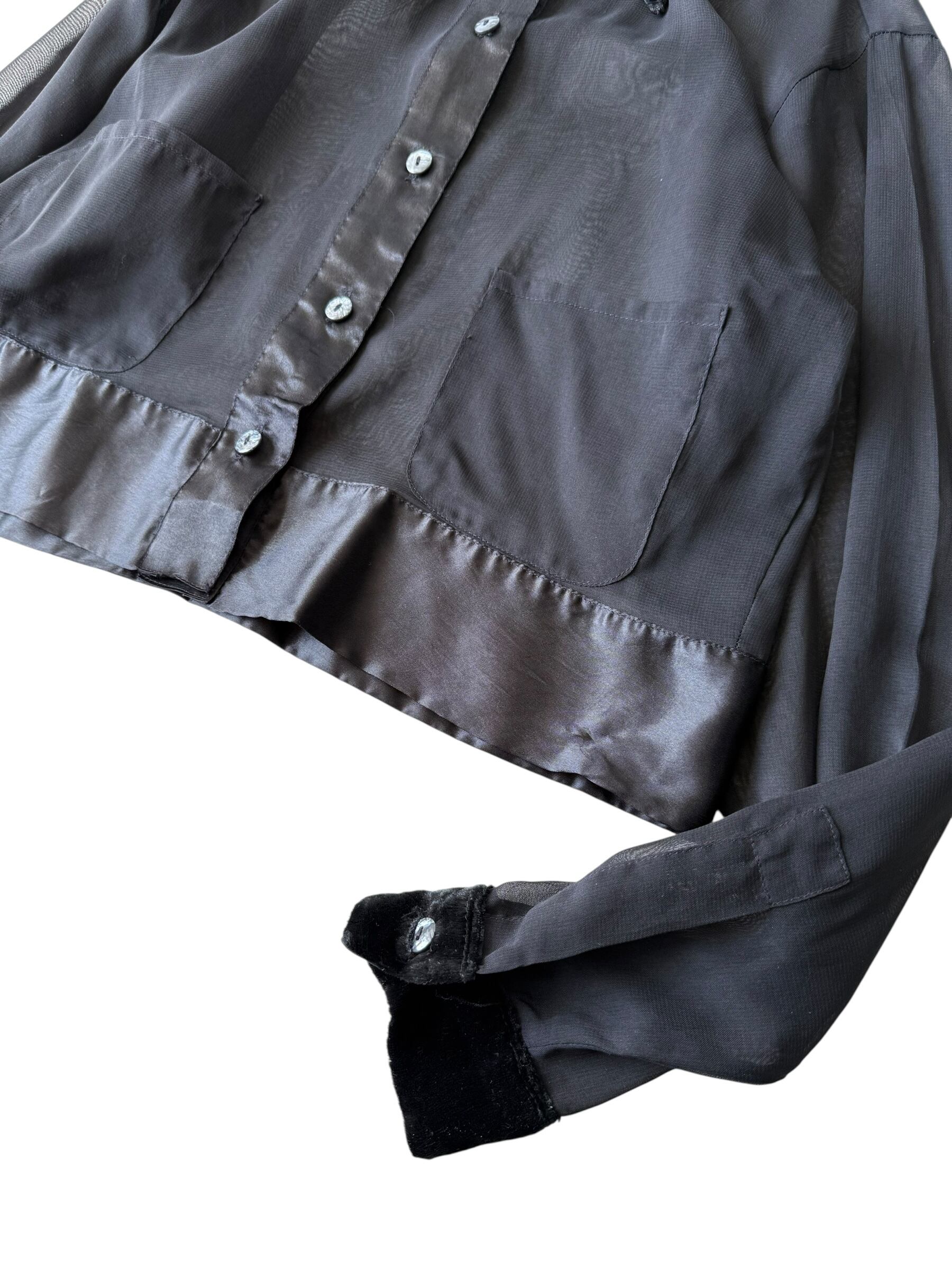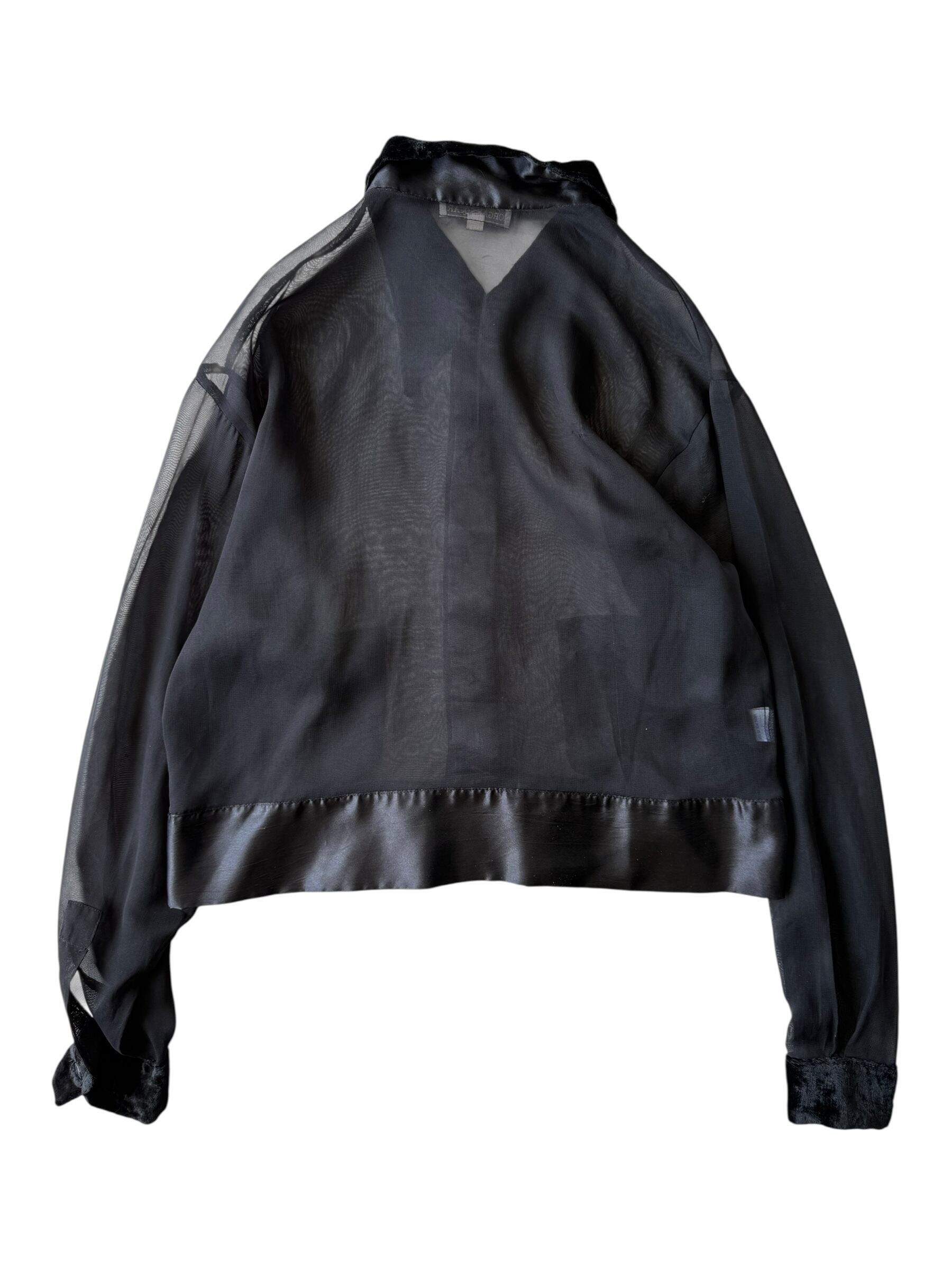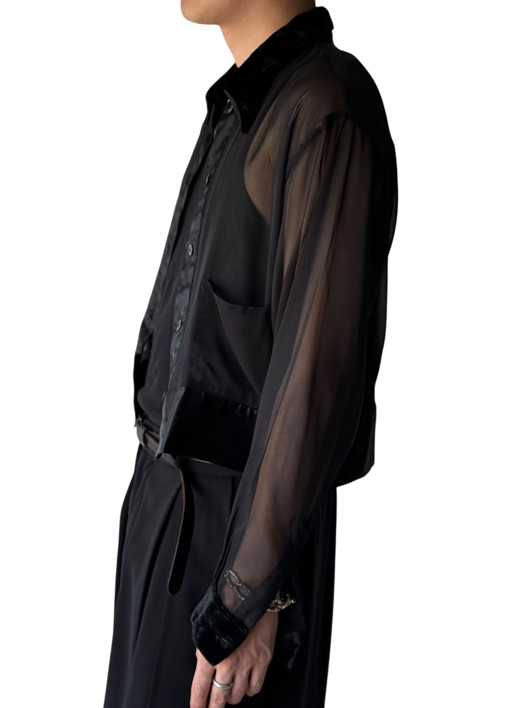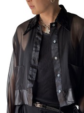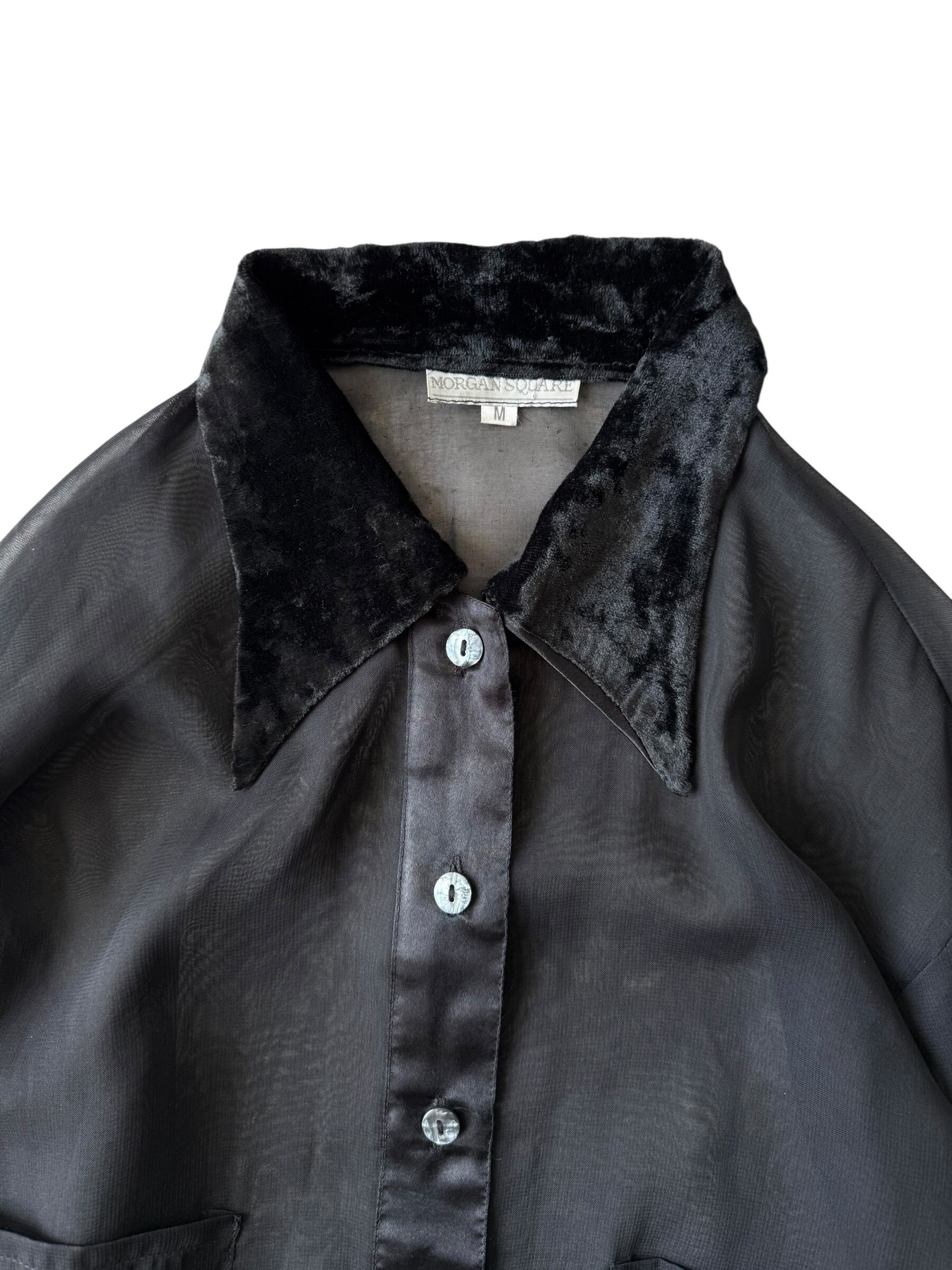 【MORGAN SQUARE】Velour-trimmed see-through short shirt