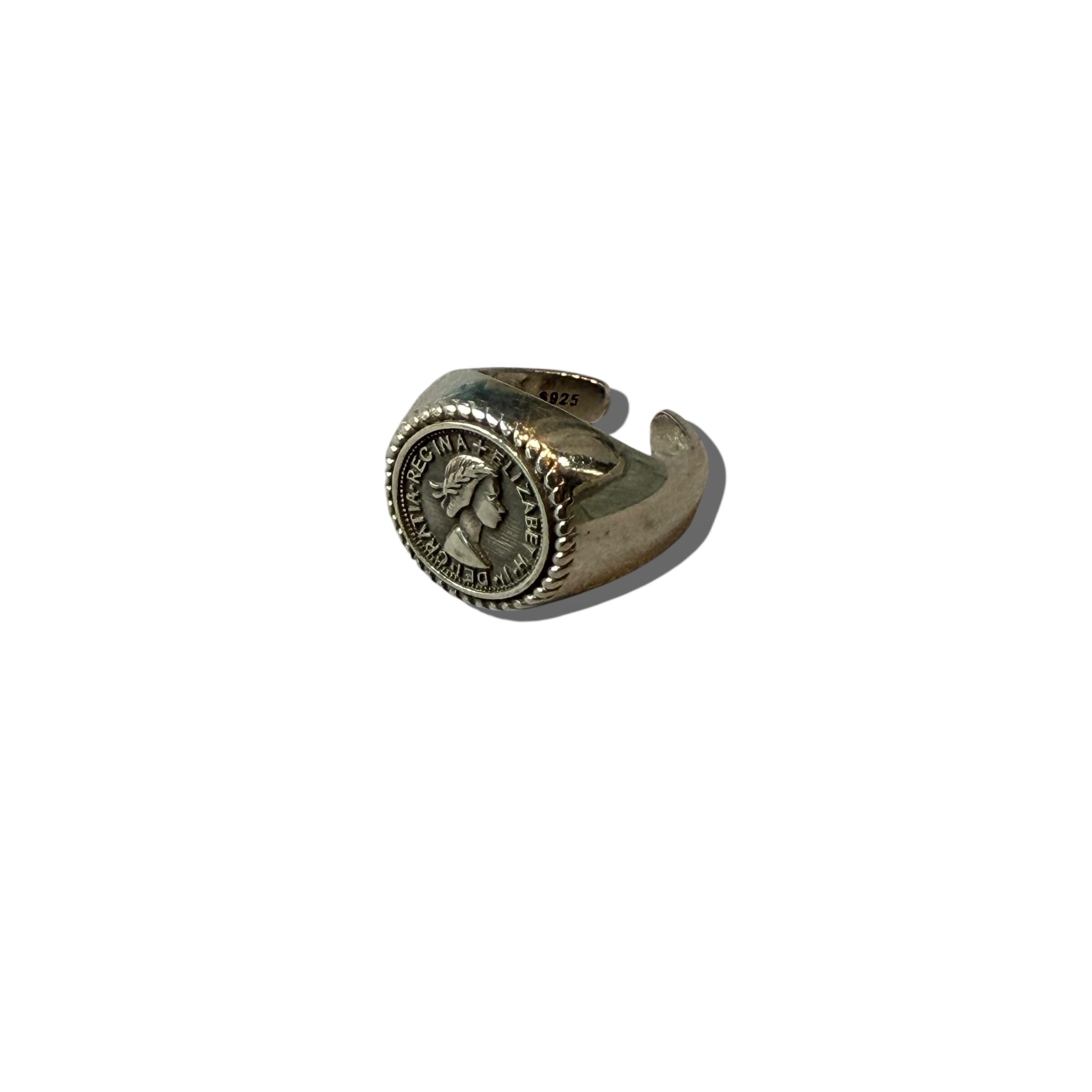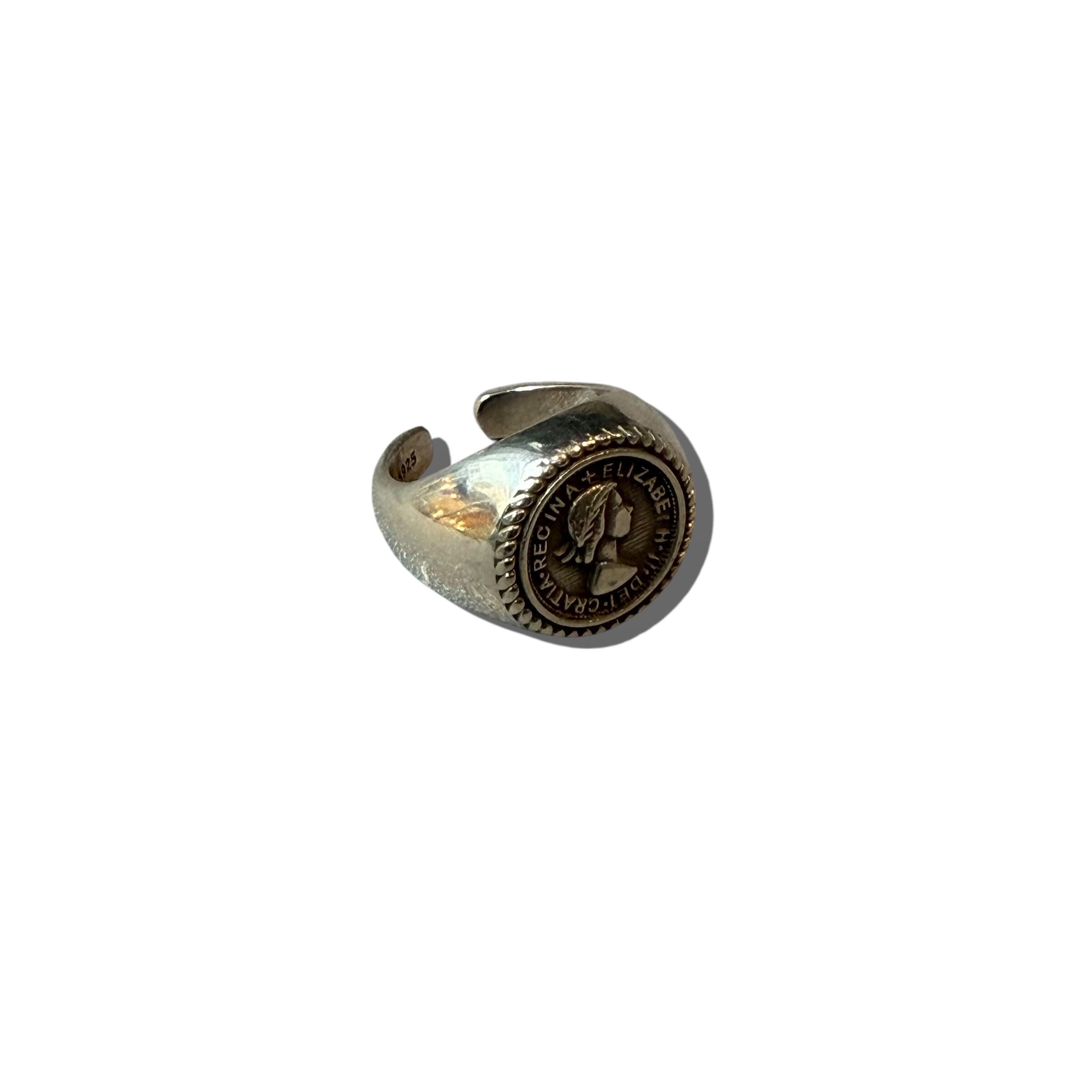 イギリスのエリザベス2世女王の肖像が入ったコインがモチーフになったおしゃれリング✨