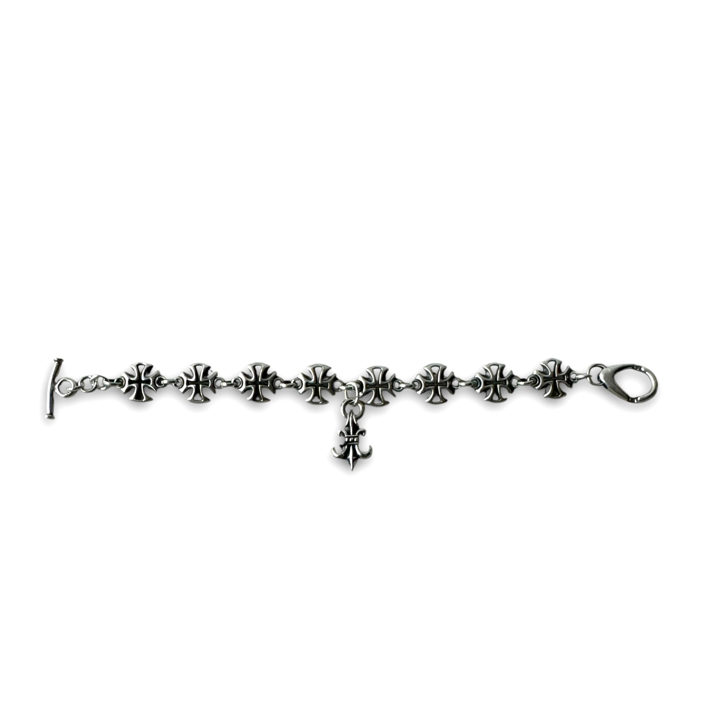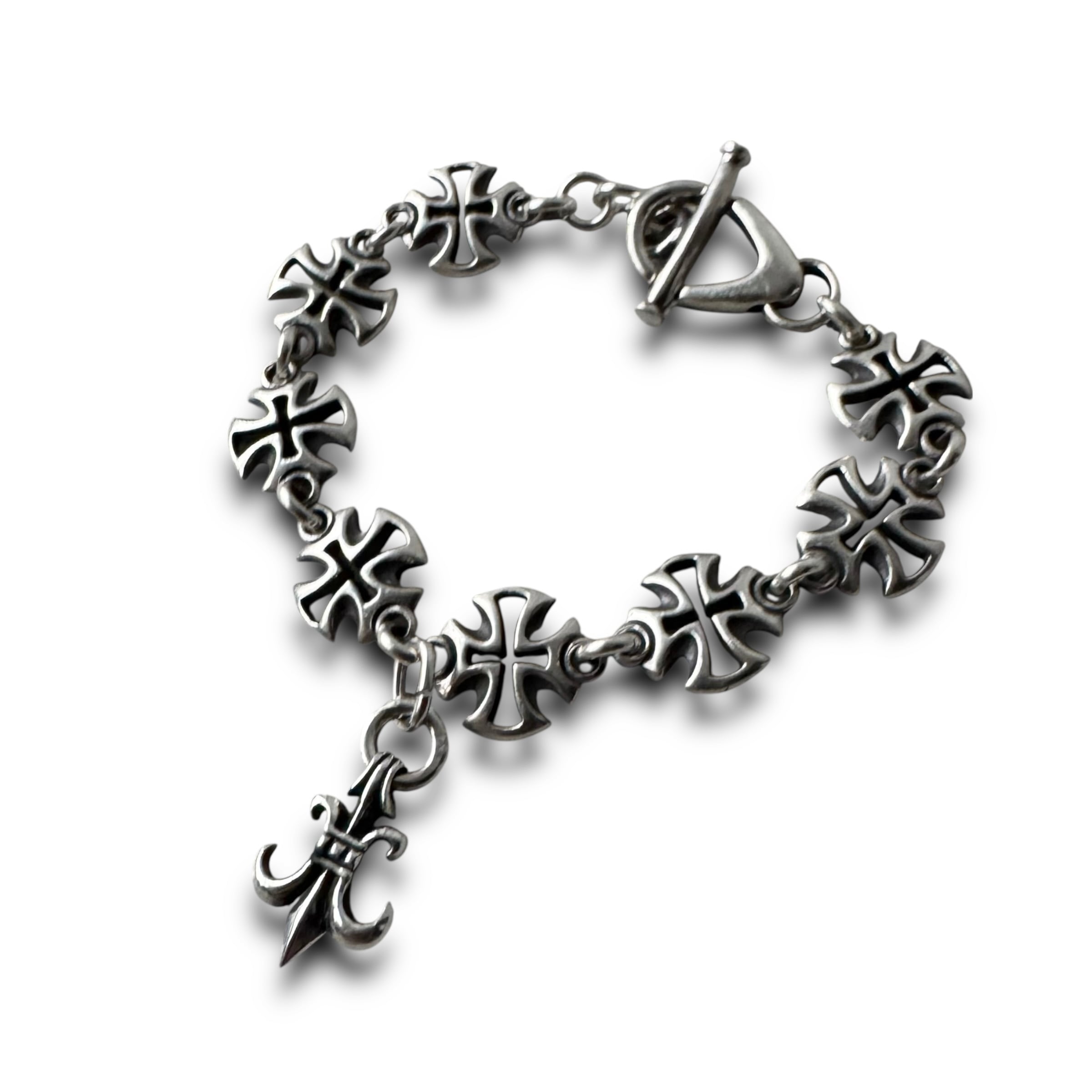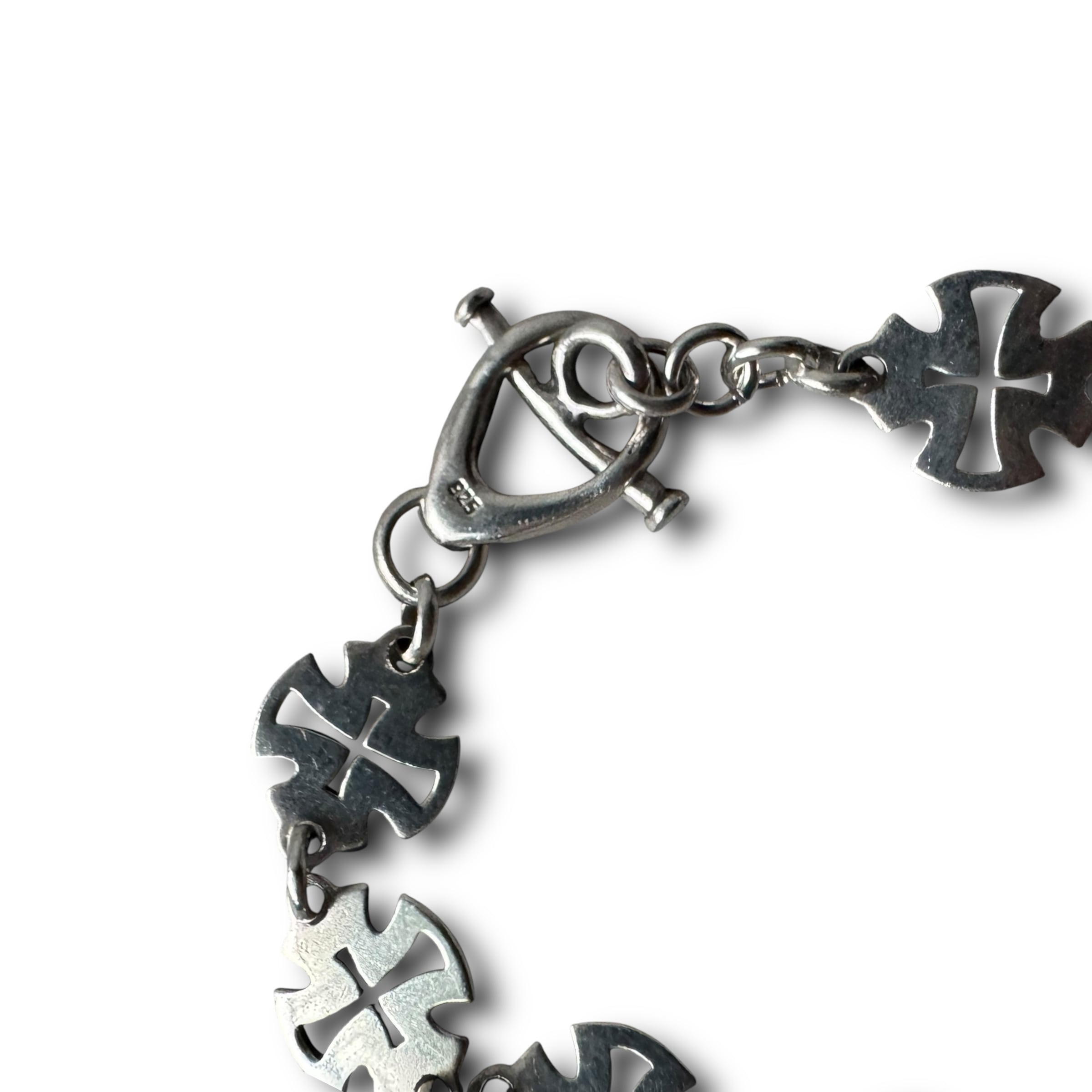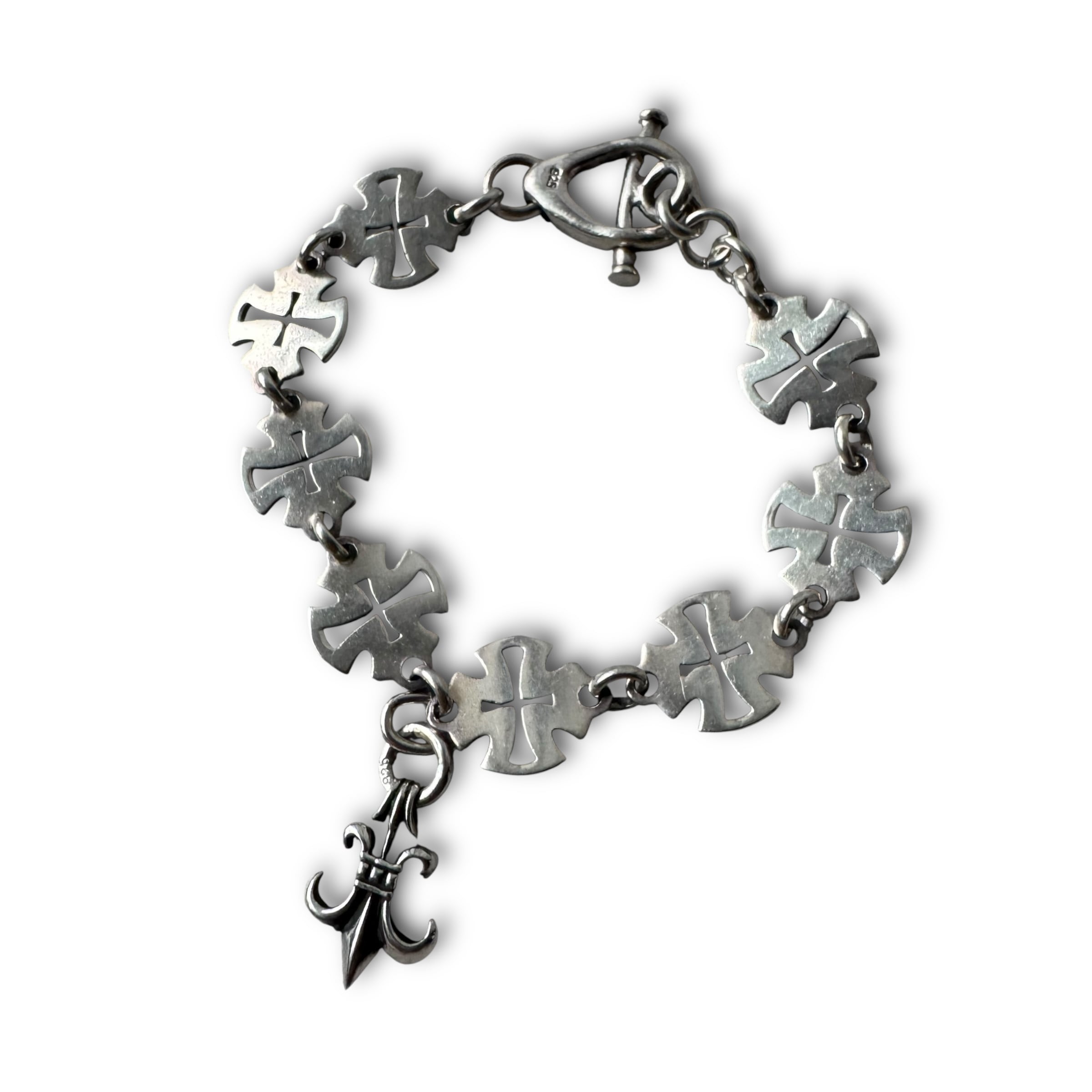 ♾vintage silver jewelry♾ iron cross motif lily charm design bracelet sv925 ・