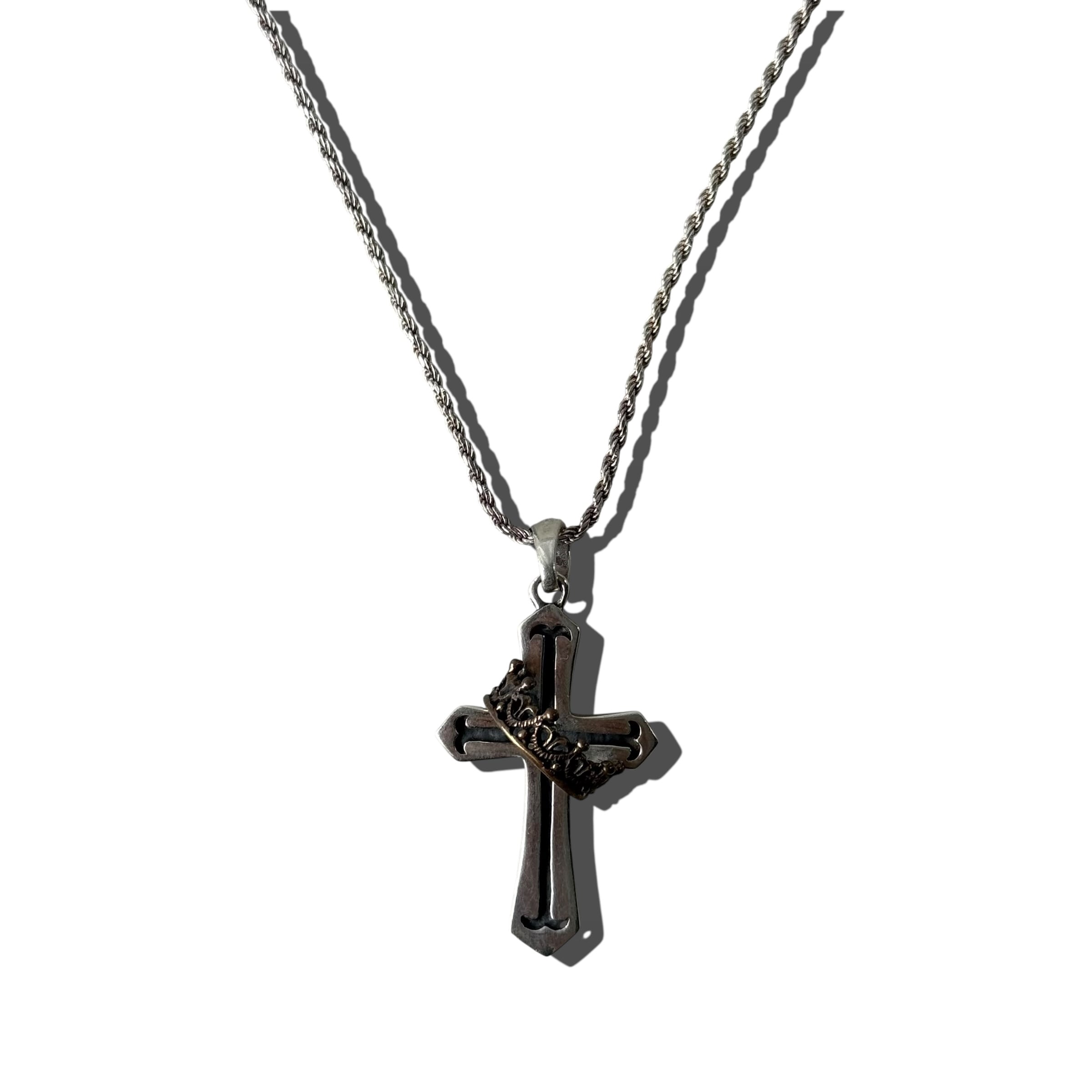 クロスとクラウンのコンビネーションが抜群に映えるダブルトップデザインが豪華なペンダントトップネックレス✨️