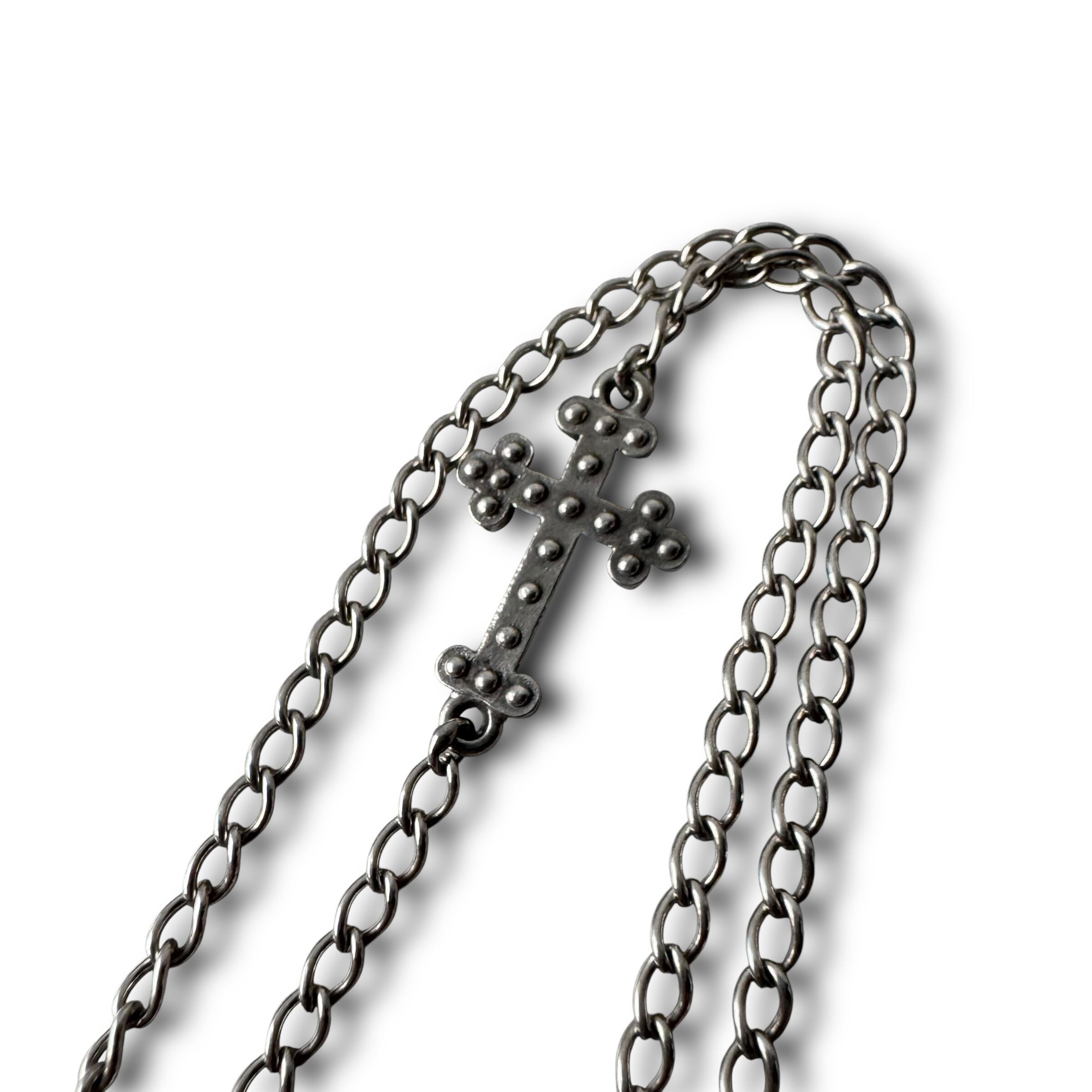 クロス全体にスカルが立体的にデザインされた超クールなシルバーネックレスの入荷ョ‼️