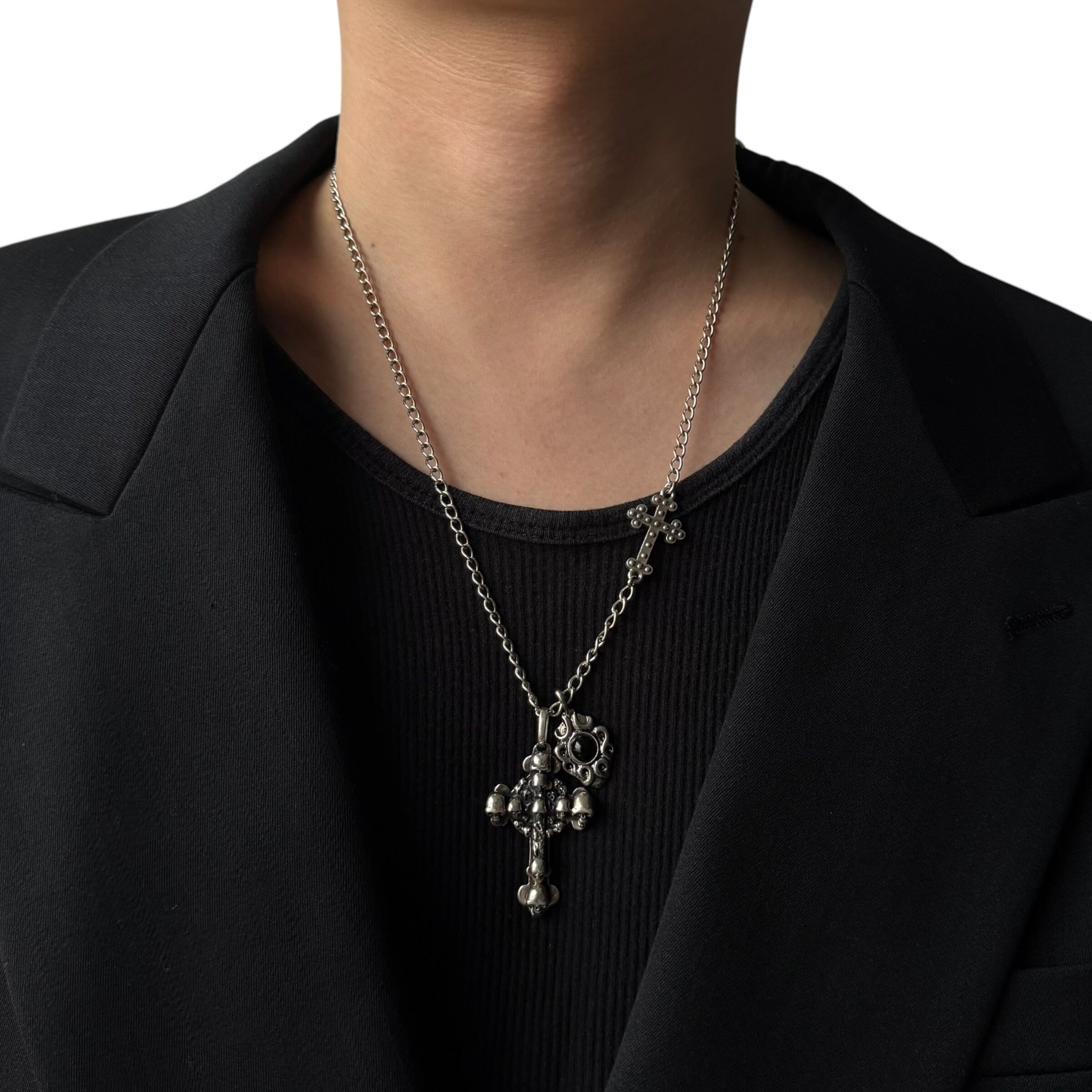 skull motif cross w top design necklace
